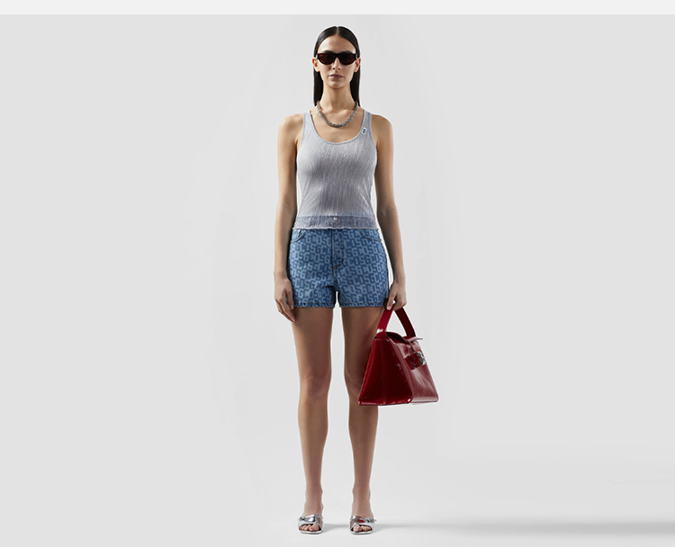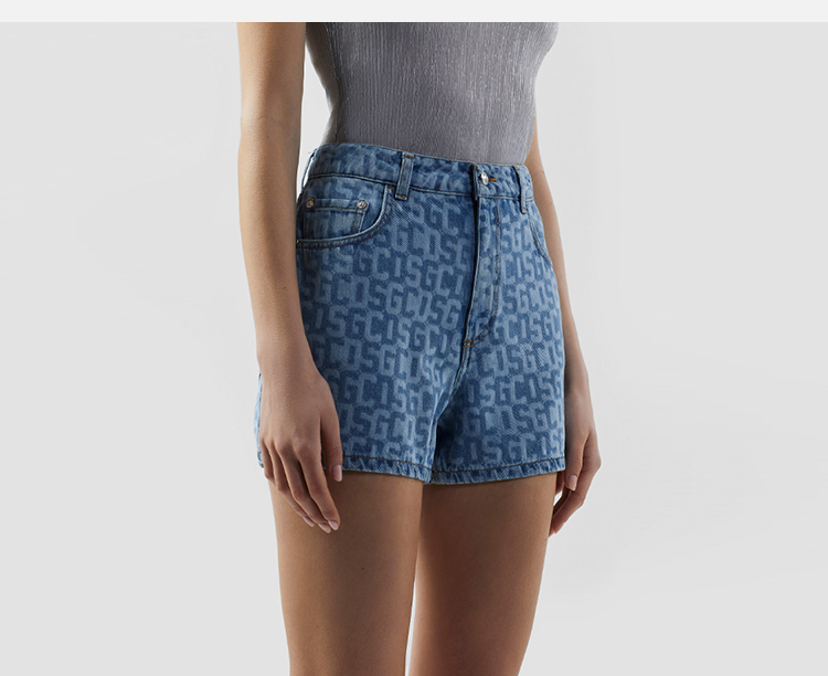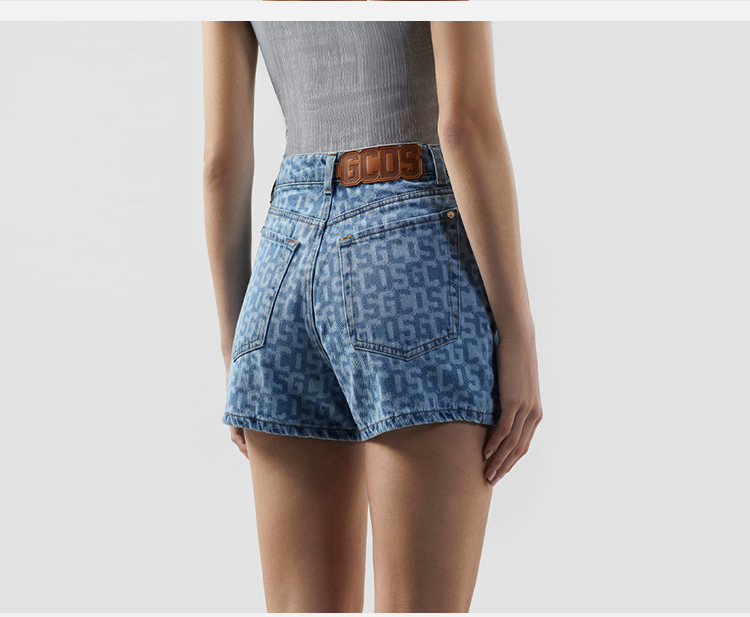 GCDS 女士字母徽标贴片牛仔短裤 浅蓝色 A2OW3100DA2 75