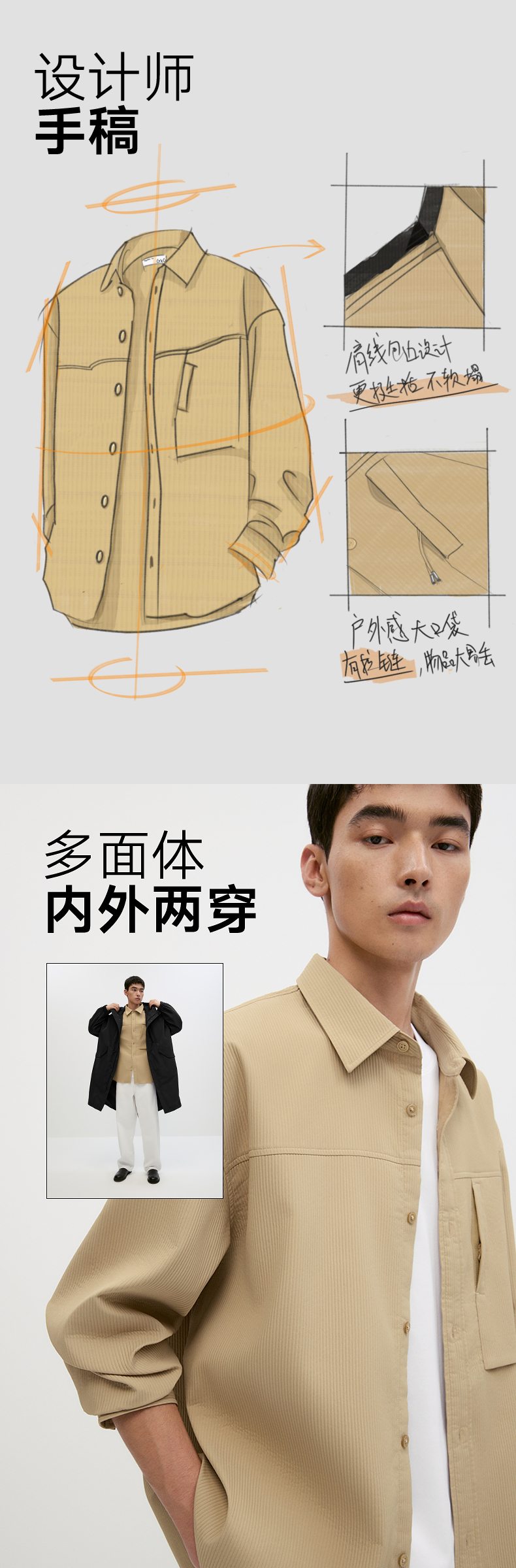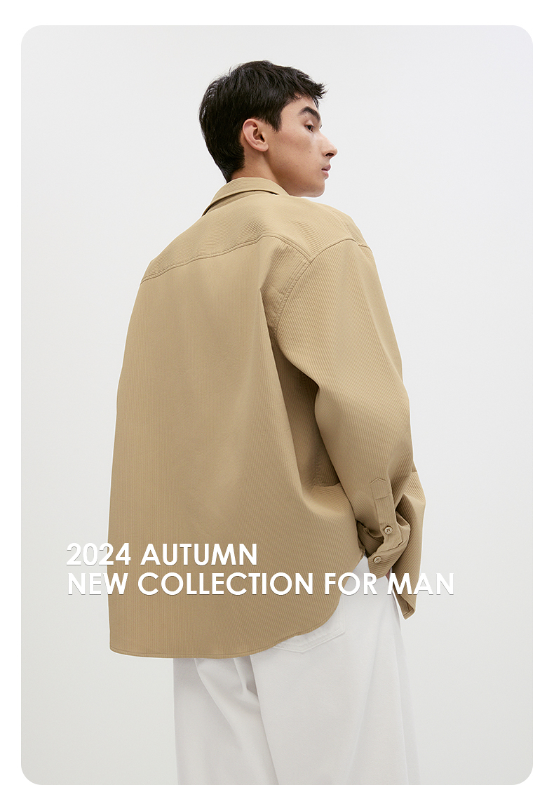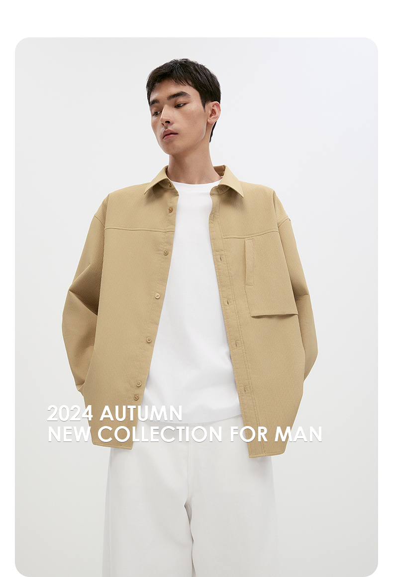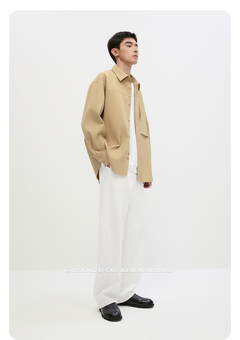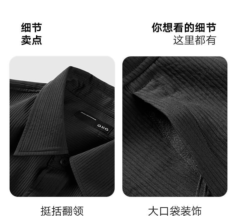 GXG男装 口袋设计坑条面料宽松长袖衬衫外套男士上衣 24秋季热卖
