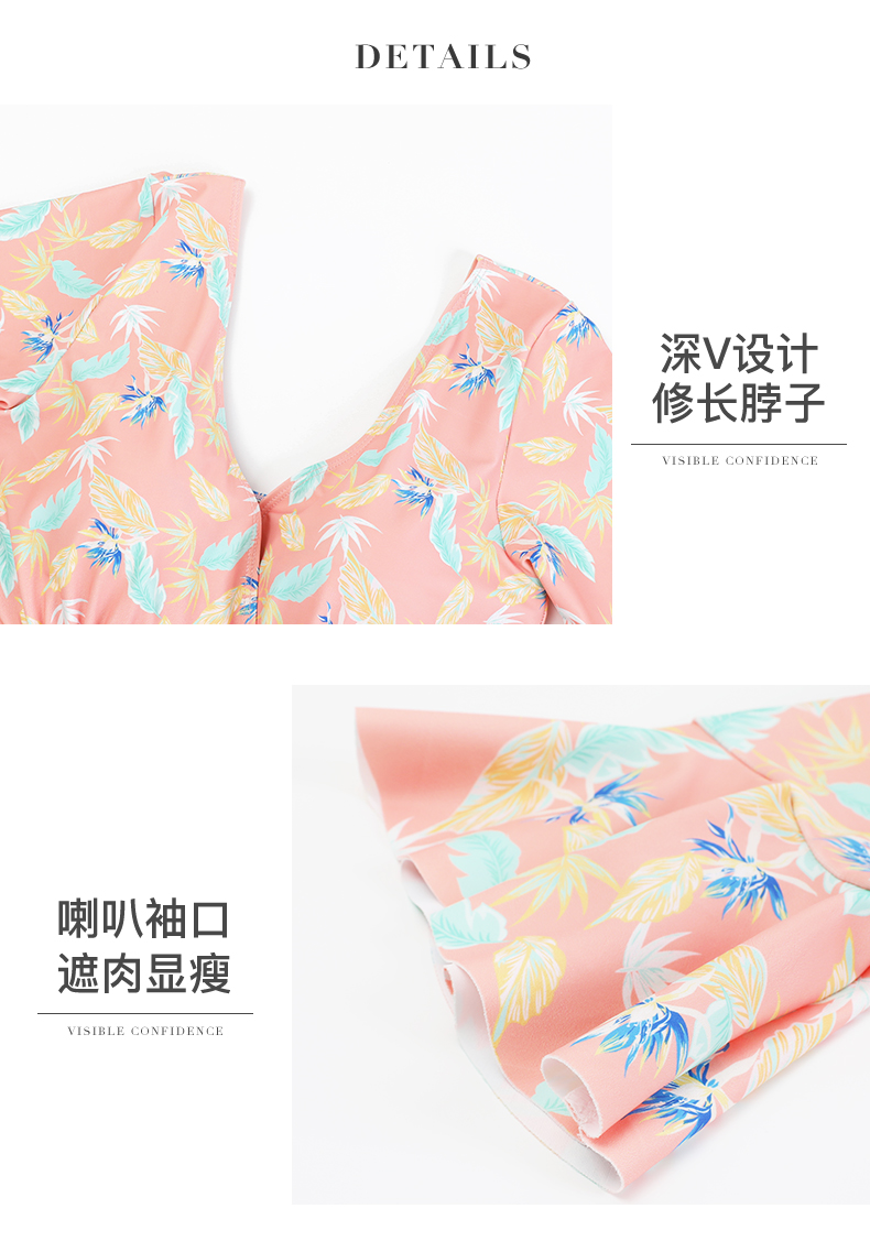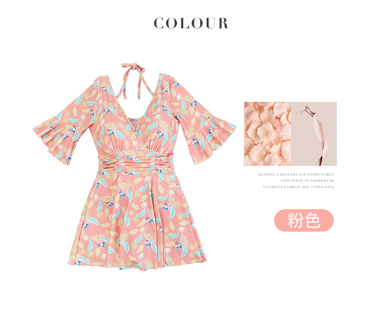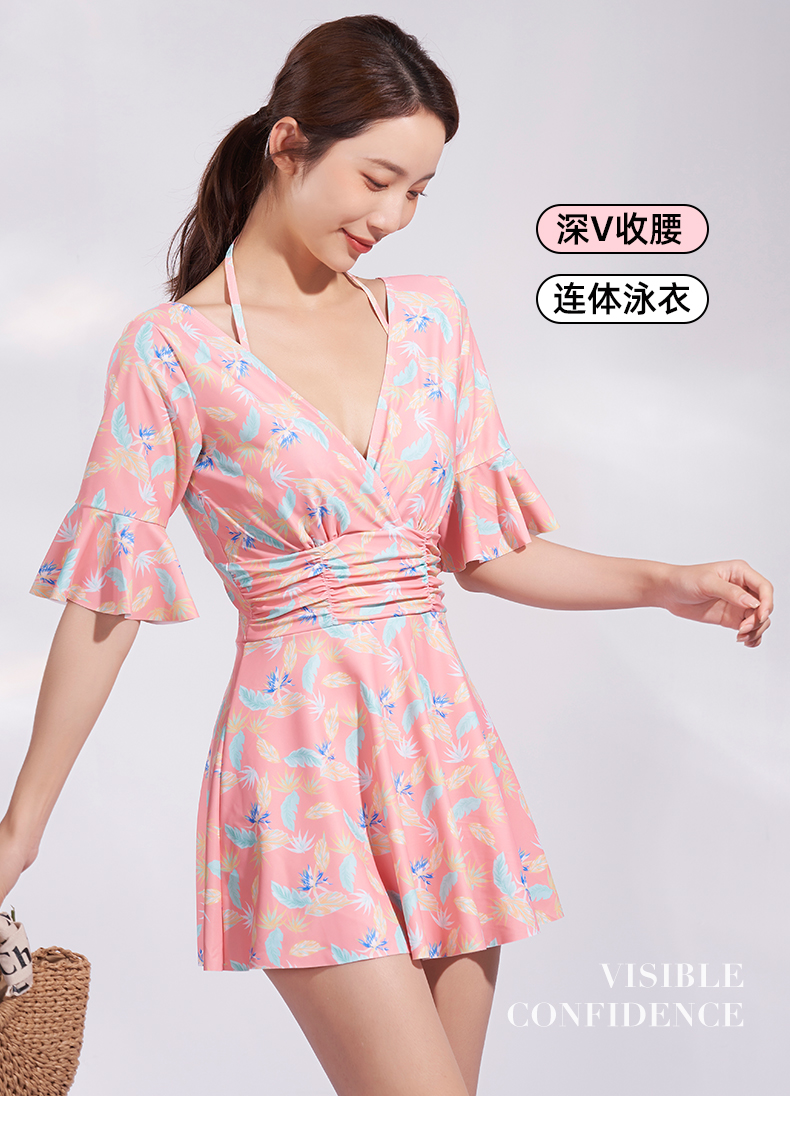 熳洁儿 中袖连体裙泳衣大码V领显瘦舒适夏季新款23206301