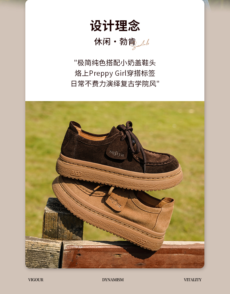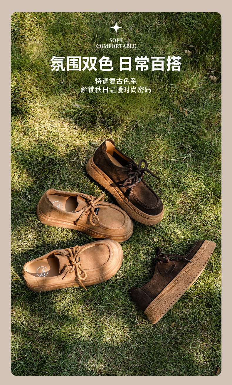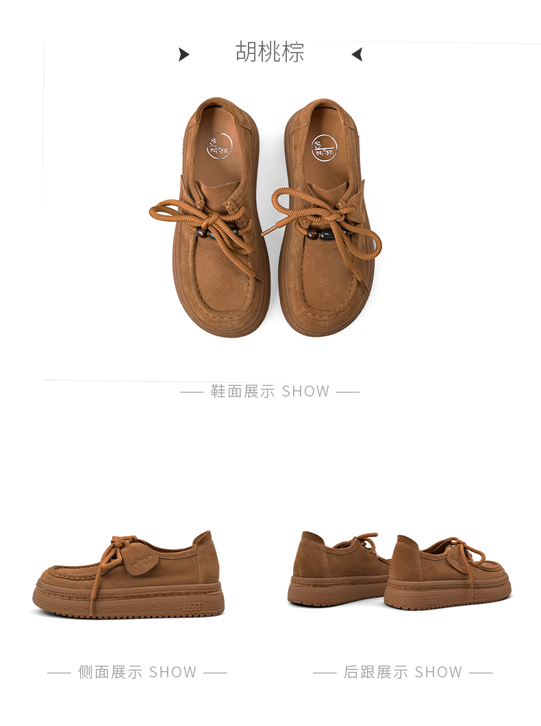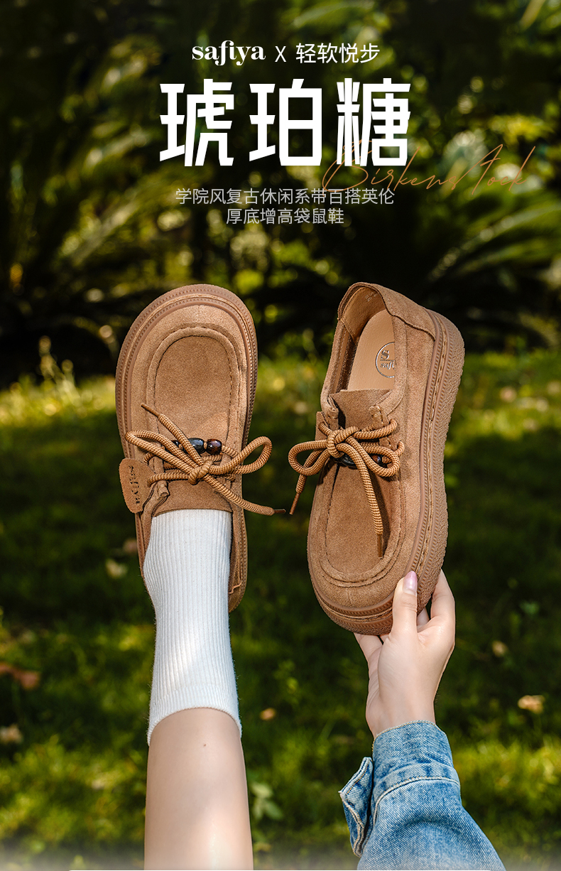预售|Safiya/索菲娅2025学院风复古休闲系带百搭英伦厚底增高袋鼠鞋SFD3112441