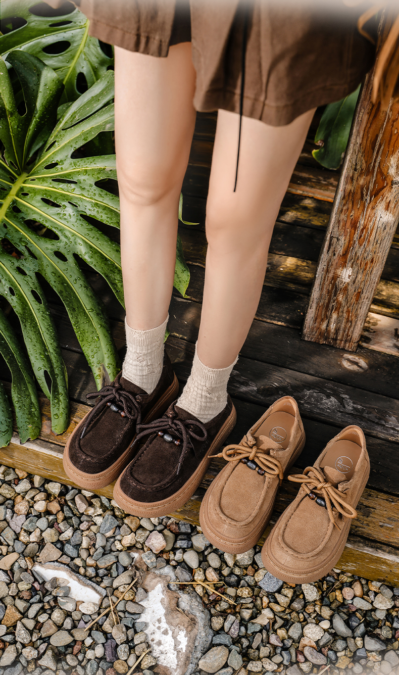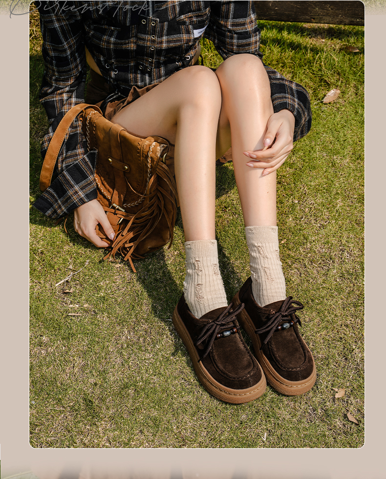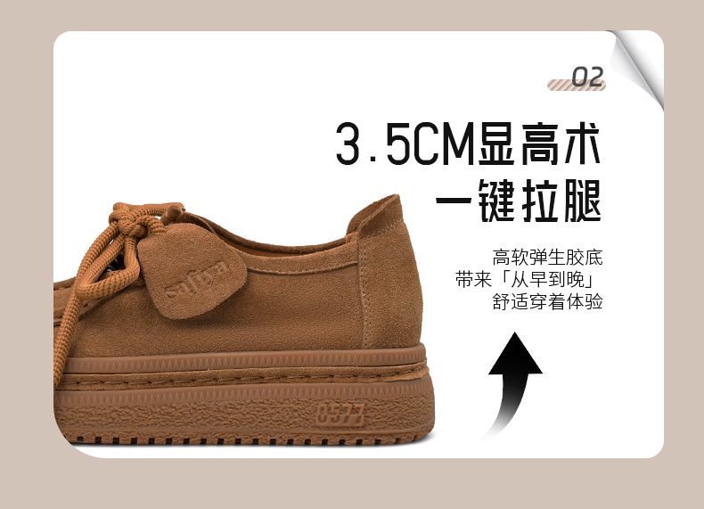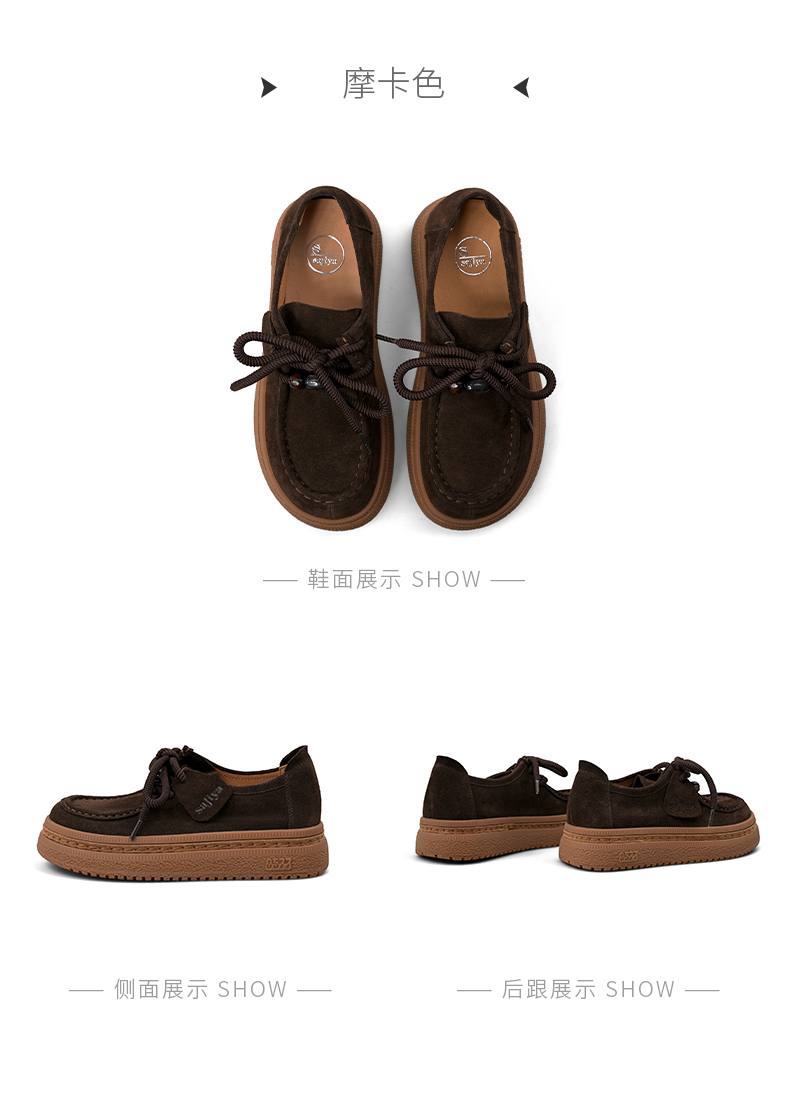 预售|Safiya/索菲娅2025学院风复古休闲系带百搭英伦厚底增高袋鼠鞋SFD3112441