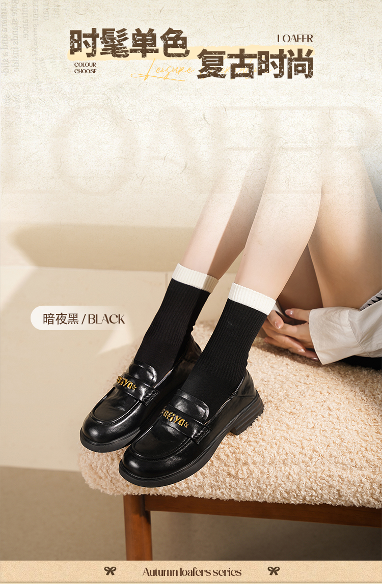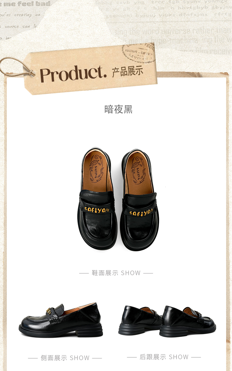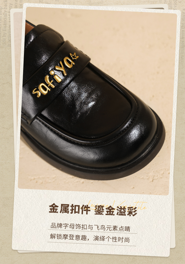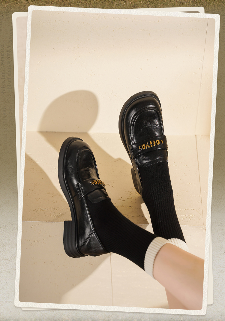 Safiya/索菲娅2025学院风字母扣圆头复古英伦百搭粗跟小皮鞋SFD3112068