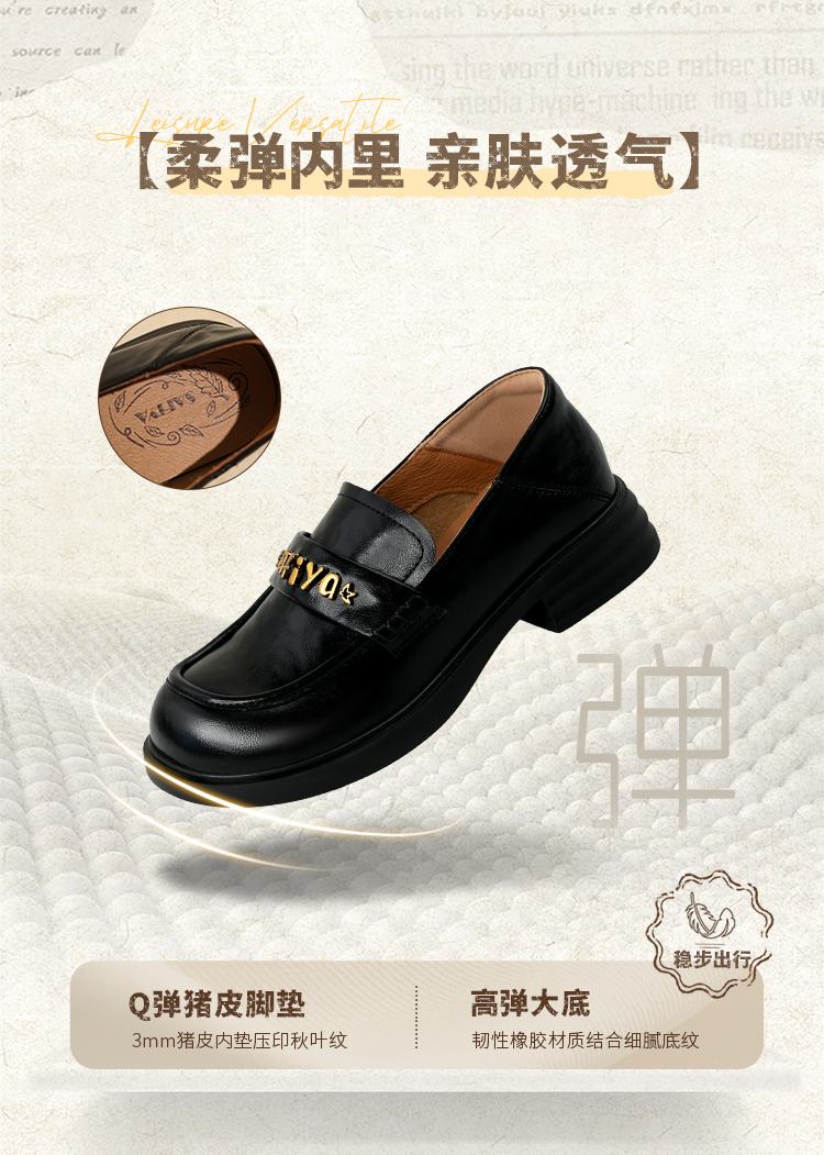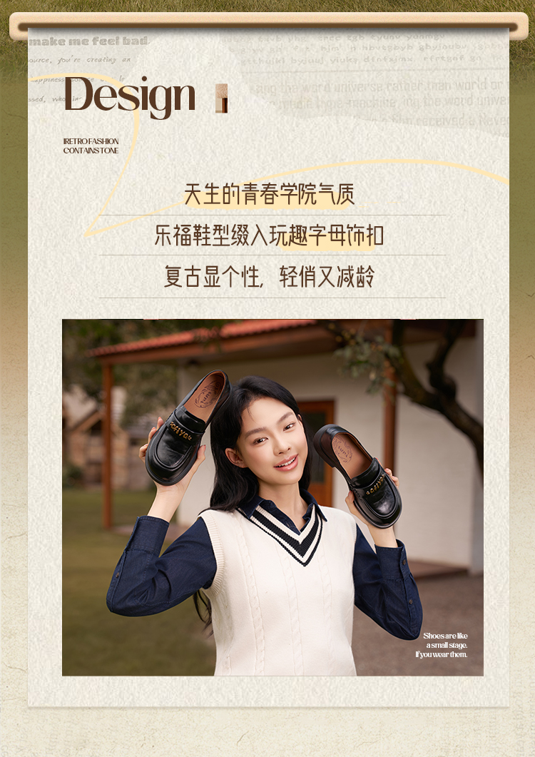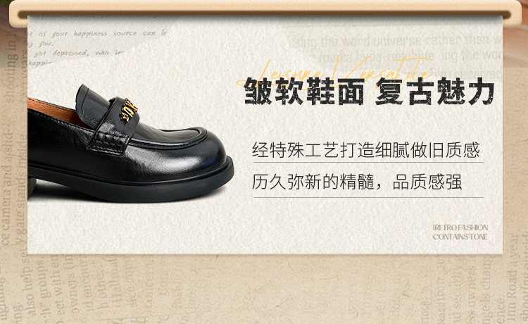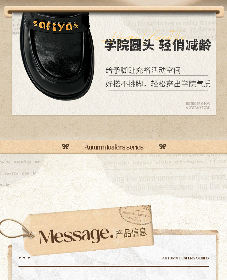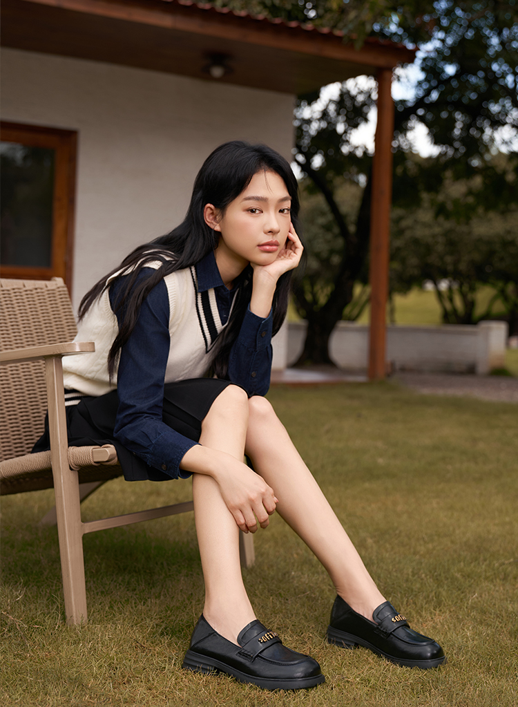 Safiya/索菲娅2025学院风字母扣圆头复古英伦百搭粗跟小皮鞋SFD3112068