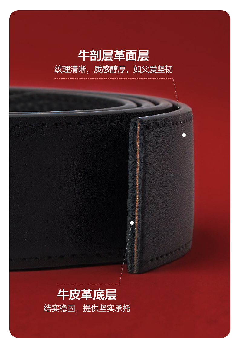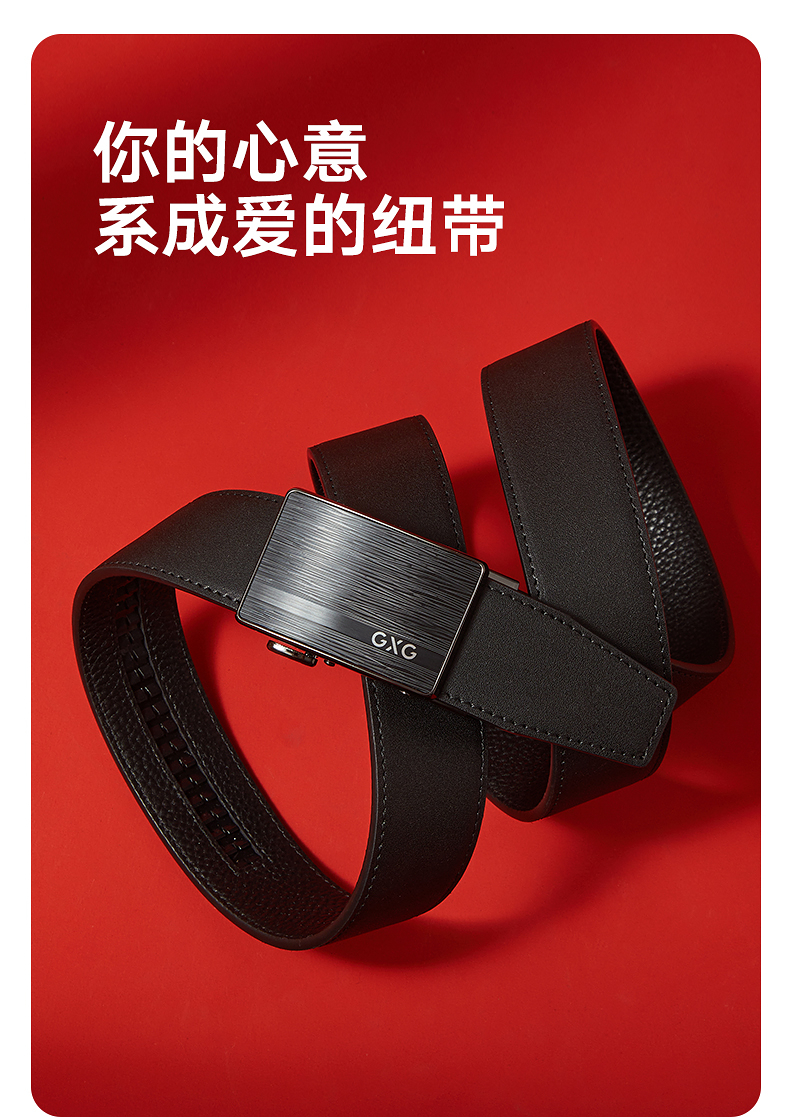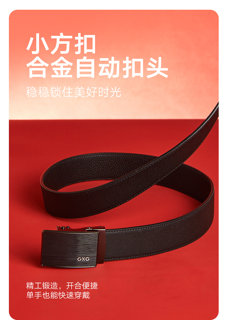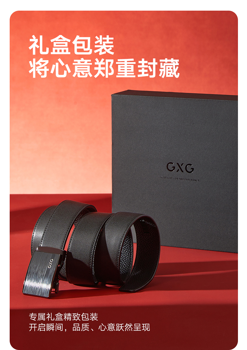 GXG通勤皮带【礼盒装】方扣黑色裤带男士自动扣腰带
