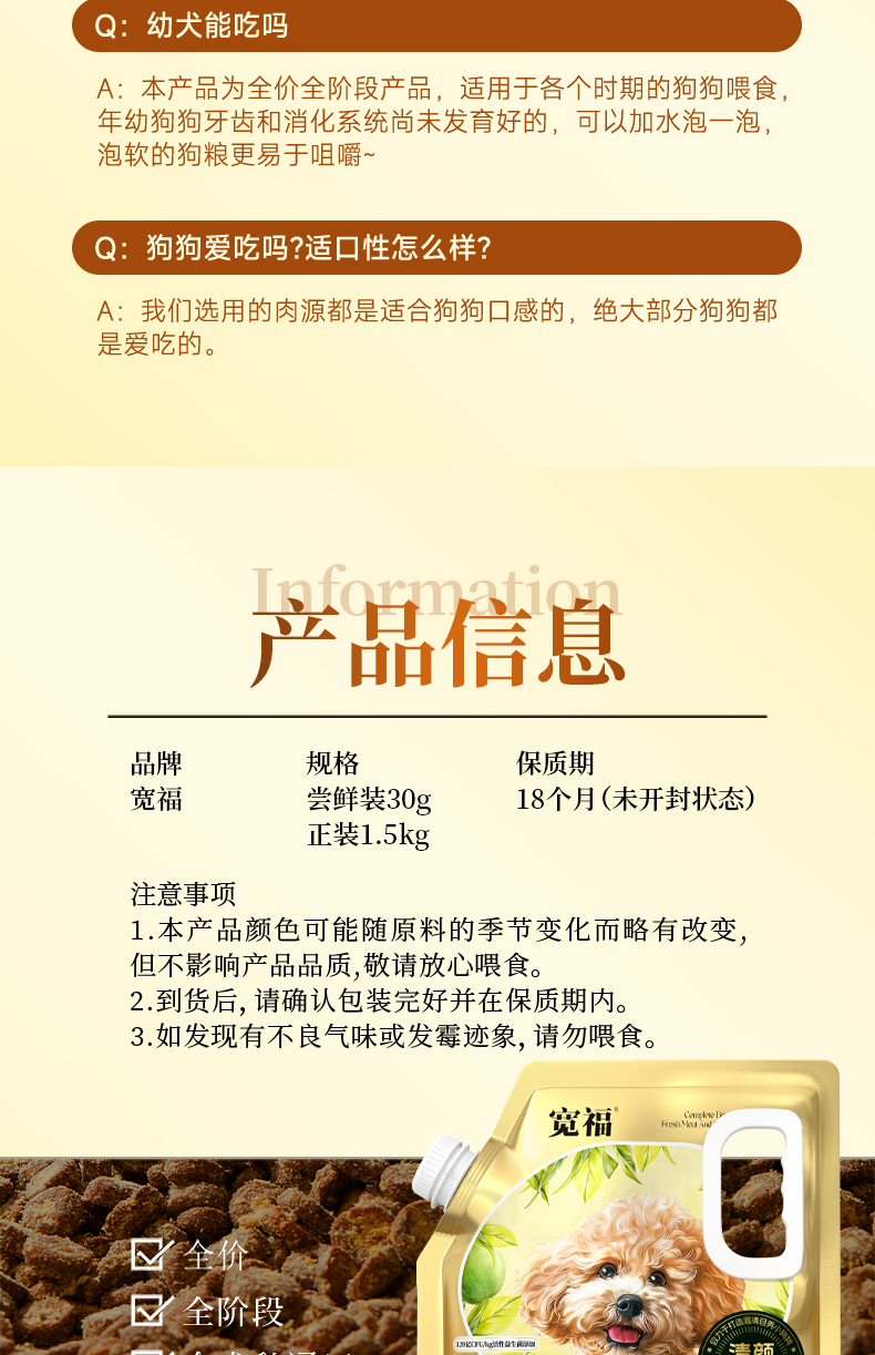 【9.9元10袋尝鲜】烘焙犬粮 鲜肉无谷低温慢烘 鸭肉雪梨配方 有助温和清火 缓解泪痕 肉松蛋黄夹心 9重蔬草果本(仅限一单)