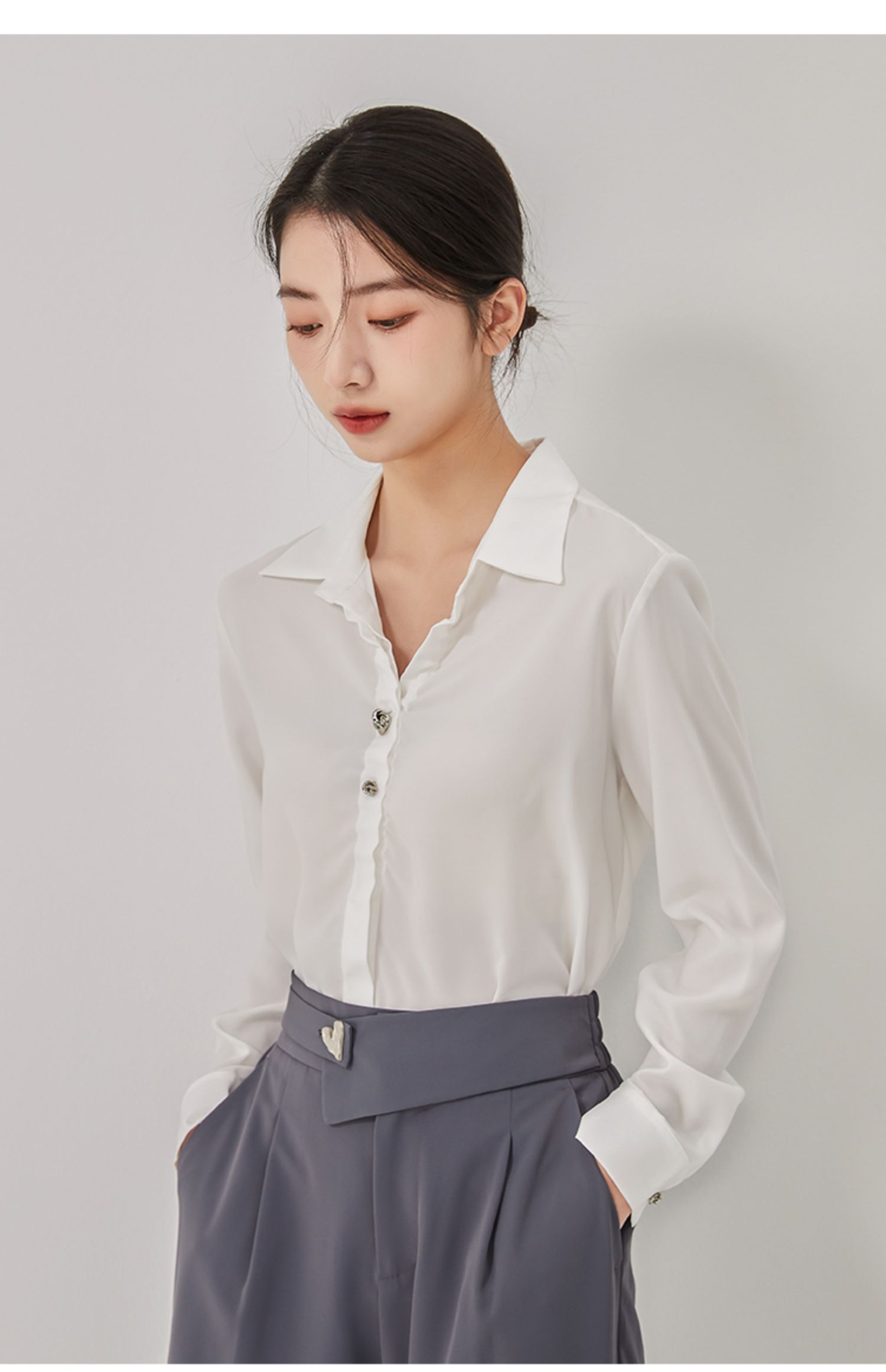 oldcolour2023春季新款白色法式通勤气质宽松长袖衬衫女O13013330