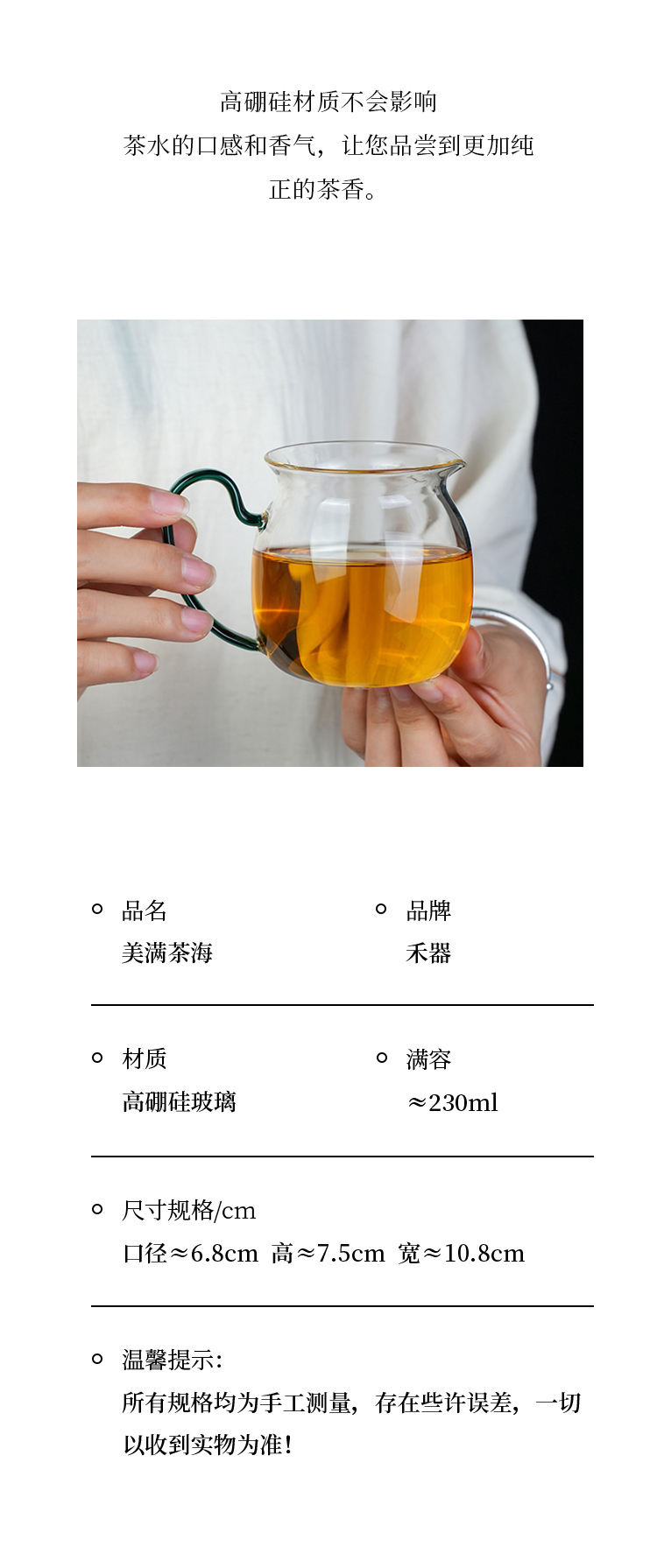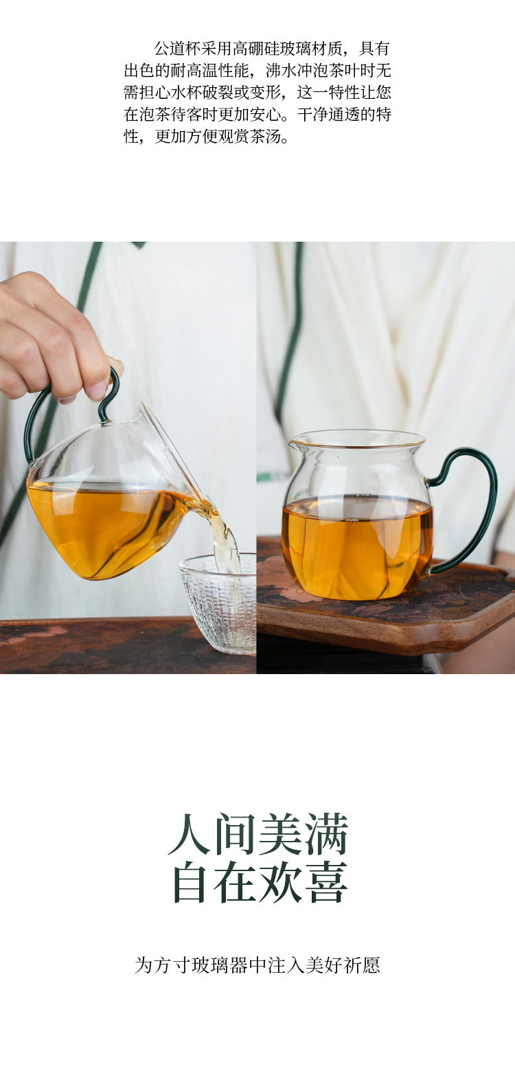 禾器晶彩·美满茶海/墨绿 小容量公杯玻璃分茶器耐热公道杯高硼硅茶具