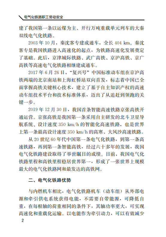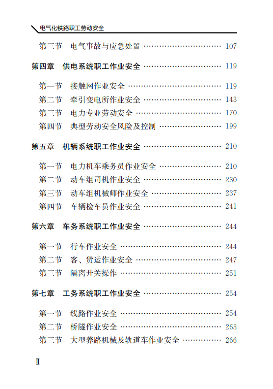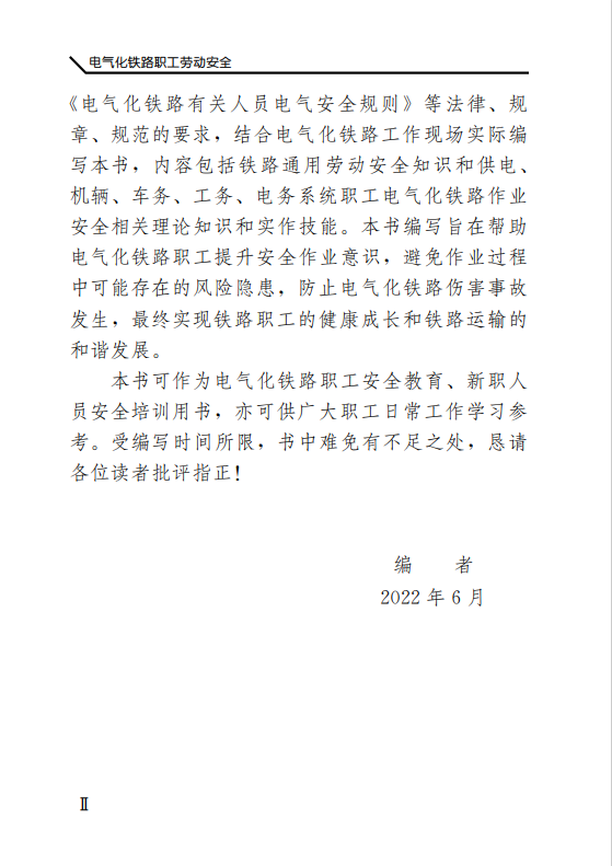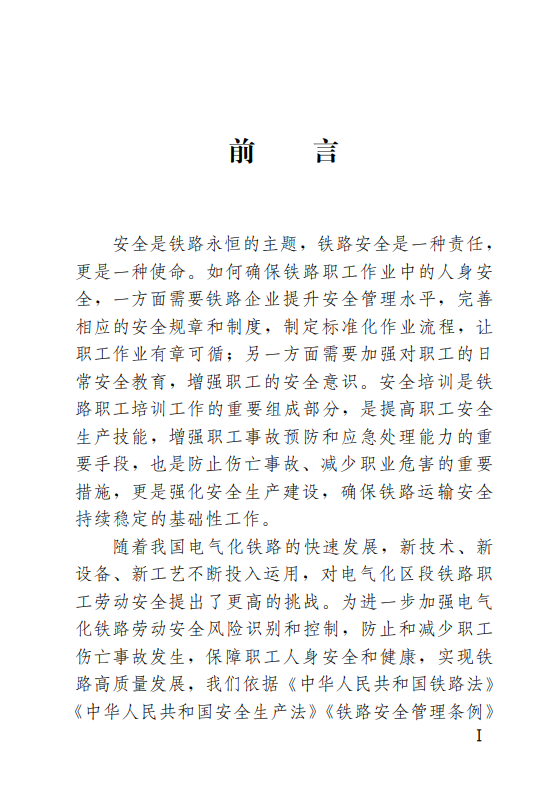 本书依据《中华人民共和国铁路法》《中华人民共和国安全生产法》《铁路安全管理条例》《电气化铁路有关人员电气安全规则》等法律、规章、标准的要求,结合电气化铁路工作现场实际编写,主要内容包括:电气化铁路概述,铁路通用劳动安全知识,电气安全与应急处置,供电系统职工作业安全,机辆系统职工作业安全,车务系统职工作业安全,工务系统职工作业安全,电务系统职工作业安全等。