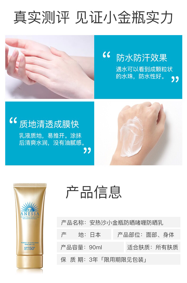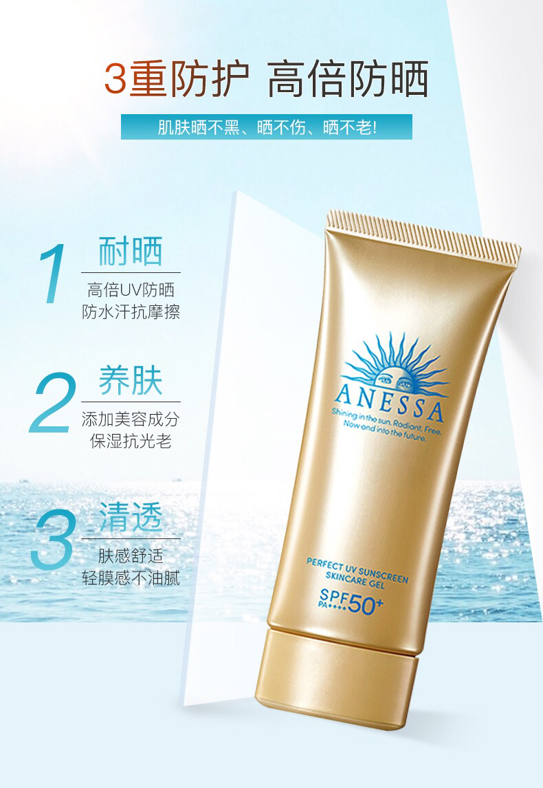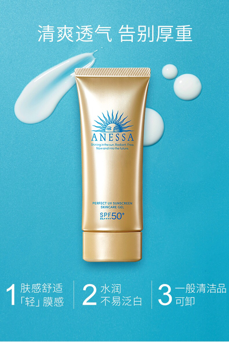 【海关保税直发】ANESSA安耐晒清爽防晒啫喱90g-小金管啫喱-面部可用-会员5折