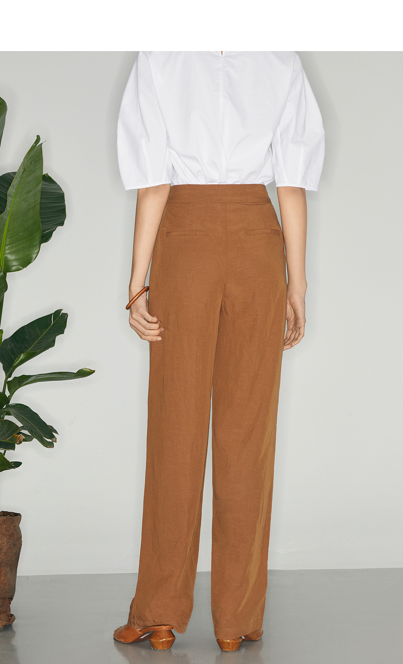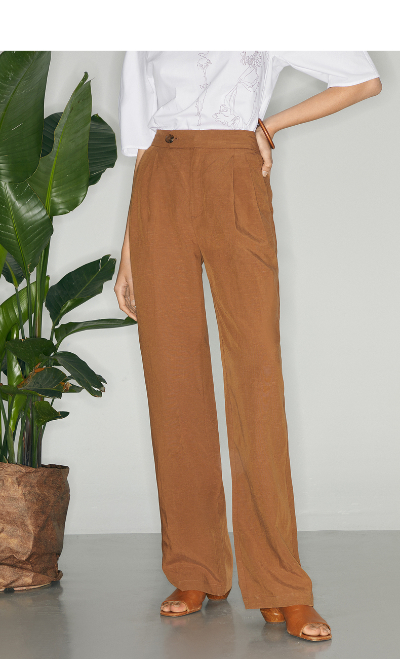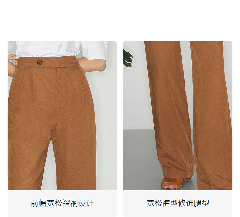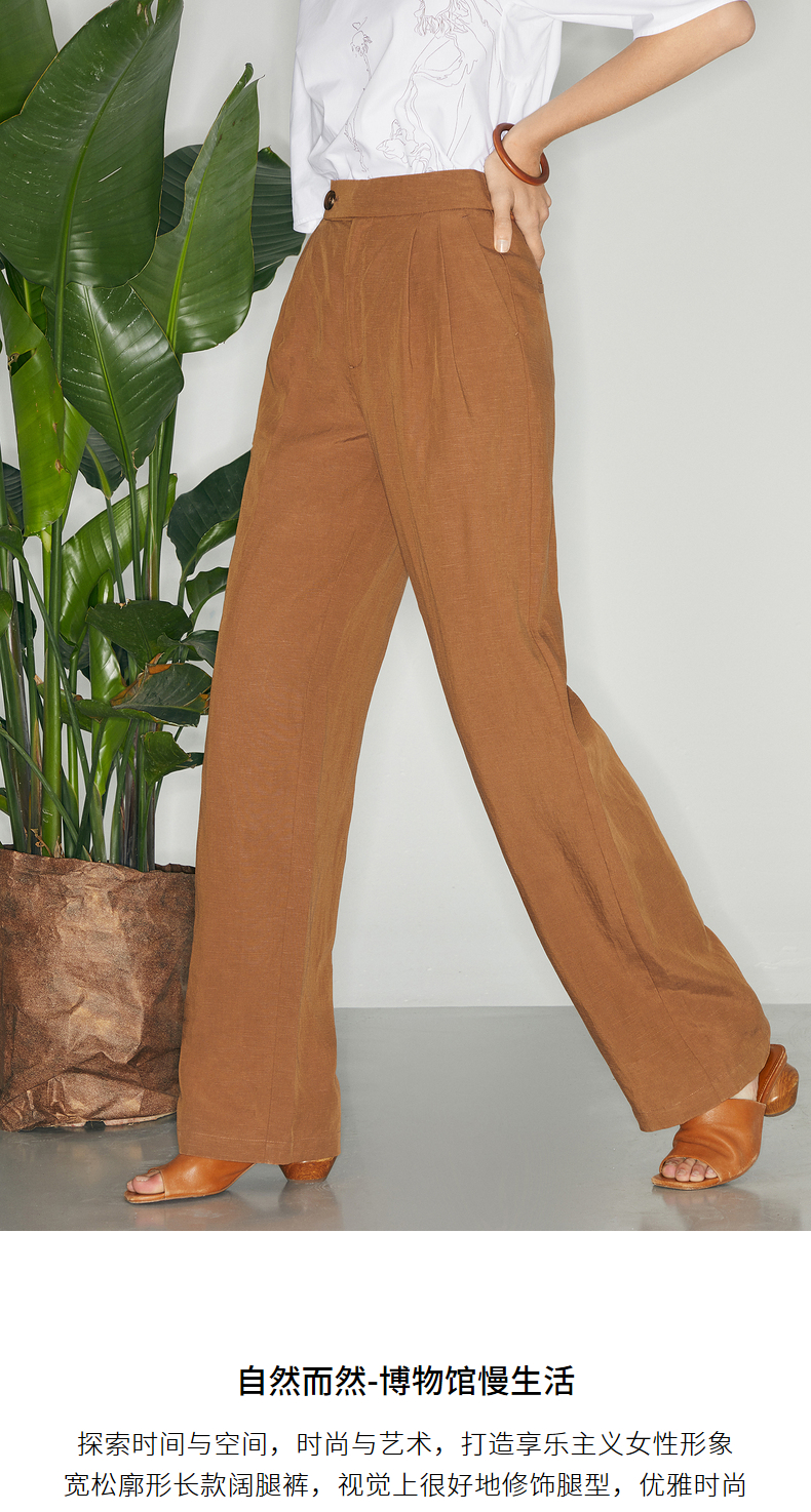 【商场同款】麦檬夏复古杂色一粒扣高腰休闲阔腿裤5C5151171