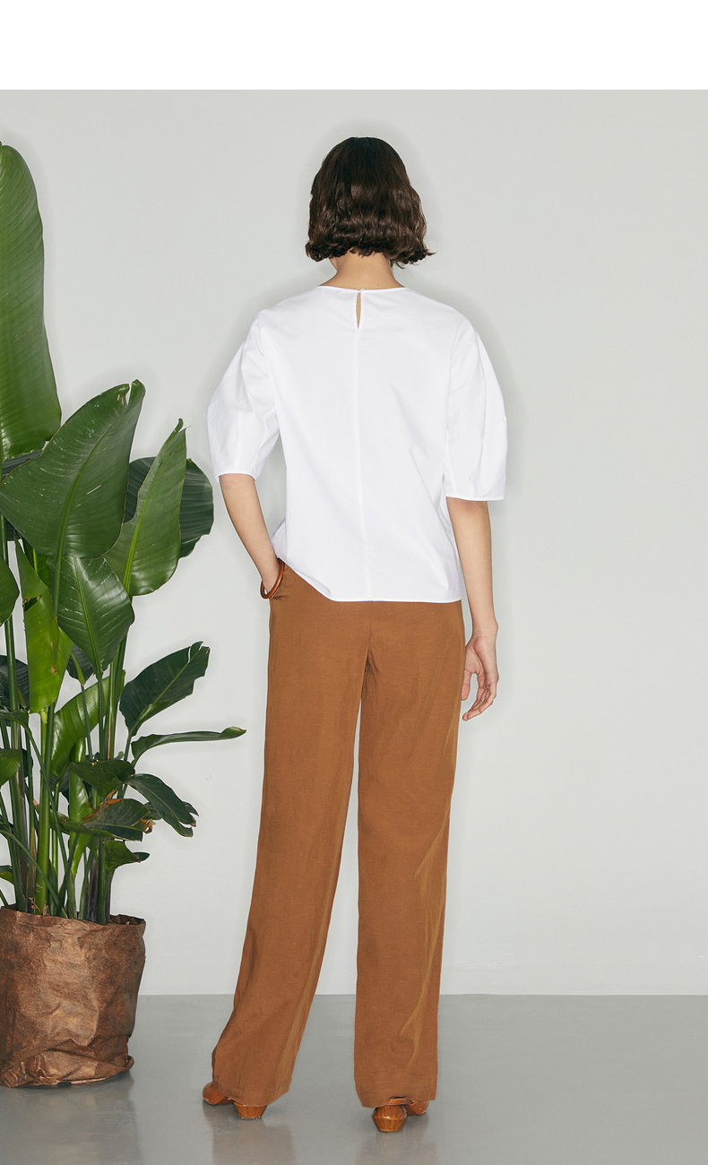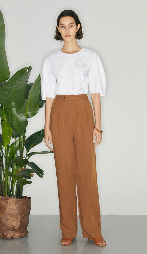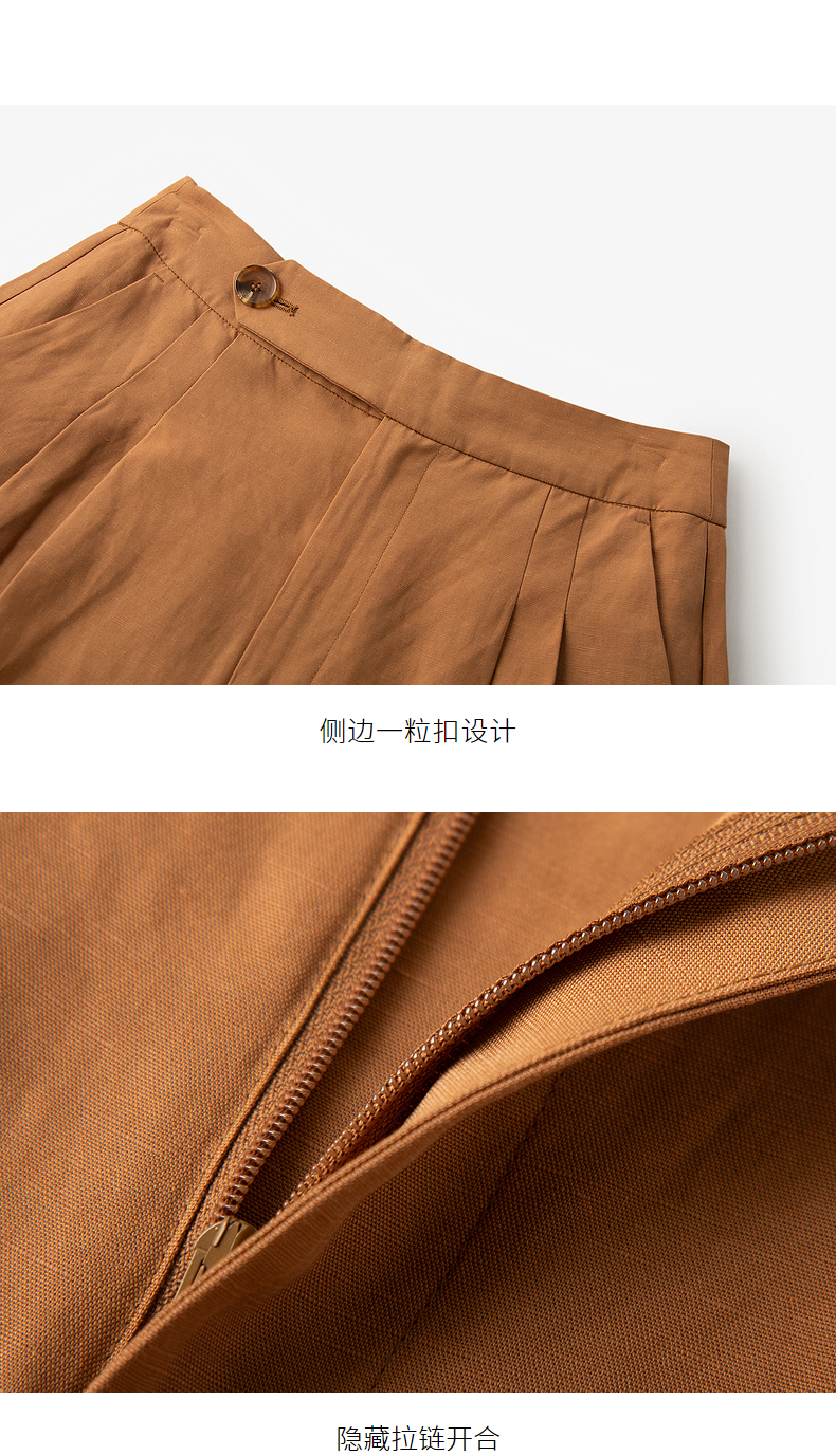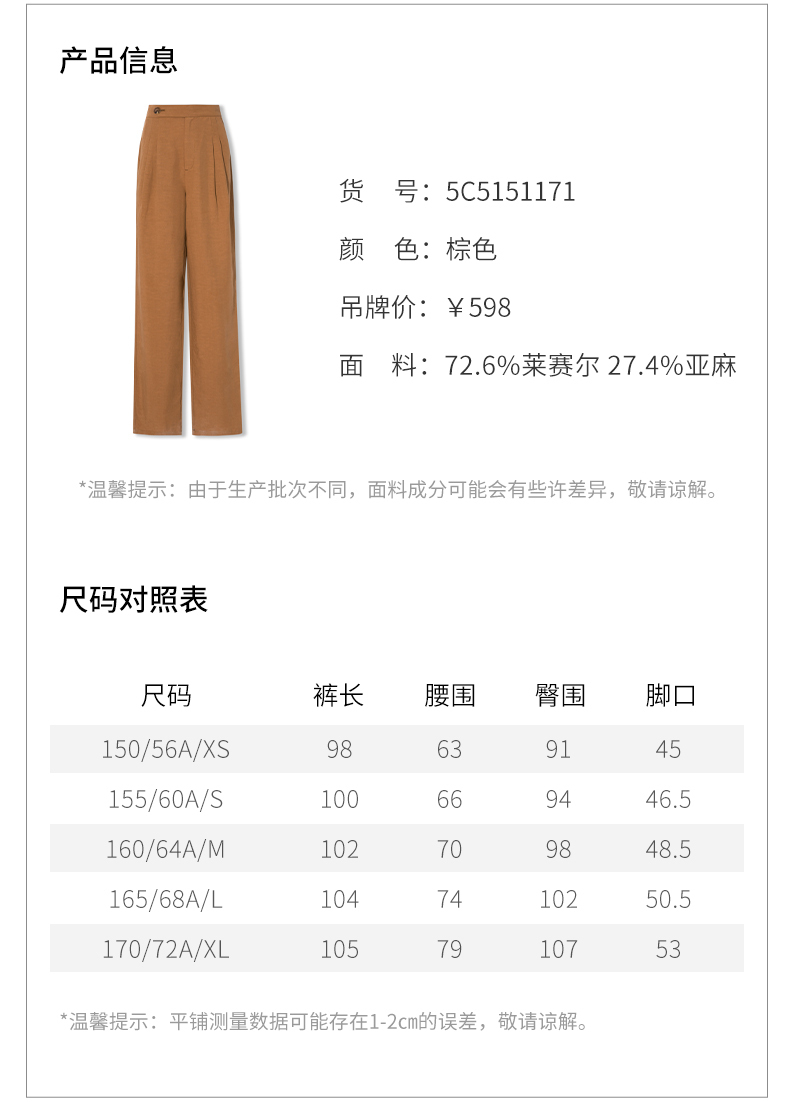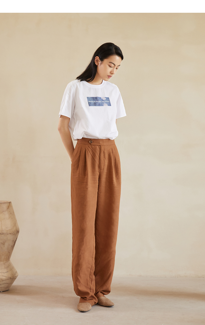 【商场同款】麦檬夏复古杂色一粒扣高腰休闲阔腿裤5C5151171