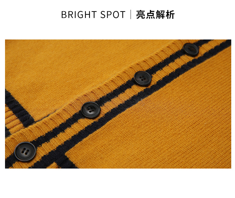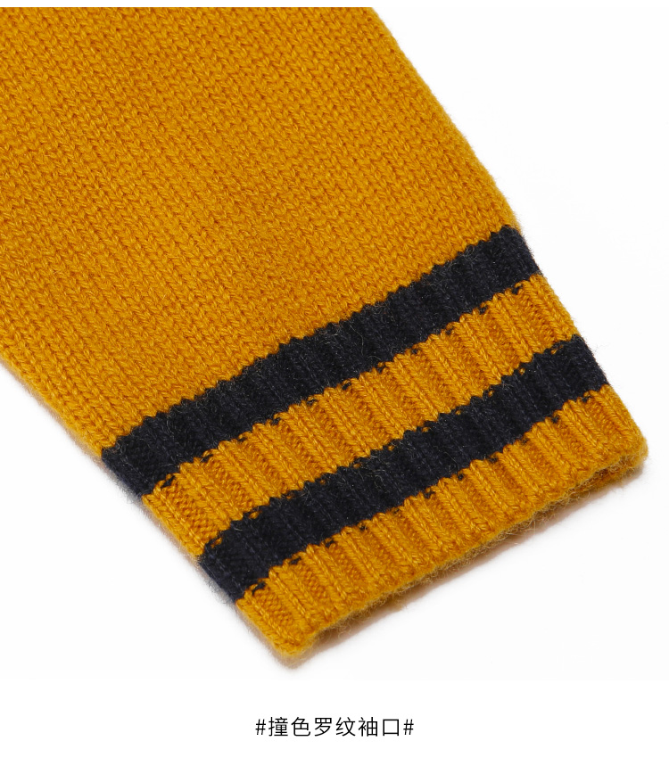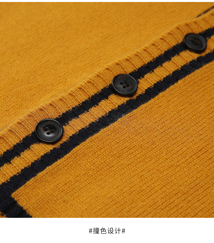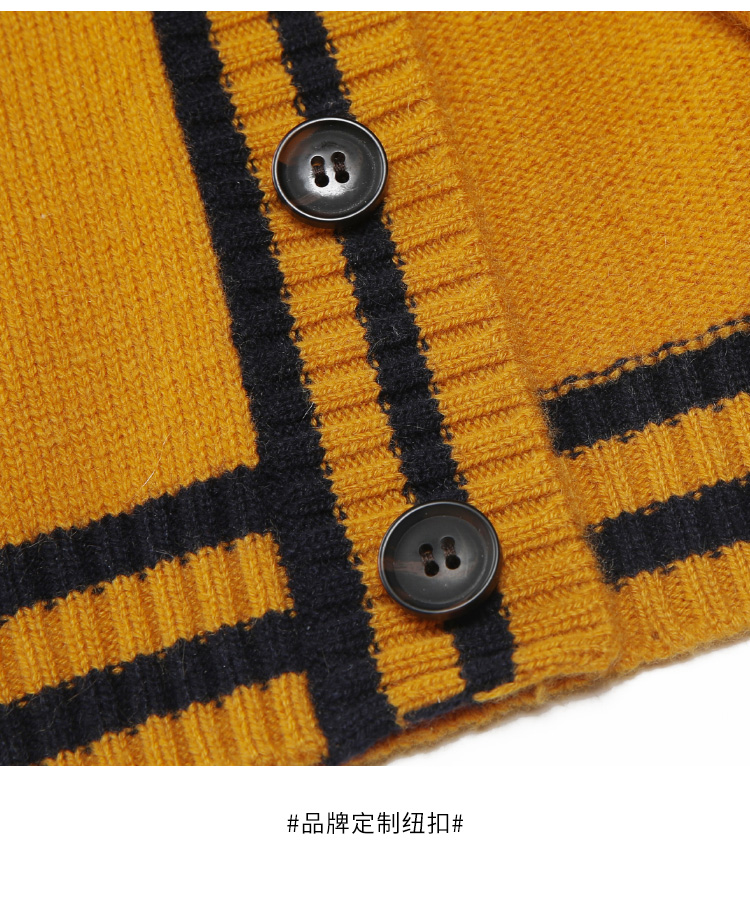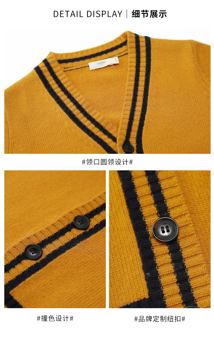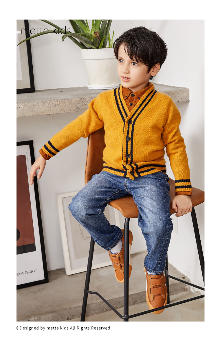 METTE羊绒世家童装男中大童100%山羊绒开衫时尚撞色条纹V领开衫保暖外套