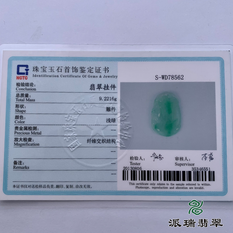派瑞翡翠 翡翠挂件 糯种 浅绿