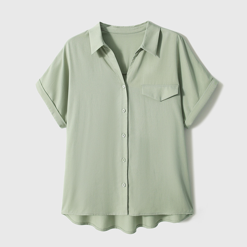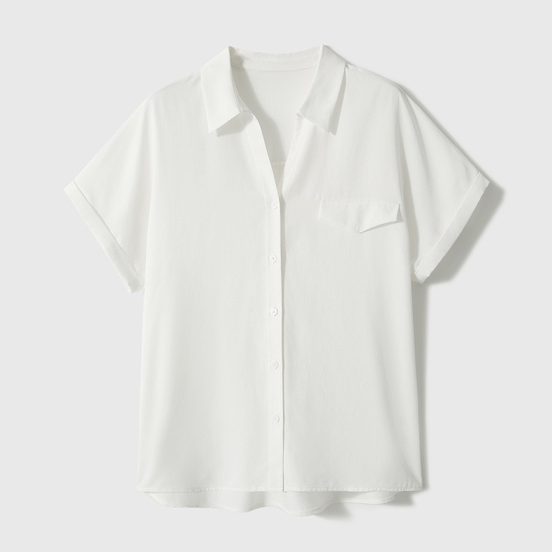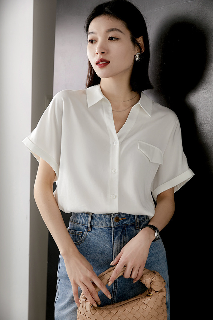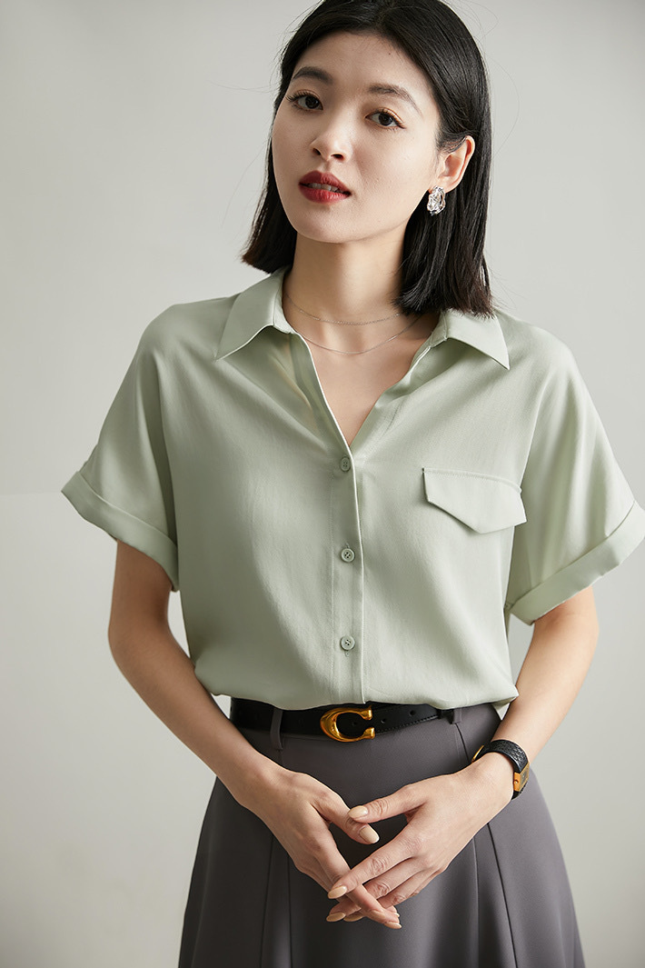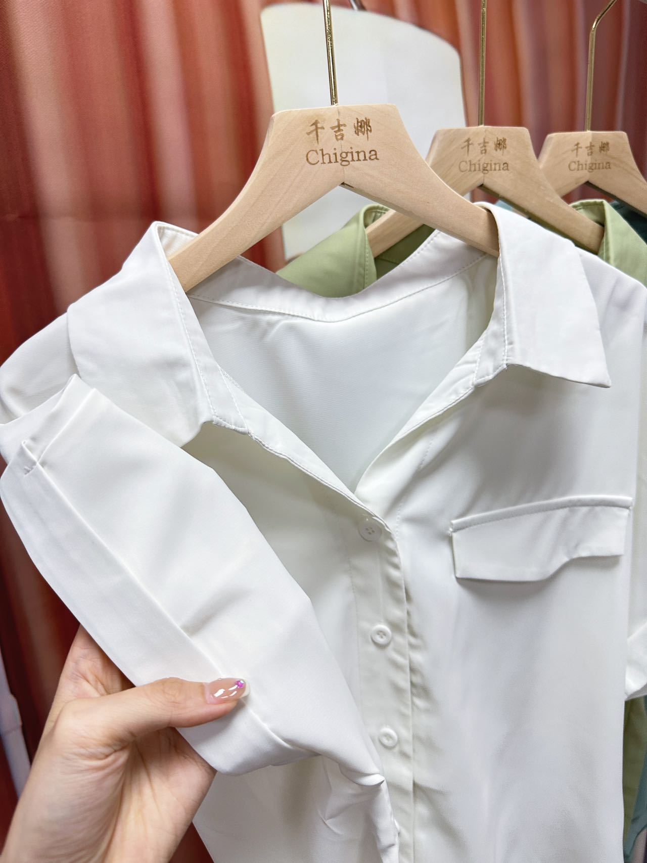 千吉娜Chigina小V领衬衫 亲肤柔软,透气不闷汗,面料垂感十足 纯色配色简约