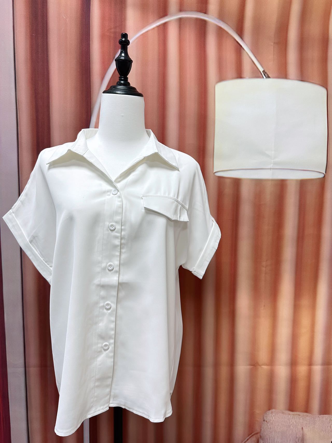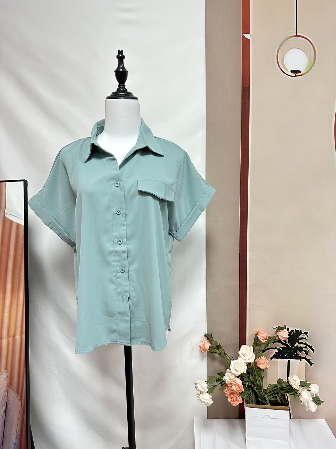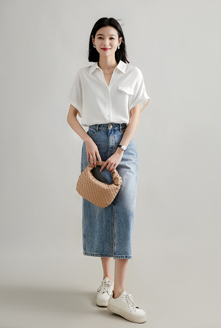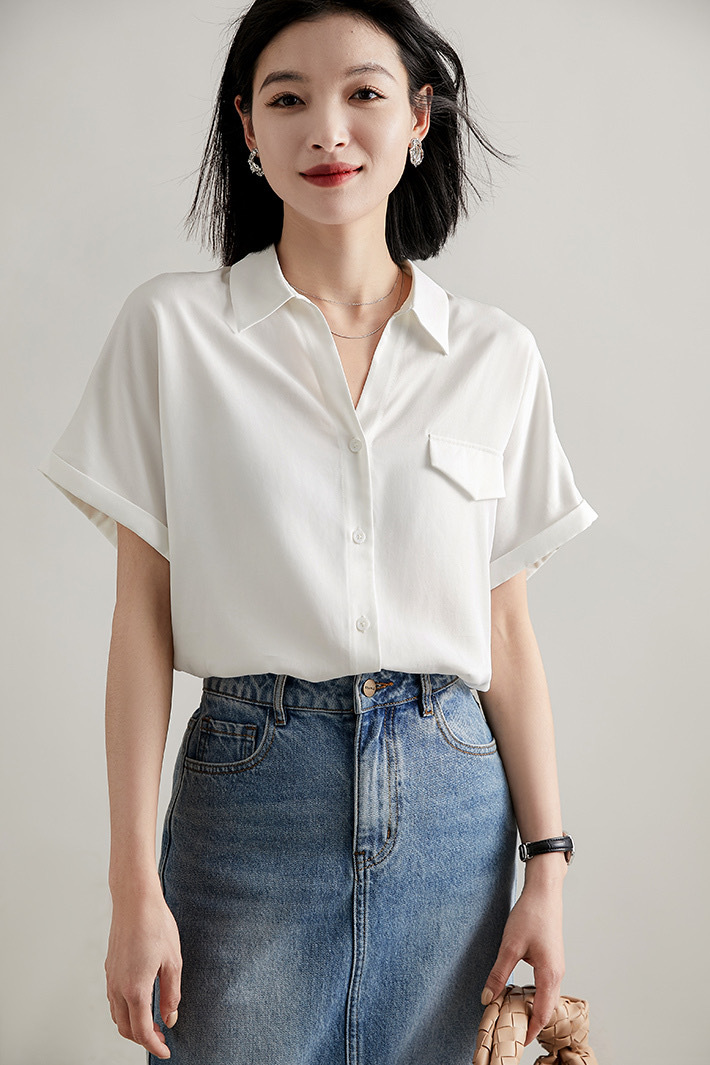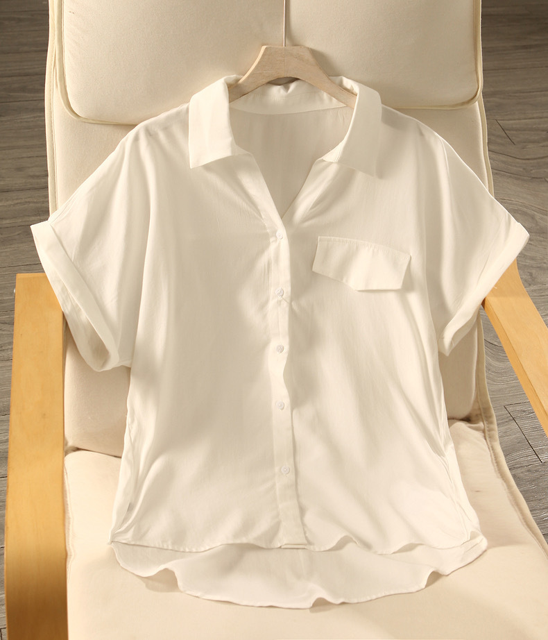 千吉娜Chigina小V领衬衫 亲肤柔软,透气不闷汗,面料垂感十足 纯色配色简约