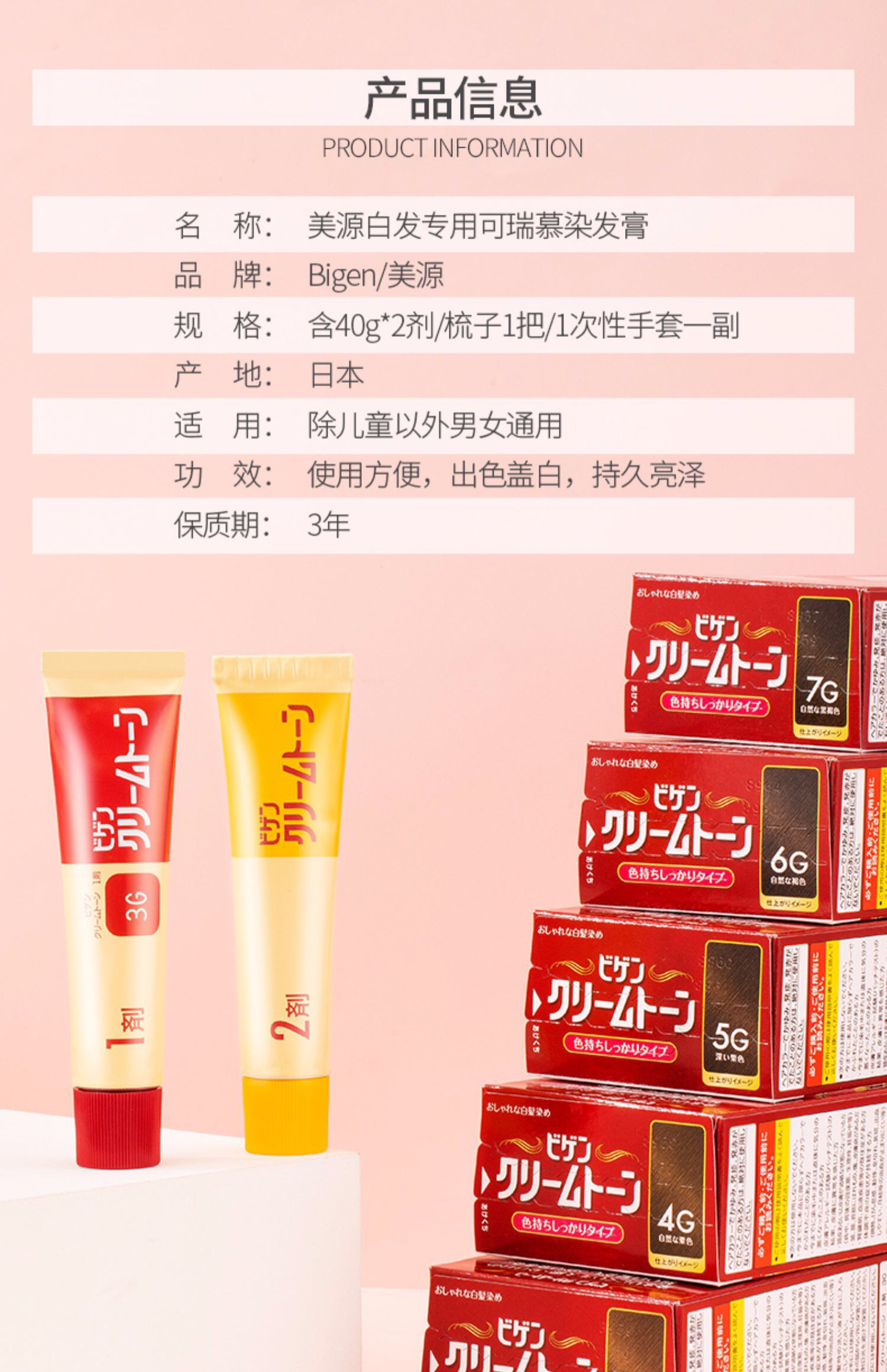 【海关保税直发】日本Bigen美源 染发剂黑发遮白纯植物-会员5折