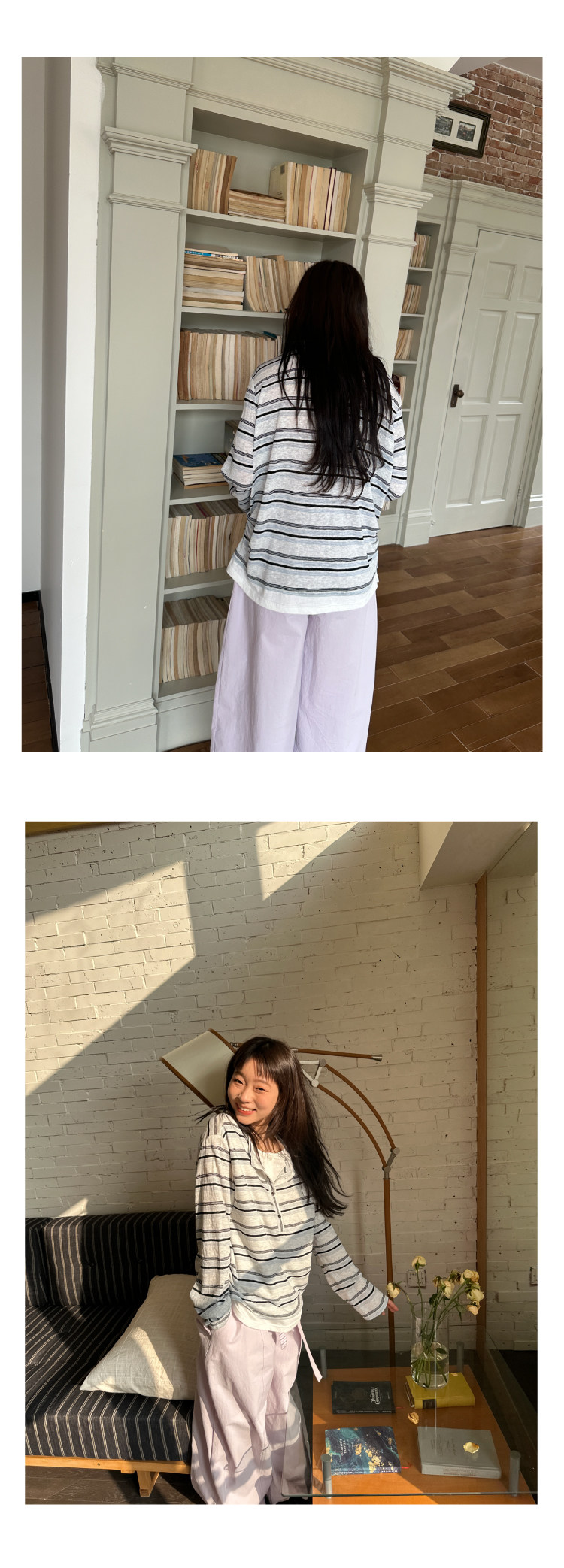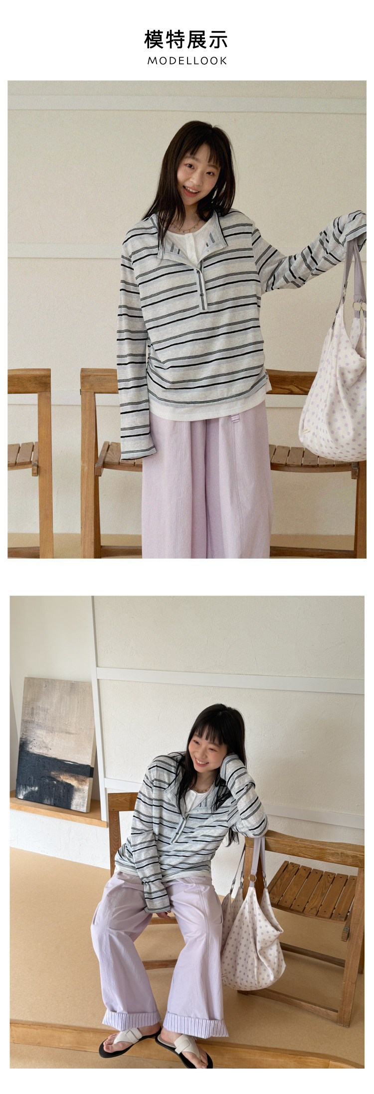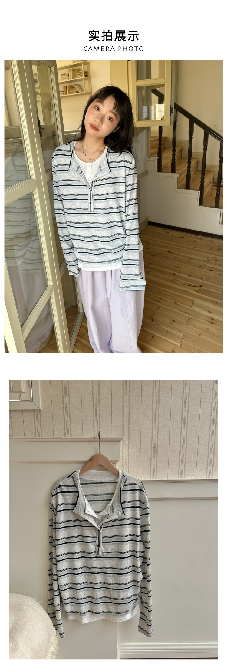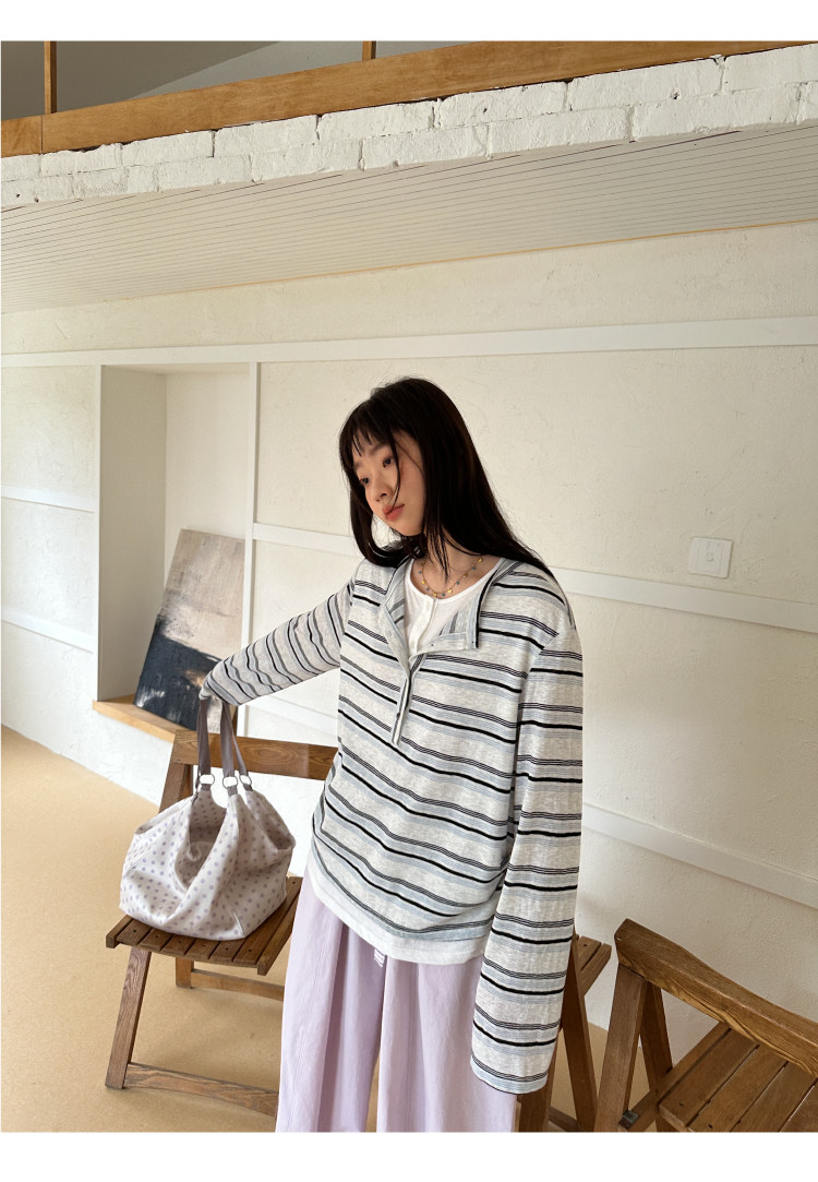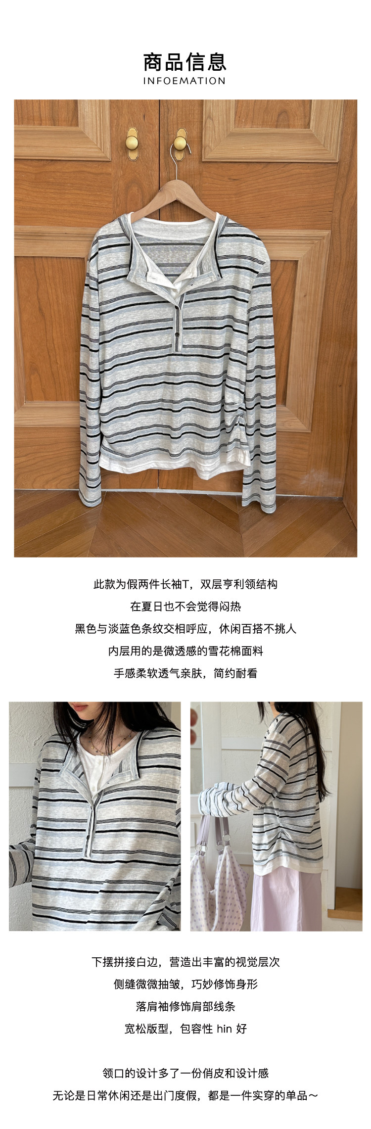 nothe Case布然/NC261828/「海滨漫步」宽松舒适双层假两件条纹亨利领针织长袖T