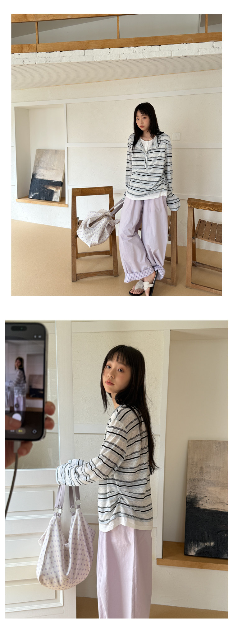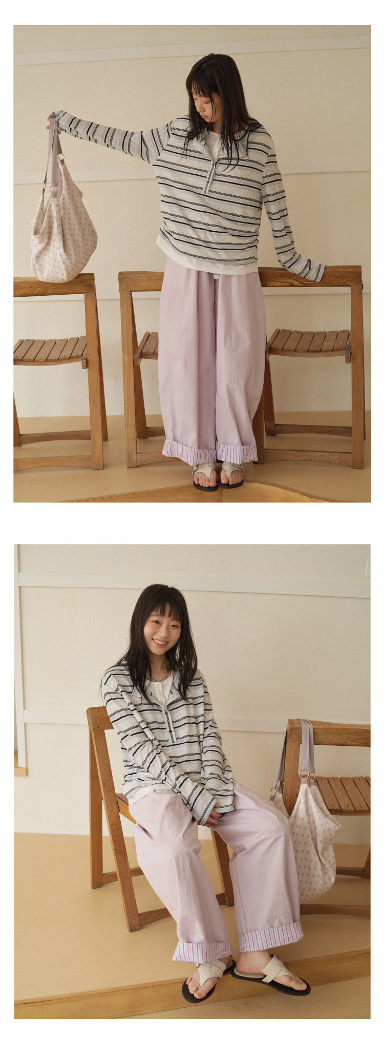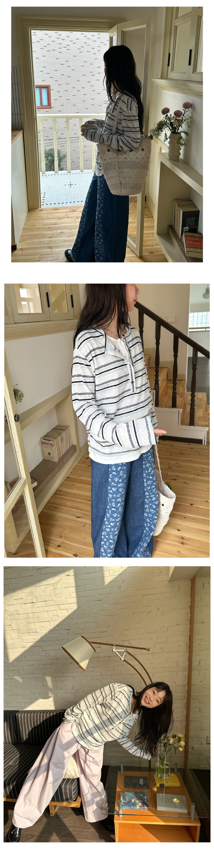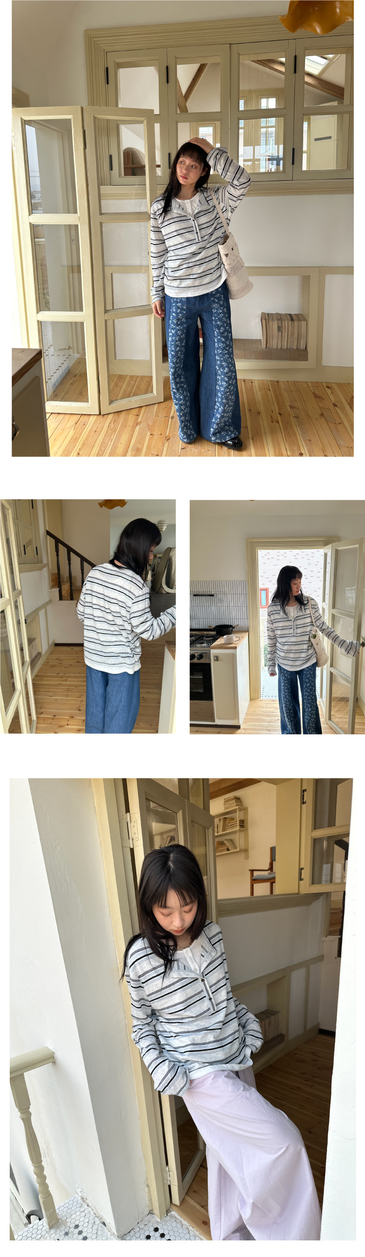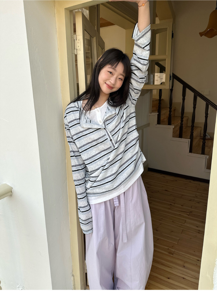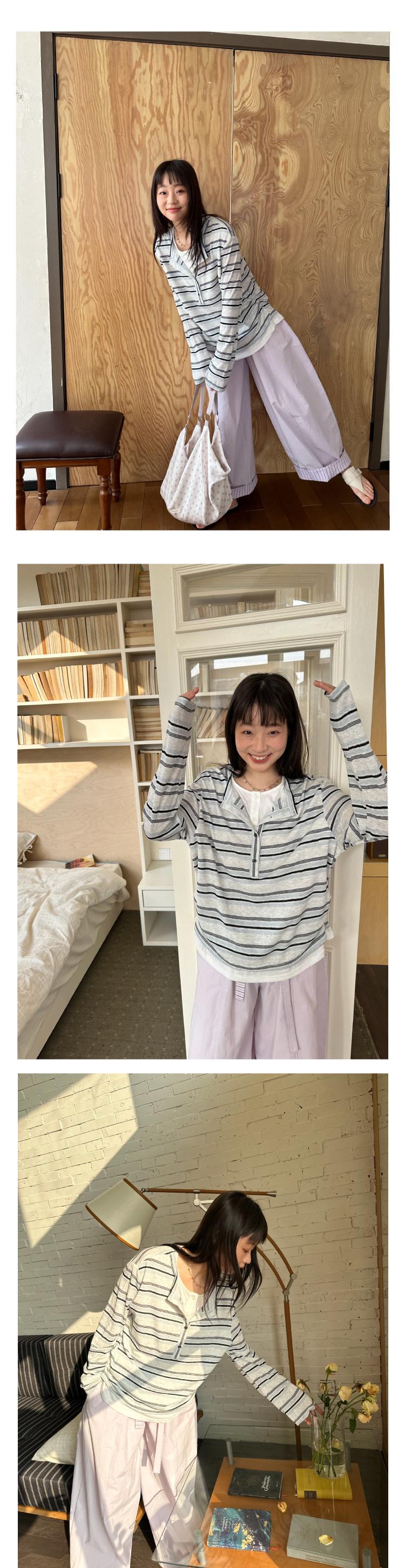 nothe Case布然/NC261828/「海滨漫步」宽松舒适双层假两件条纹亨利领针织长袖T