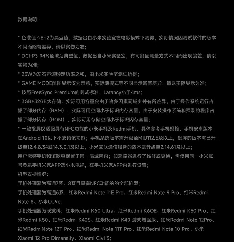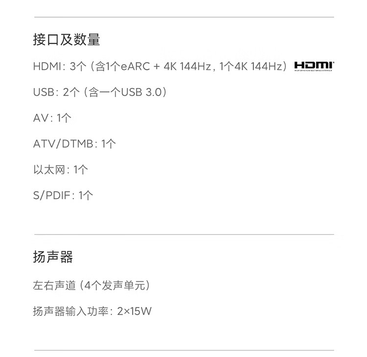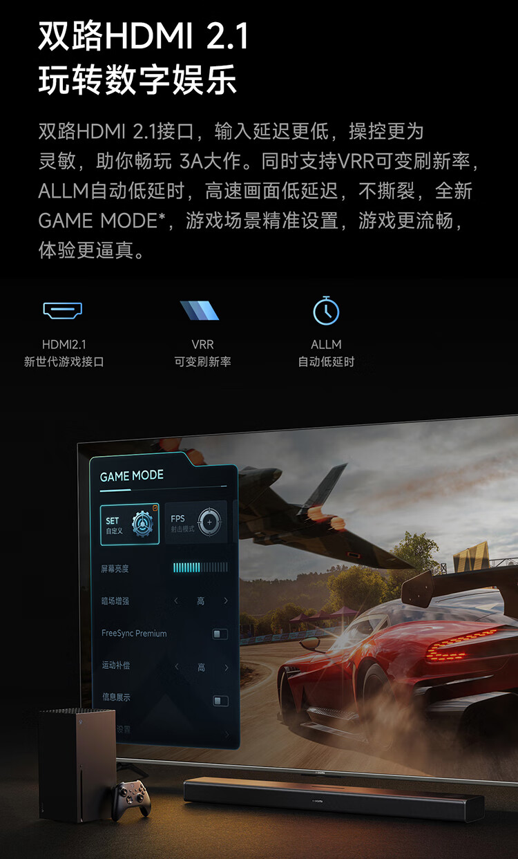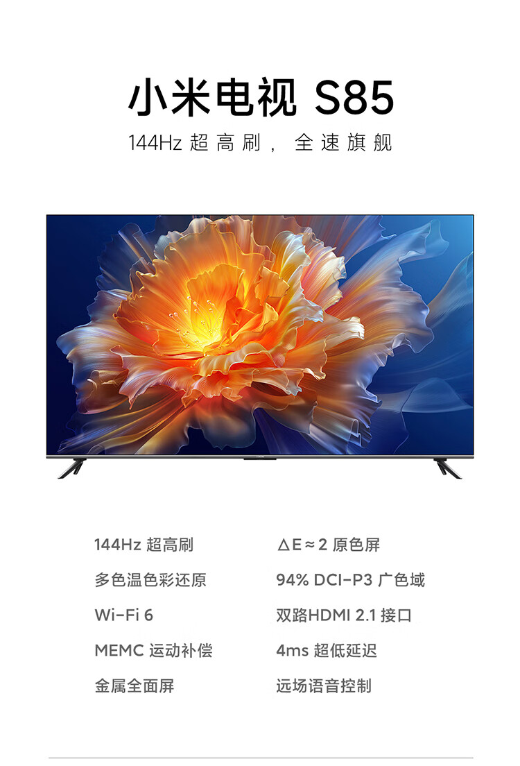 小米电视S85 85英寸4K 144Hz超高刷全速旗舰游戏电视 WiFi 6 3GB+32GB智能电视L85MA-S