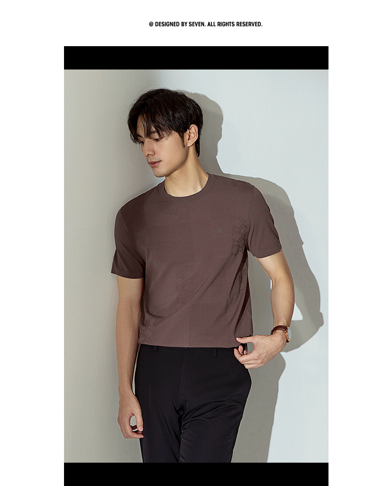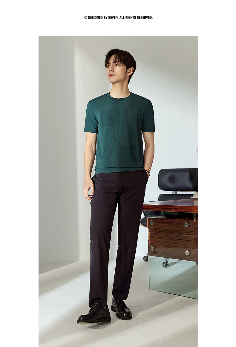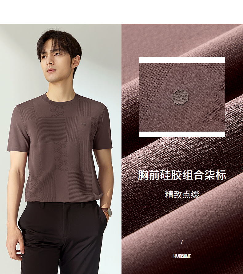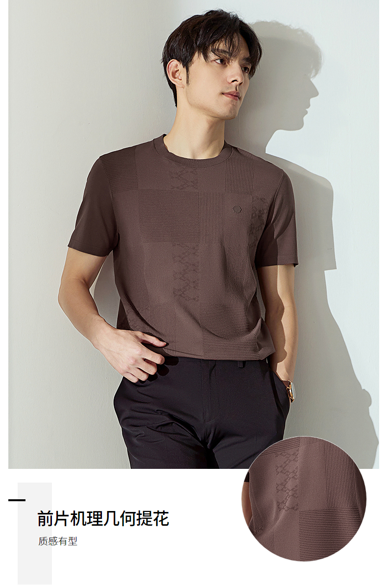 【高端系列】柒牌短袖T恤男2025夏季凉感伊力特弹力圆领提花上衣128T70470