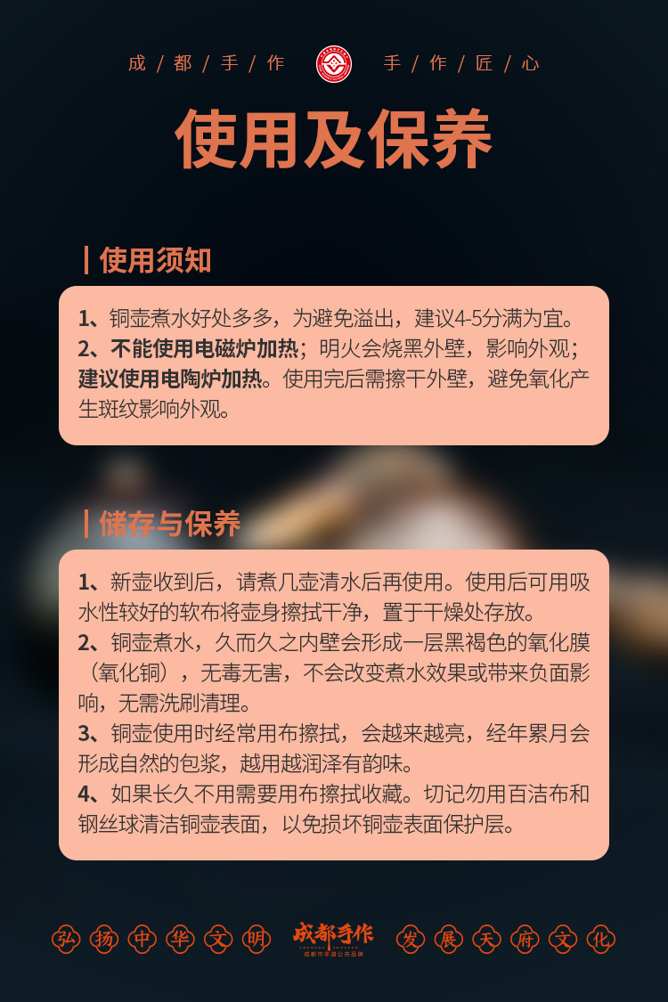 【产品特点】非遗技艺,匠心手作,整体冷锻,大师亲制,纯铜材质,健康养生,壶型优美,艺术臻品;