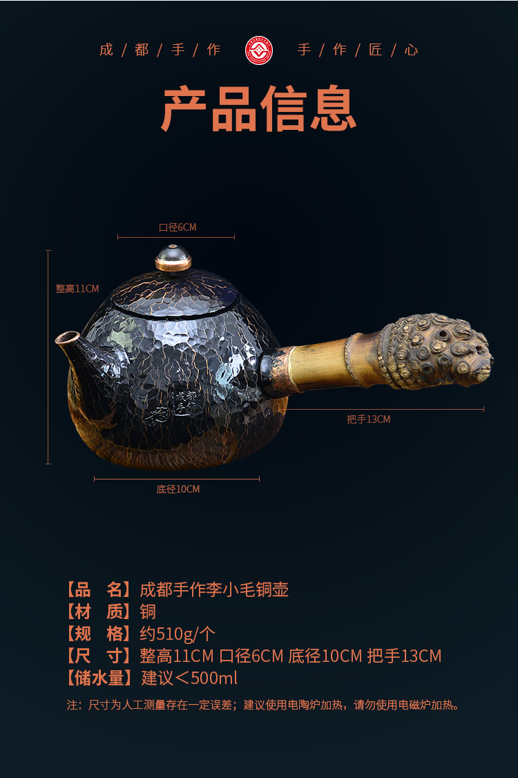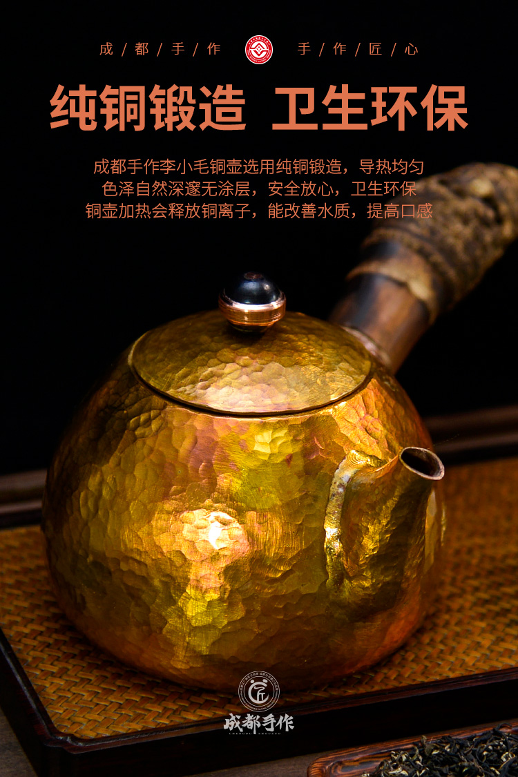 【李小毛铜壶】成都手作定制款铜茶壶 铜壶烧水泡茶沏茶壶【非物质文化遗产】【手工匠制】