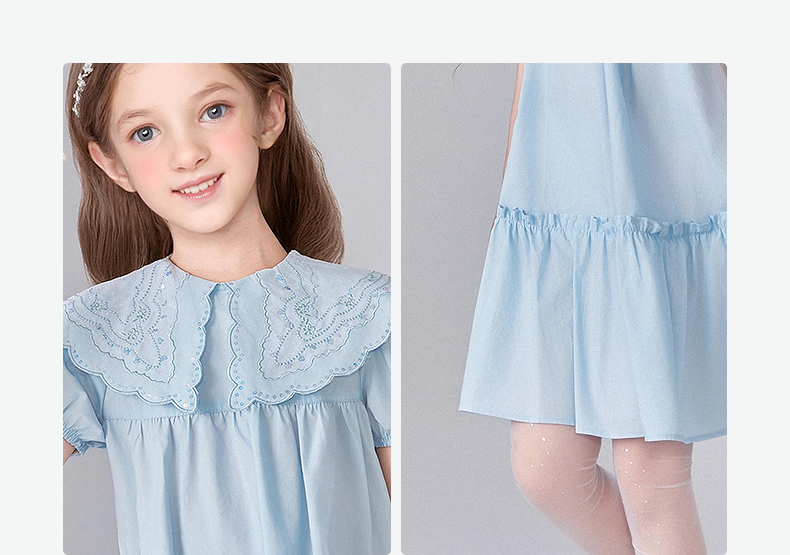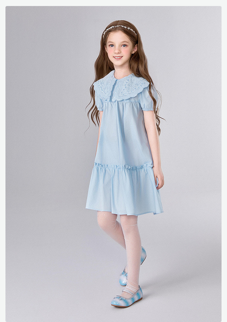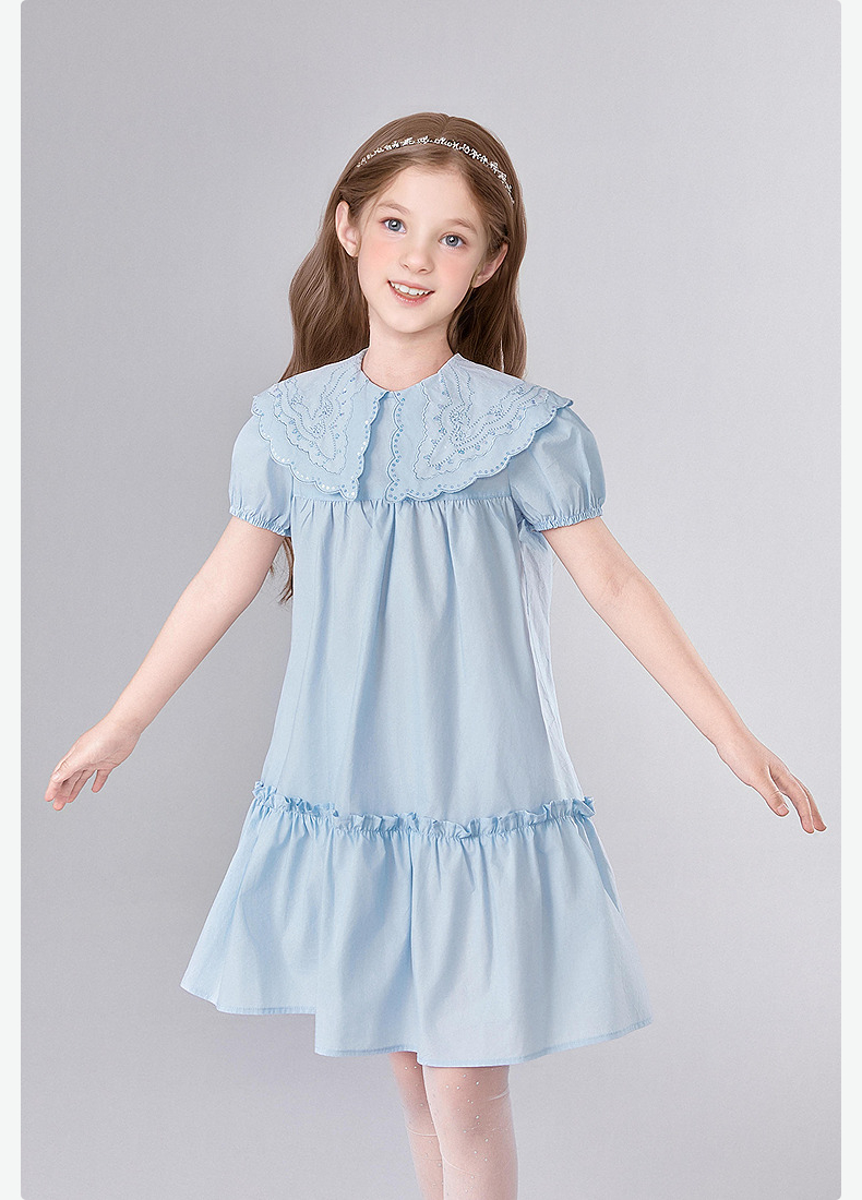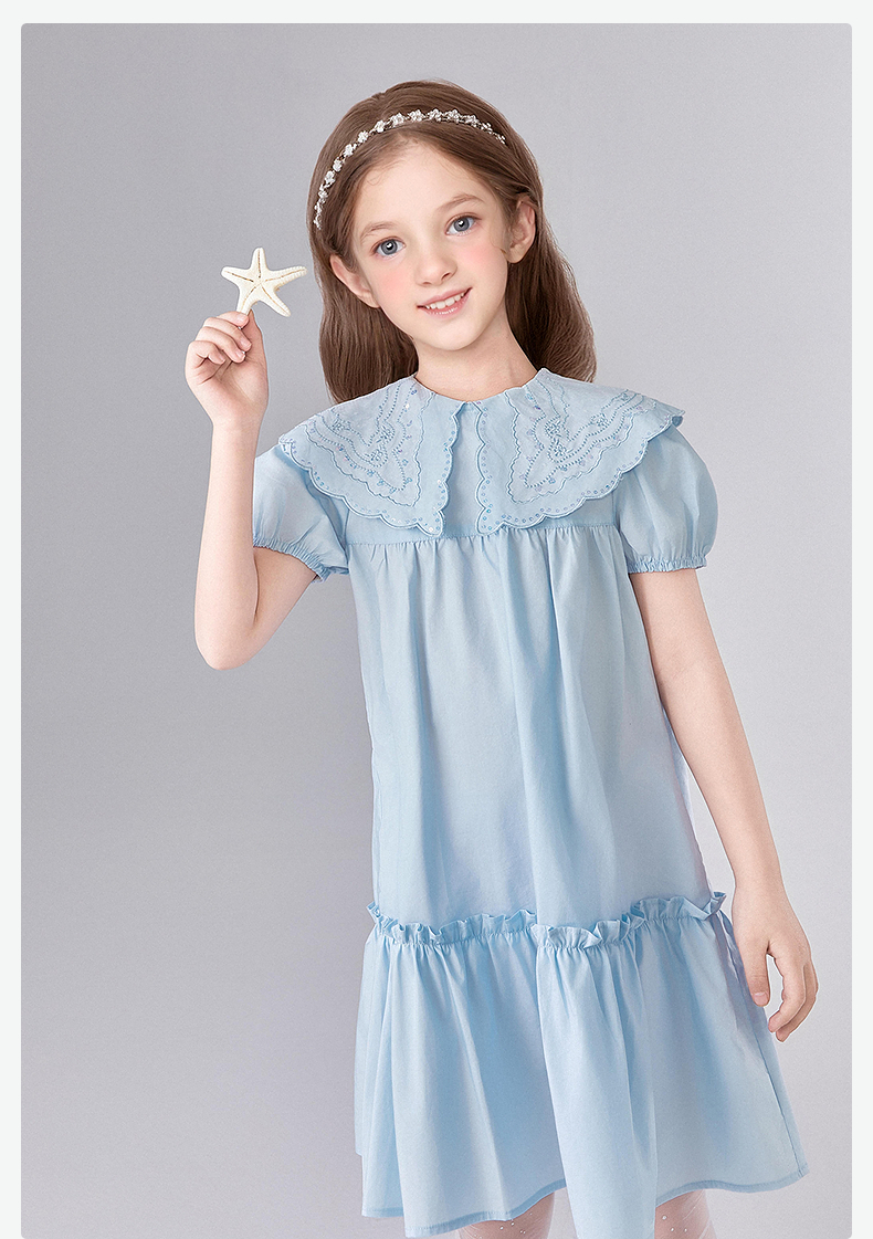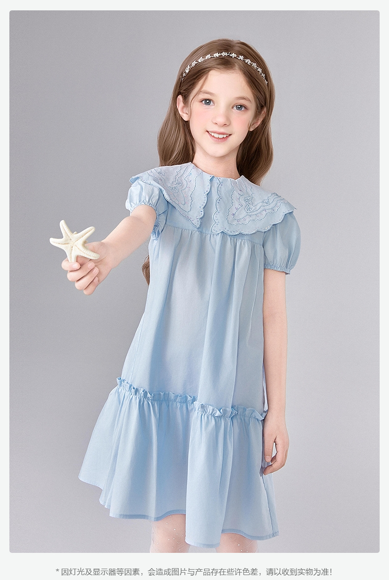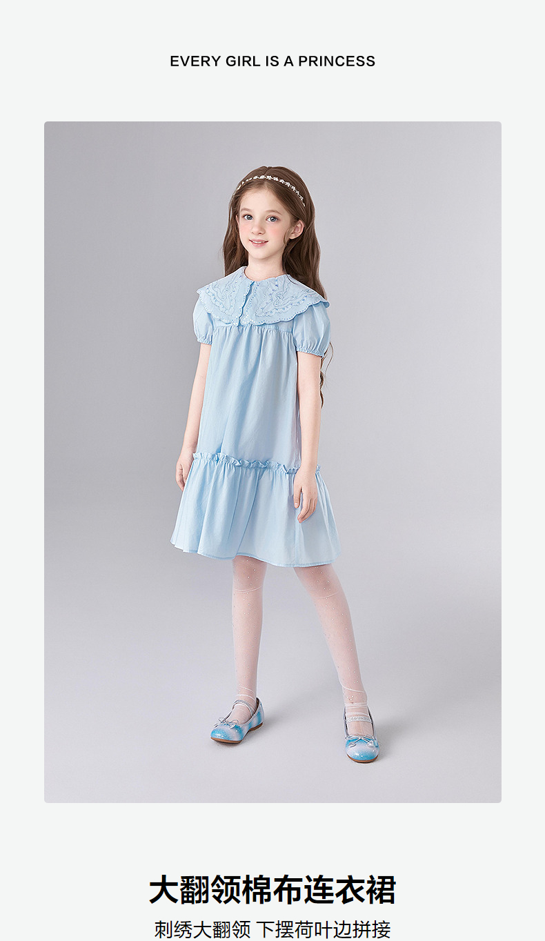 笛莎Deesha 童装女童连衣裙2025夏新款女童大翻领棉布连衣裙
