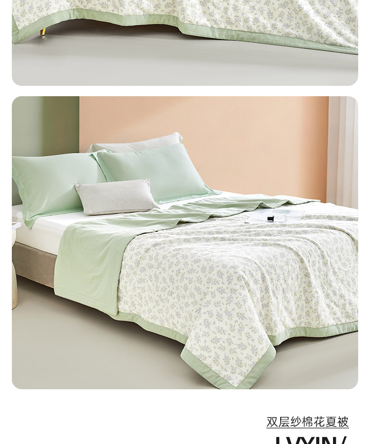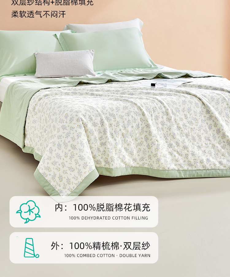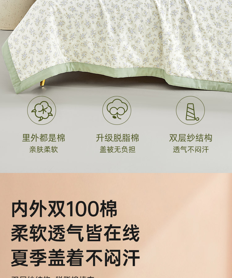 双层纱脱脂棉花夏被(桃霓)