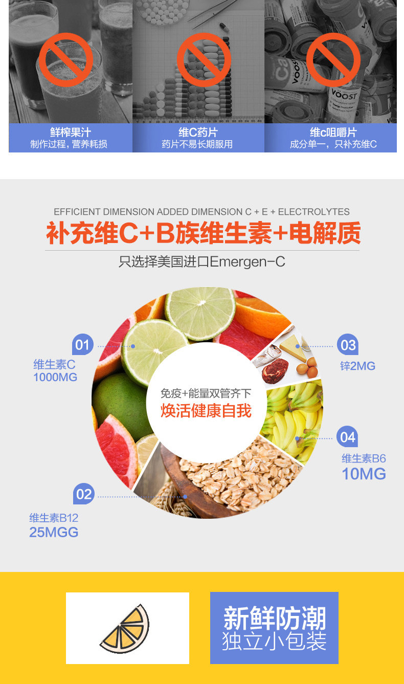 加拿大版Costco Emergen-c VC果味儿冲剂,不但含有1000MG高含量维生素VC,还有32种活性矿物质复合物以及B族维生素,支持健康的新陈代谢功能。