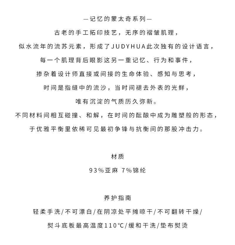 以极简建筑风格,诠释对生活美学之独特理解,JUDYHUA以作品触动您心。更多新款上架,请亲临JUDYHUA STUDIO试穿选购。预约电话:021-62663449,18201881913