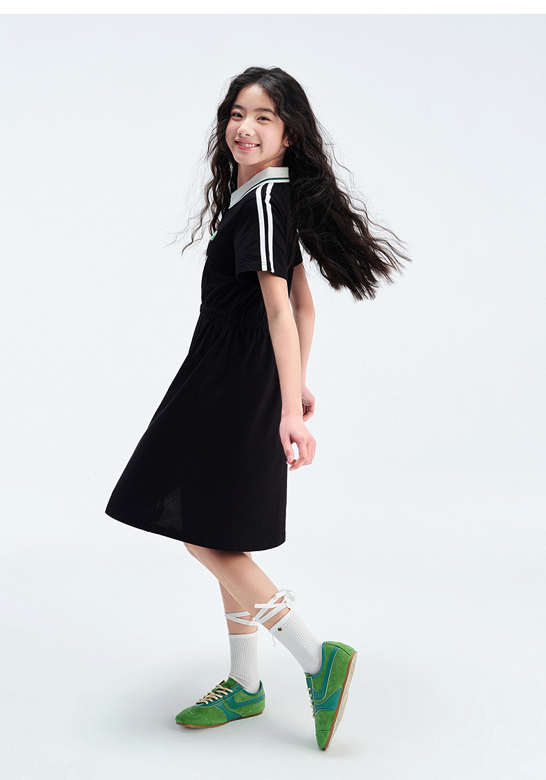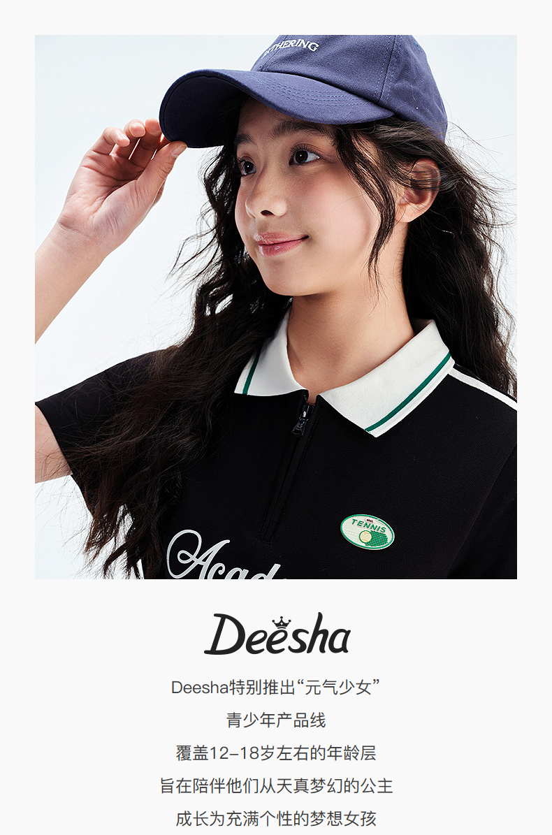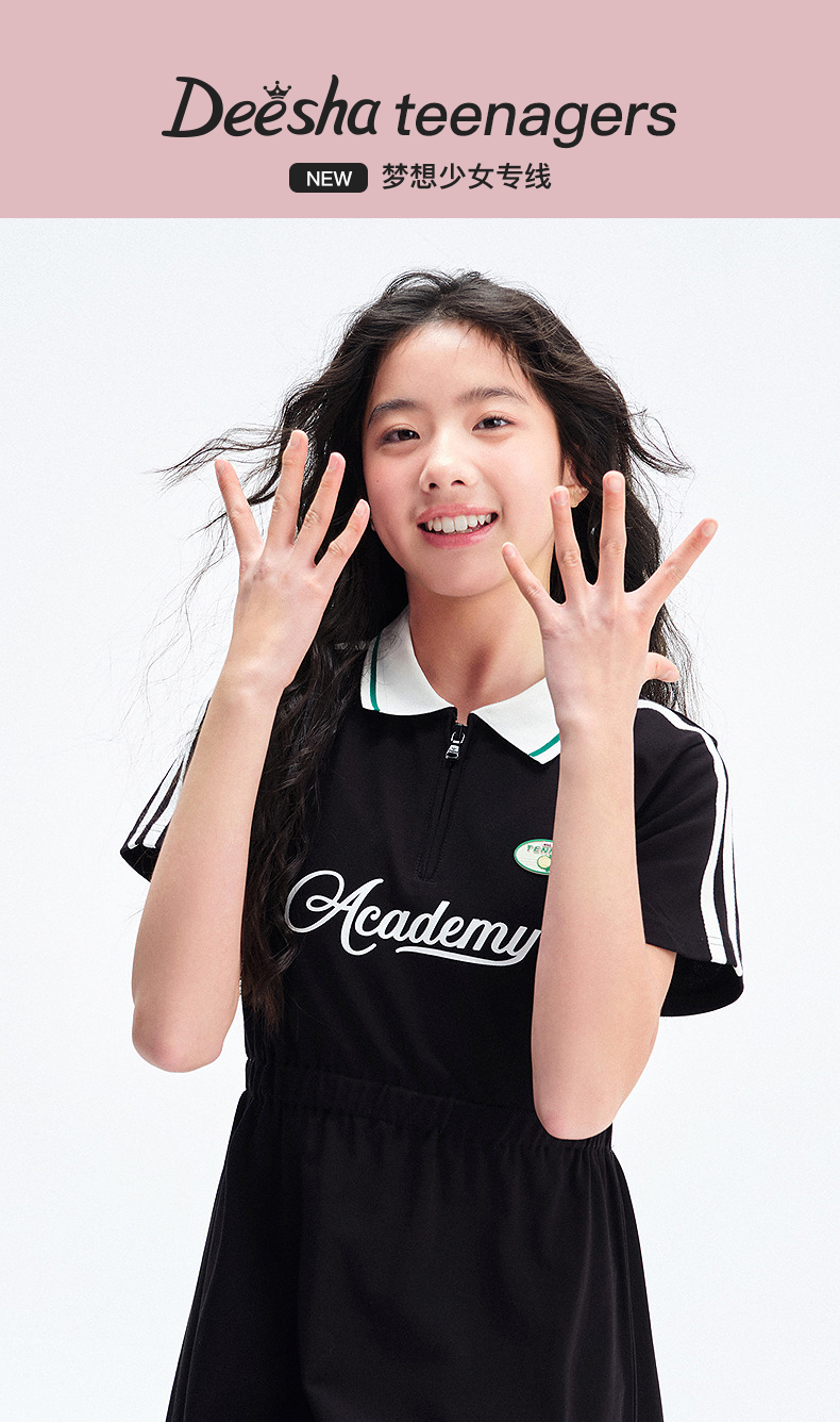 笛莎Deesha青少年女童连衣裙2025夏季女童polo针织连衣裙