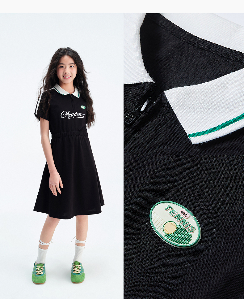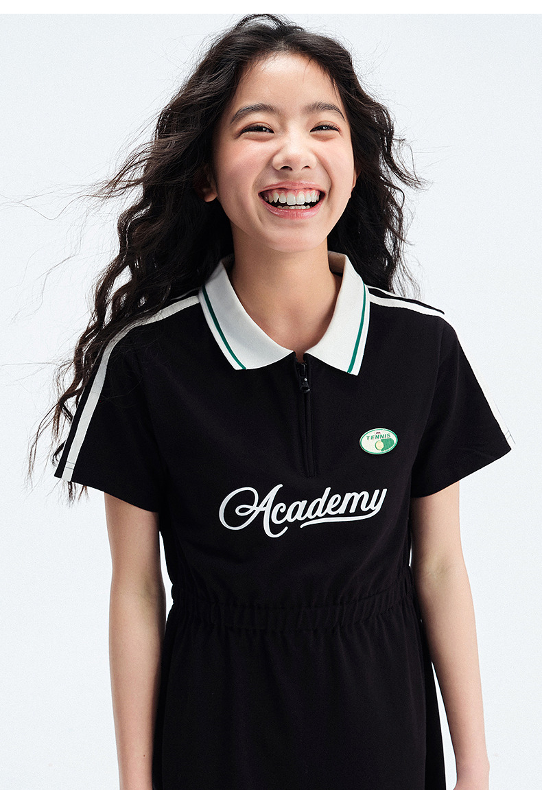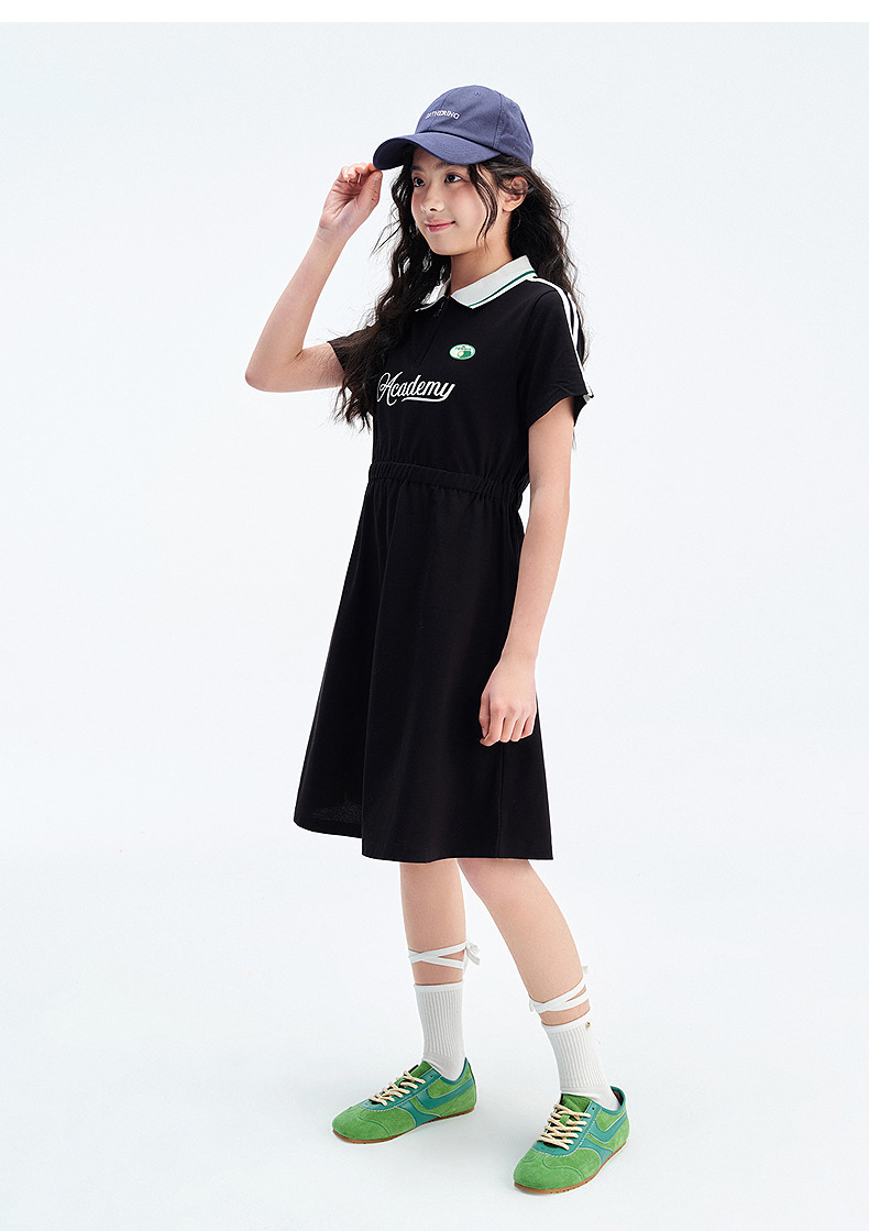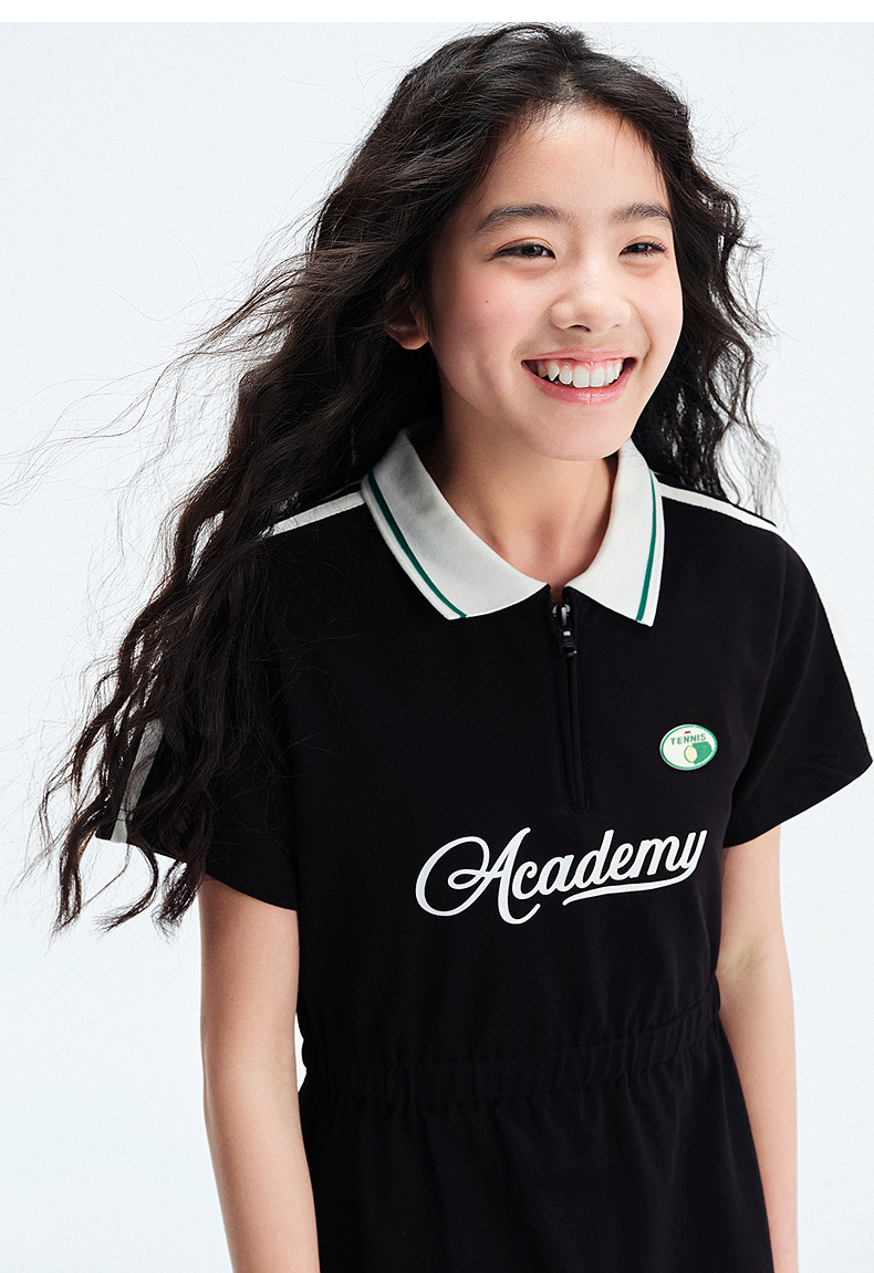 笛莎Deesha青少年女童连衣裙2025夏季女童polo针织连衣裙