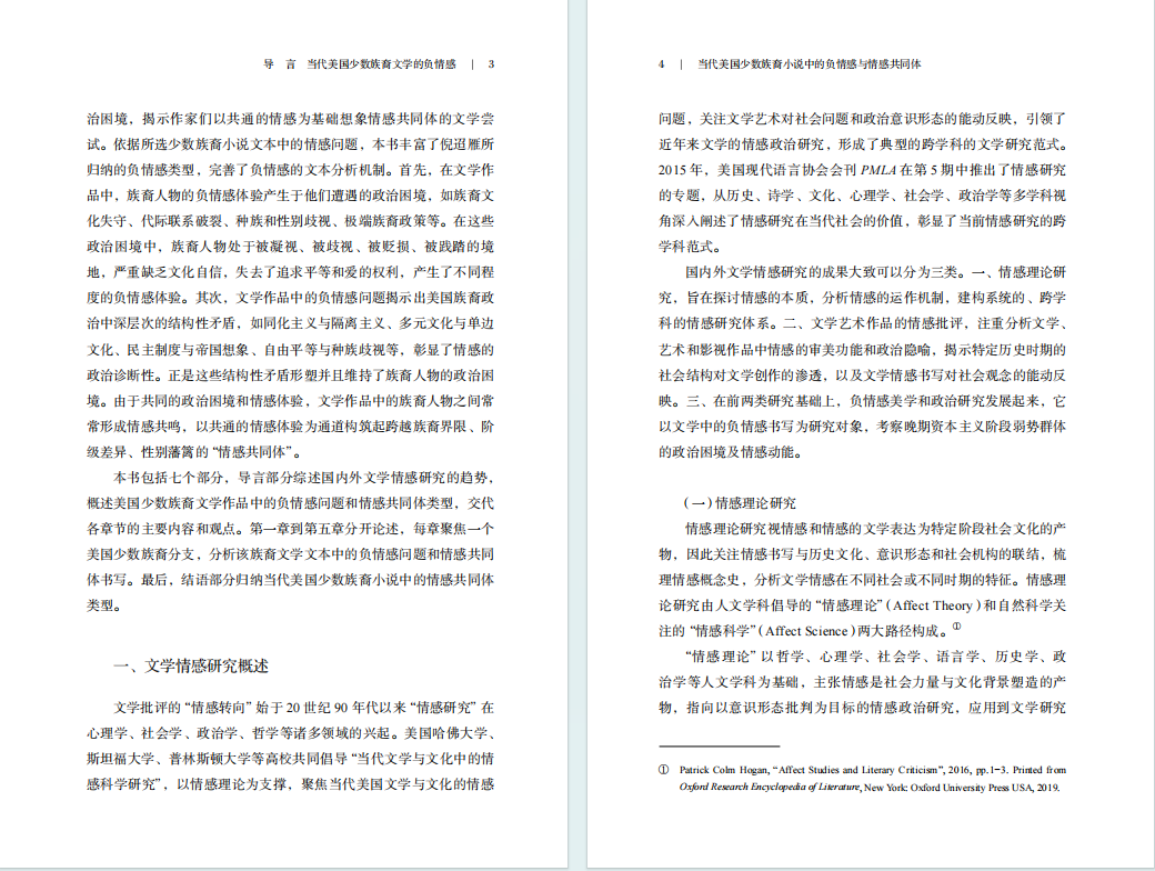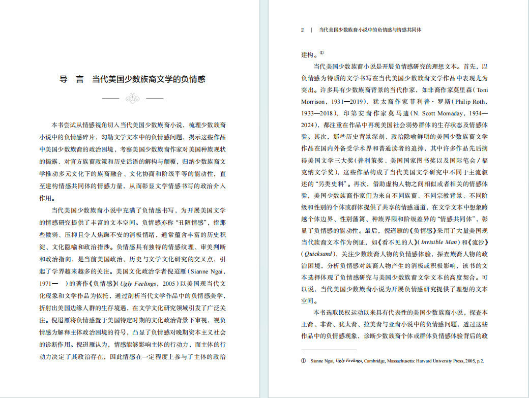 《当代美国少数族裔小说中的负情感与情感共同体》聚焦18部当代美国少数族裔小说中的负情感问题,揭示负情感背后美国少数族裔的政治困境,论述他们以共通的情感体验为纽带,搭建情感共同体的努力。本书梳理了小说中的负情感类型,阐释文学情感的能动性特质,论证负情感在揭示丑陋现实、解构官方话语的同时,有效推动了美国少数族裔内部及族裔间共情共生的情感共同体的建构。