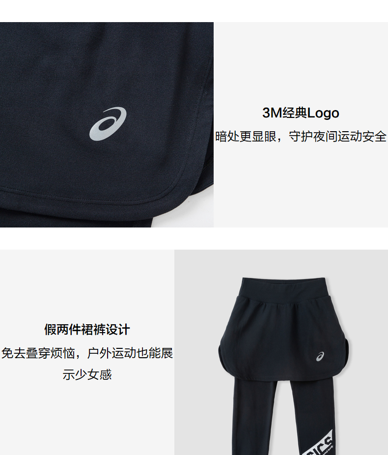 asics/亚瑟士童装24年春季新女童长裤云感高弹百搭运动假两件裙裤