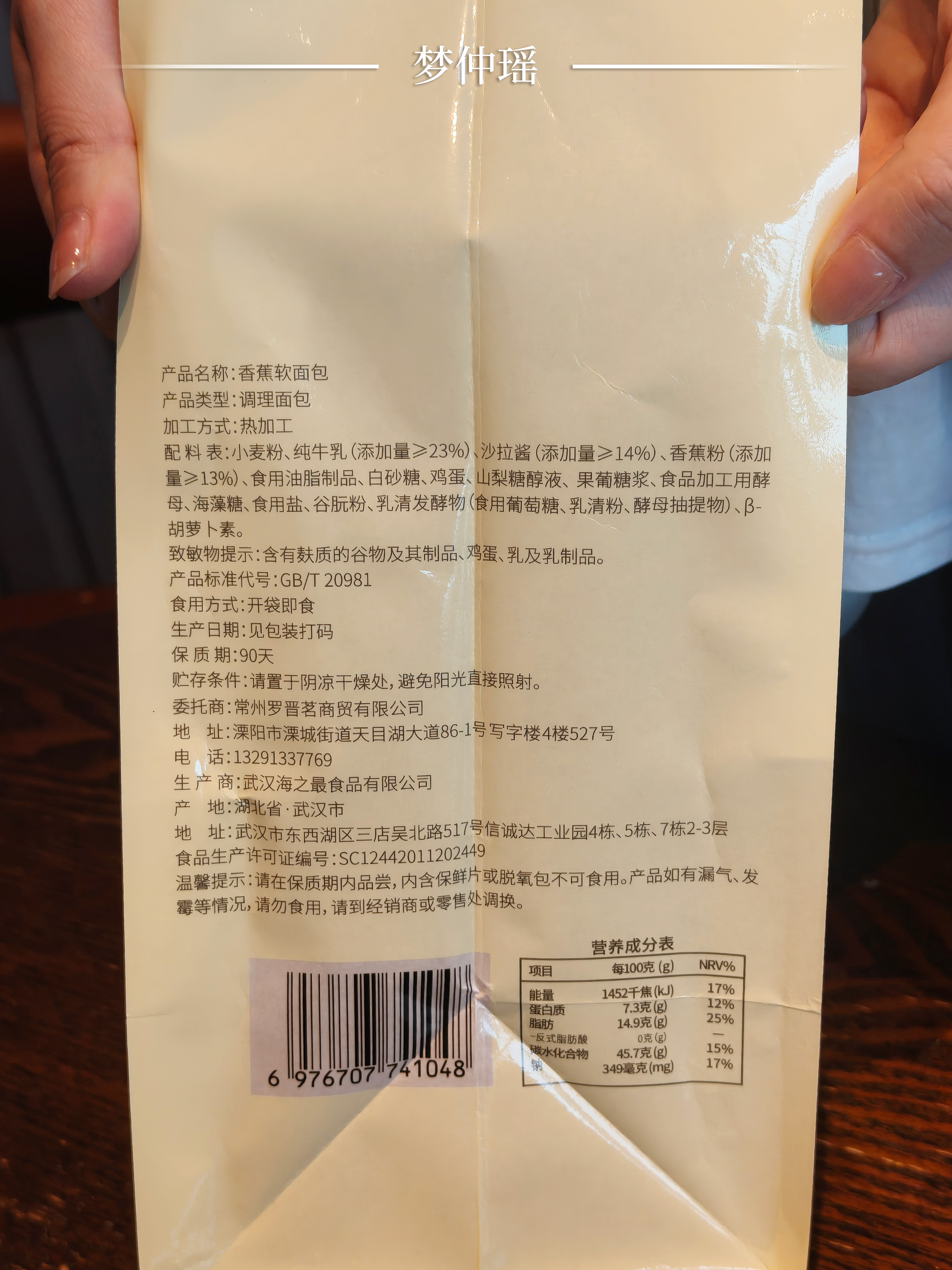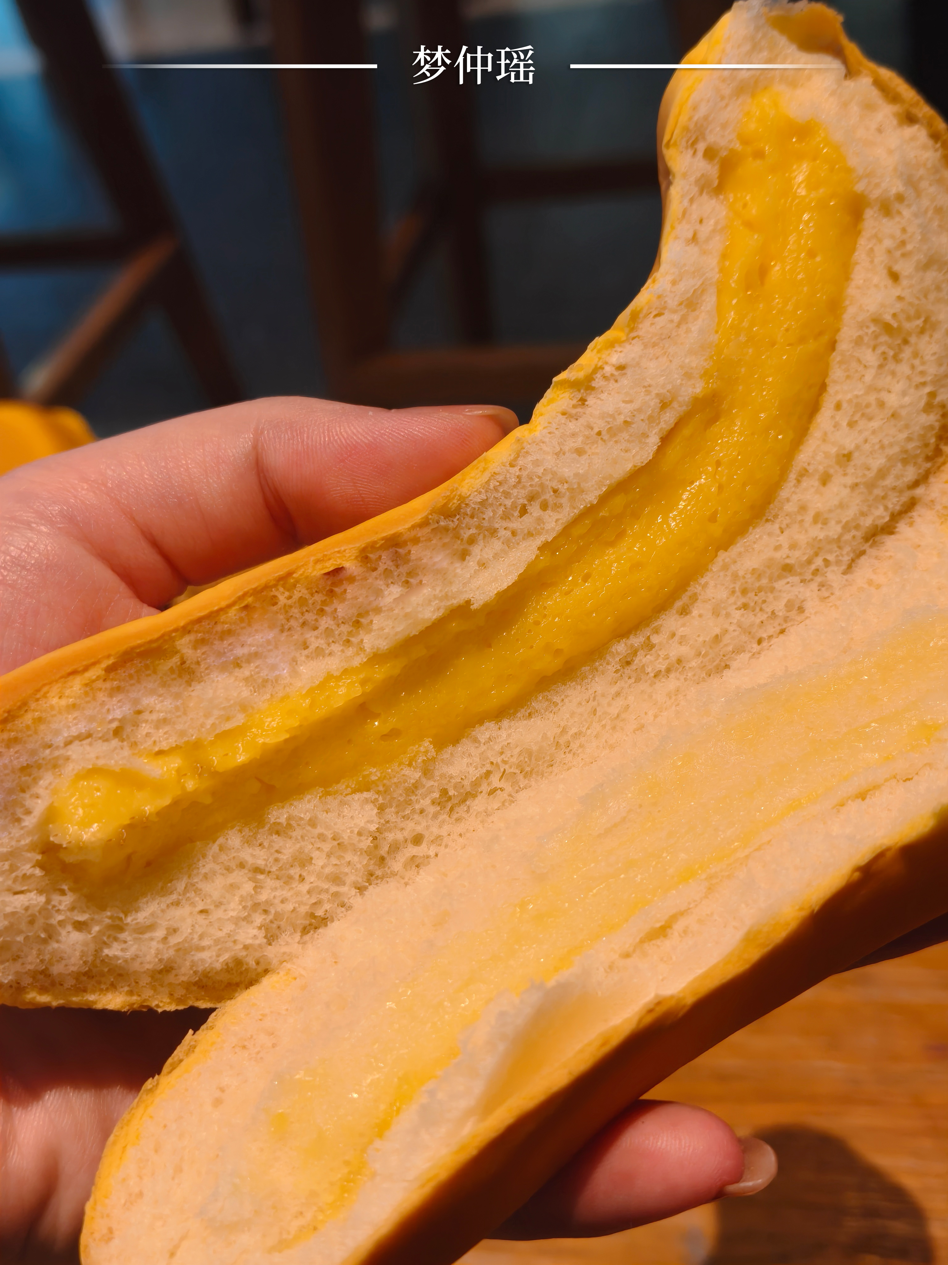 配料表干净,香蕉味外皮+q软面包芯+沙拉酱夹心,三重口感😋
