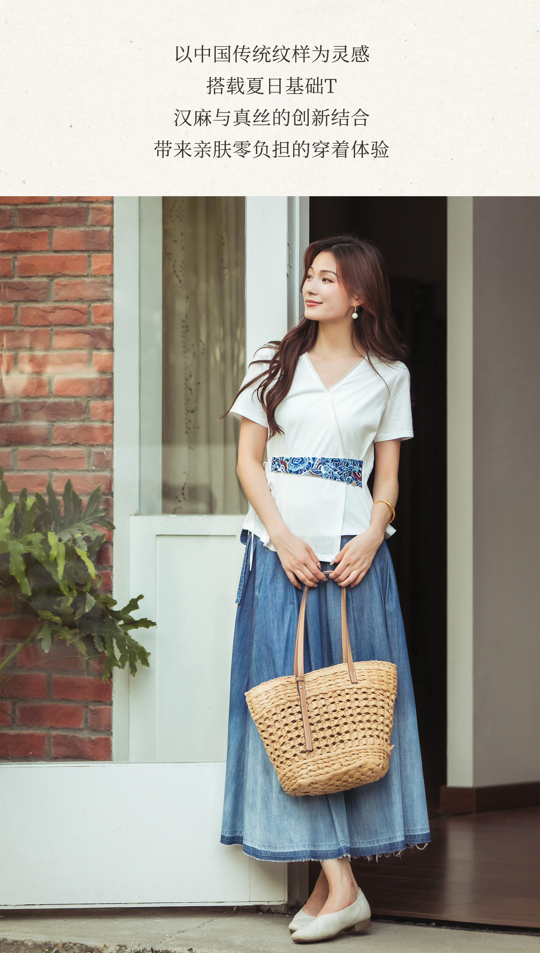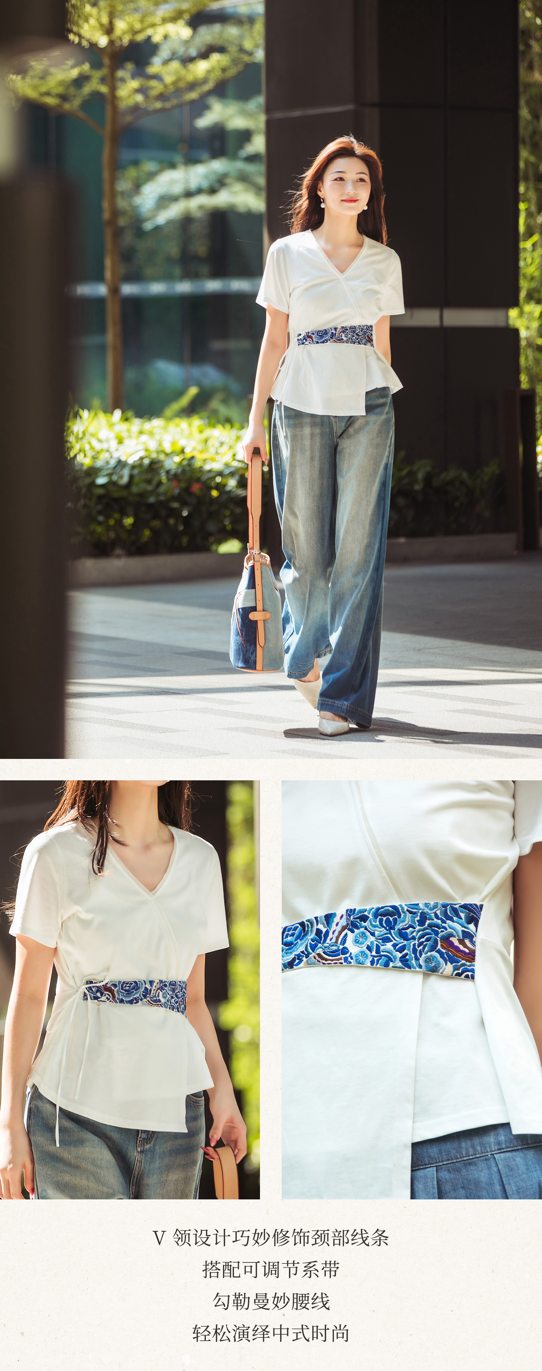 【林栖设计小店】【林栖推荐】2025春夏新品白色三蓝绣花短袖衬衣T恤女设计感小众N1952510