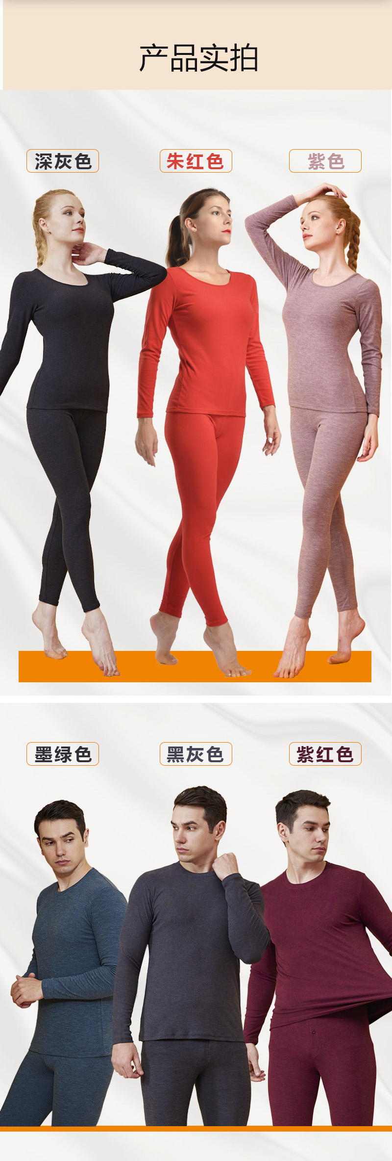 女款深灰色、朱红色、淡紫色,共三套