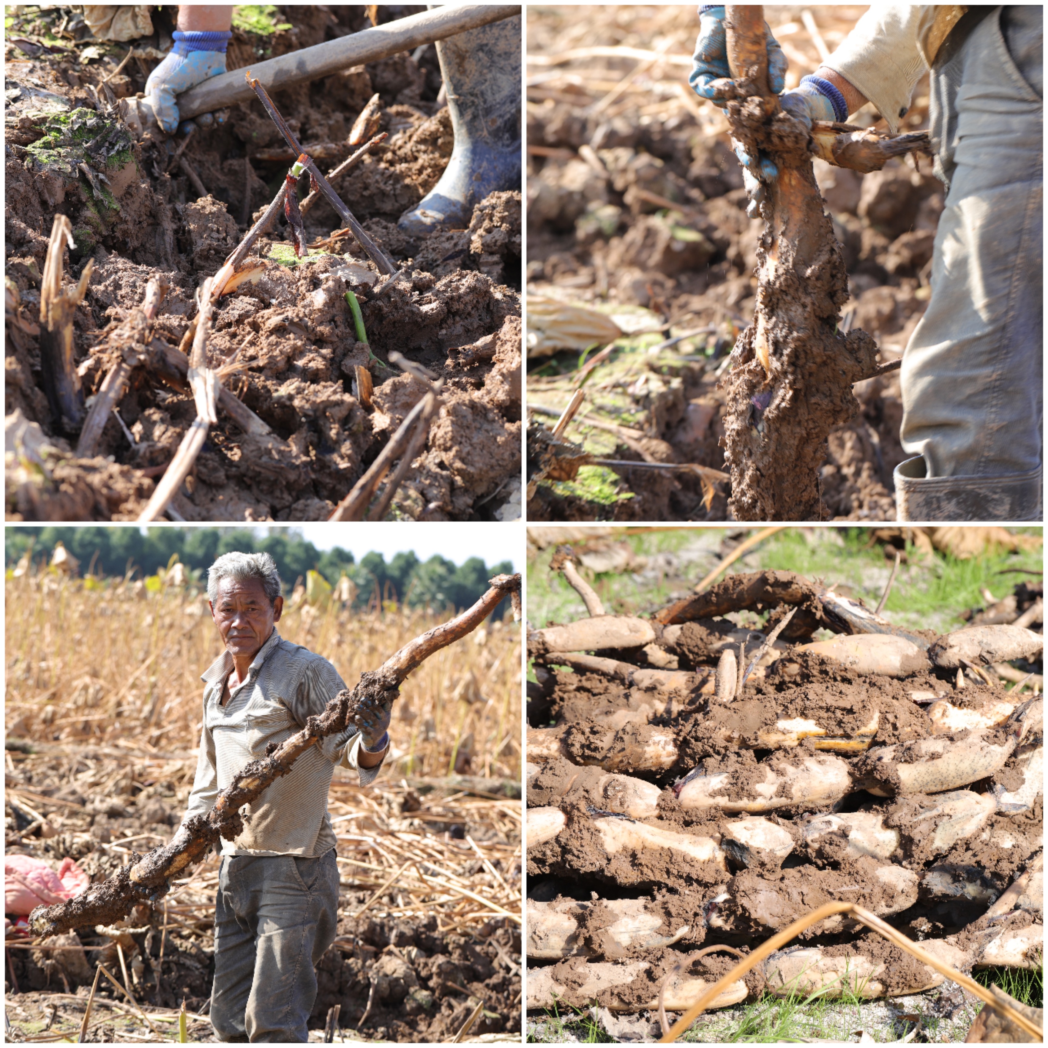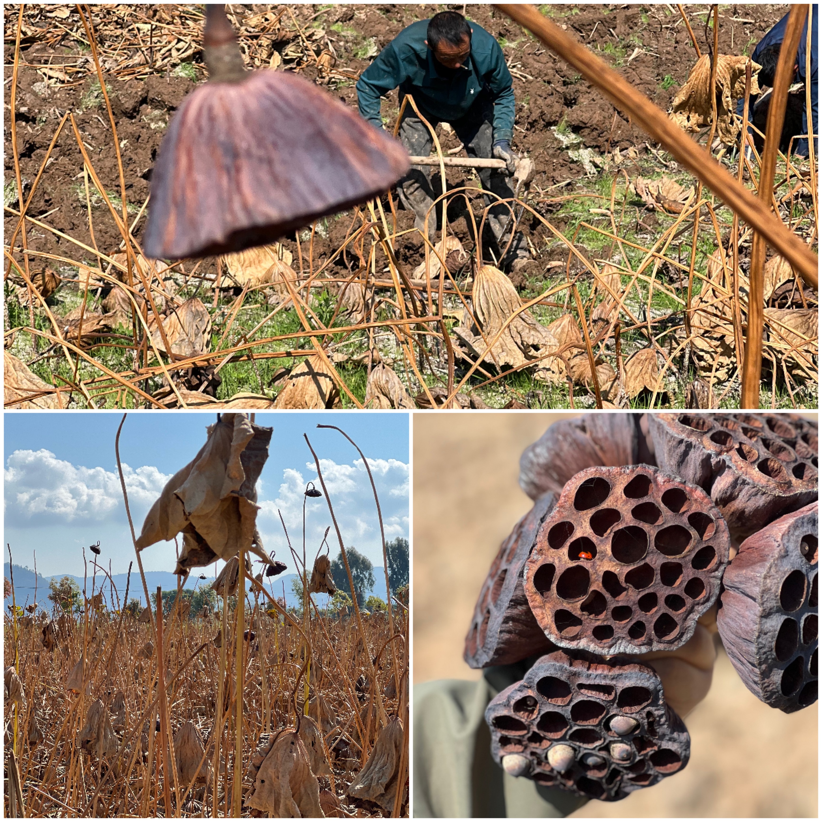 每年的10-12月便是挖藕的季节,澄江县的采藕方式和别的产区还不一样,为了保证不挖断藕,让藕的营养不流失,需先将藕田抽干,再根据莲蓬和藕径挖藕。