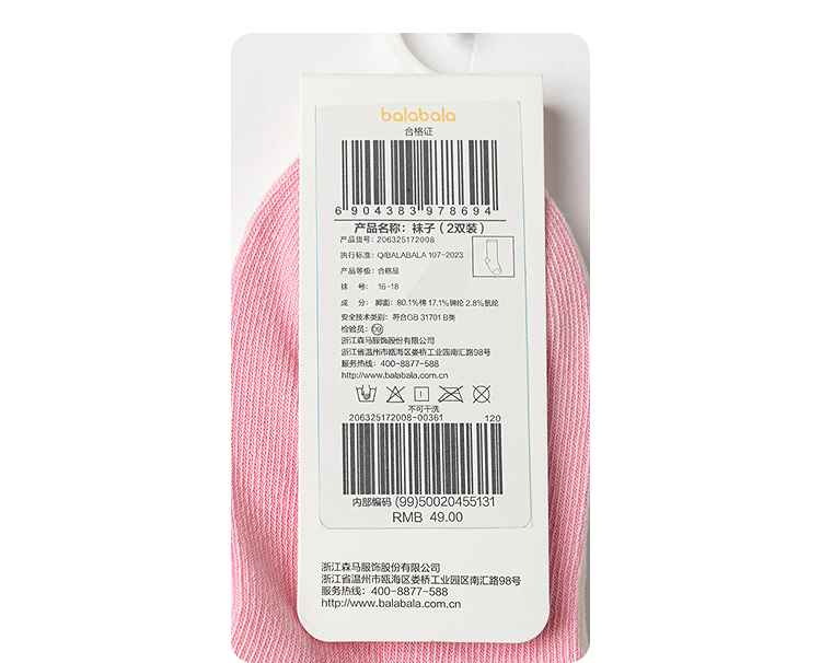 巴拉巴拉女童袜子秋季新品儿童中筒袜软弹趣味两双装