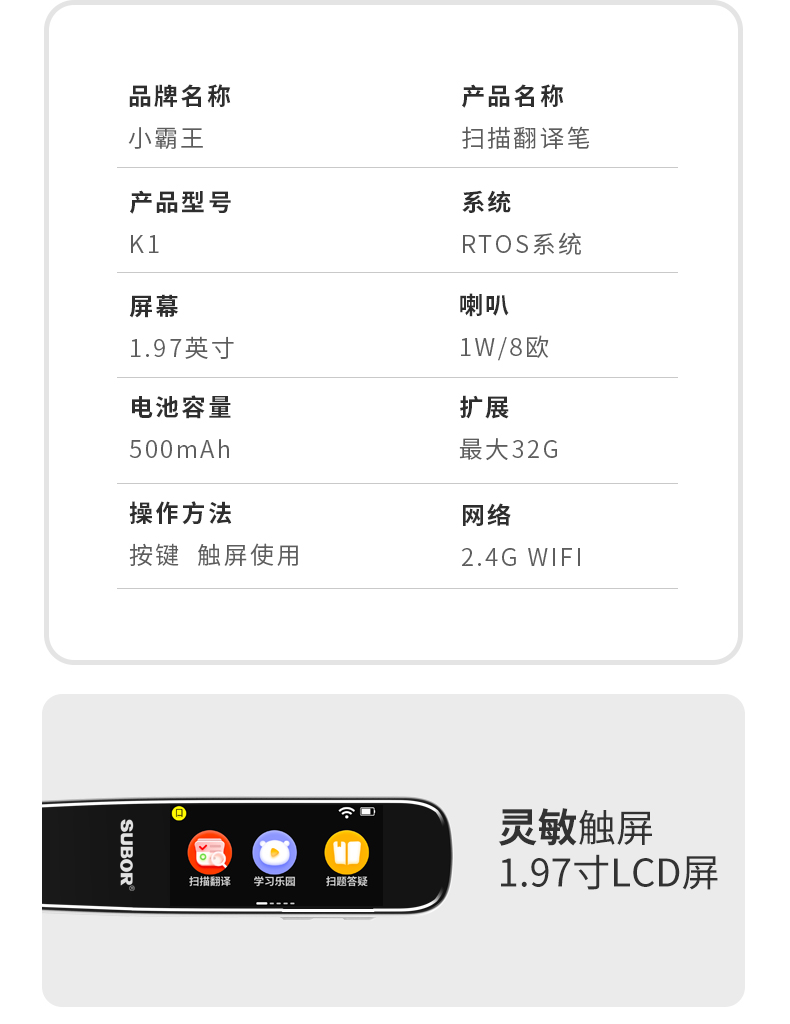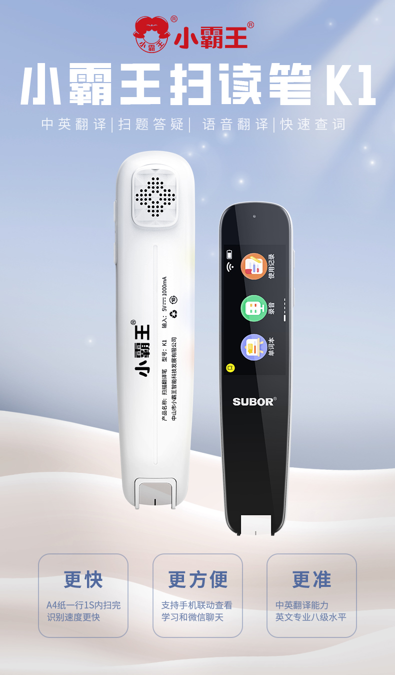 【 送原装保护套】小霸王全科扫读笔K1 不限书籍 扫读翻译 英语点读笔 小学初中高中通用~