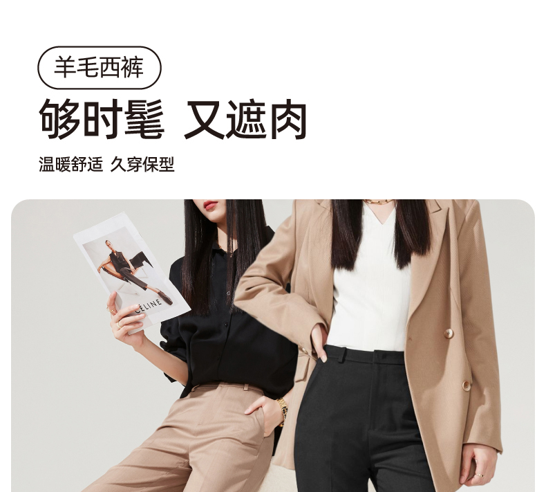 逸阳轻奢羊毛西装裤女2023秋冬新款直筒烟管毛呢显瘦版西裤子4888
