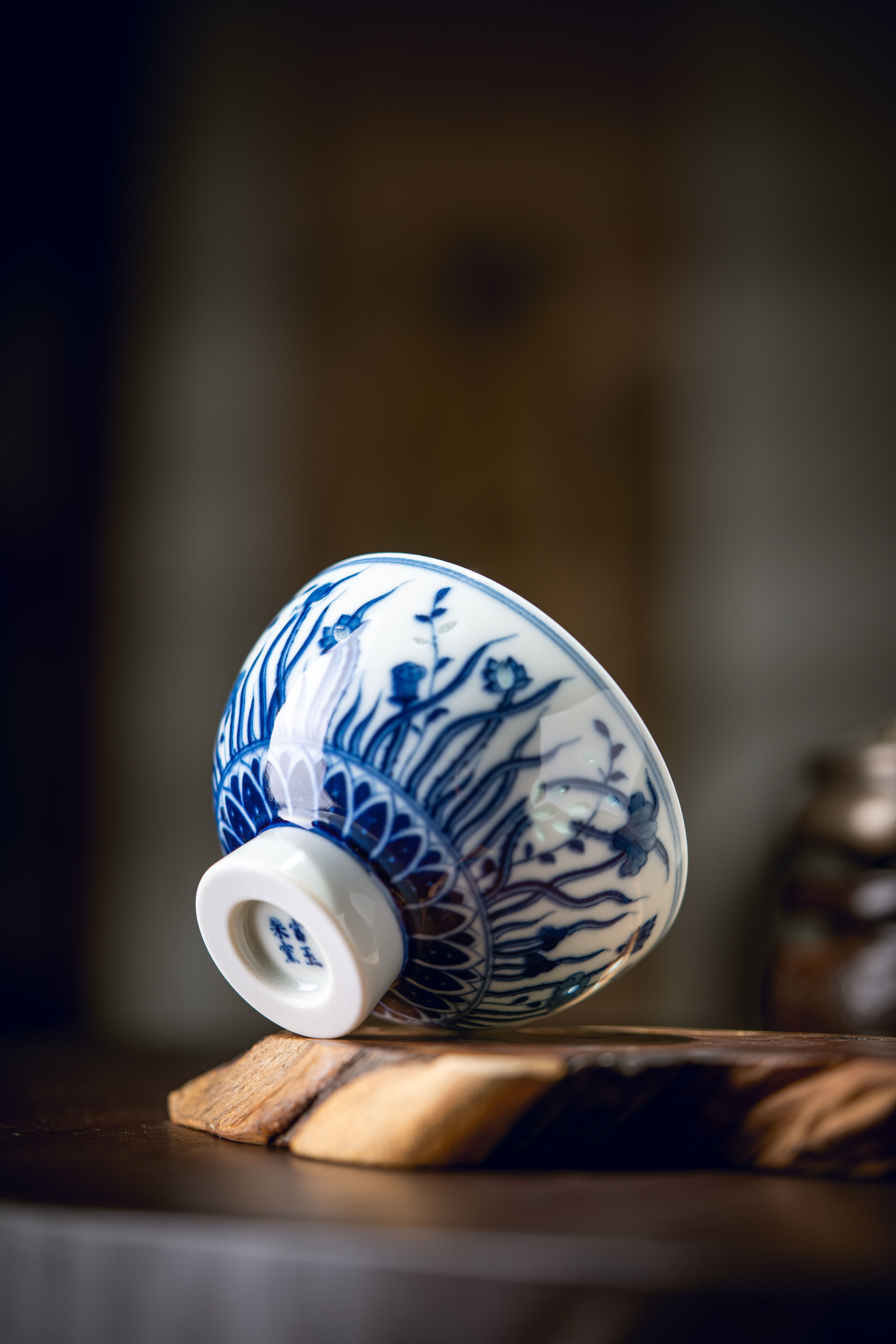 富玉 景德镇陶瓷釉下山水江南韵茶漏杯大容量水杯办公室泡茶茶杯