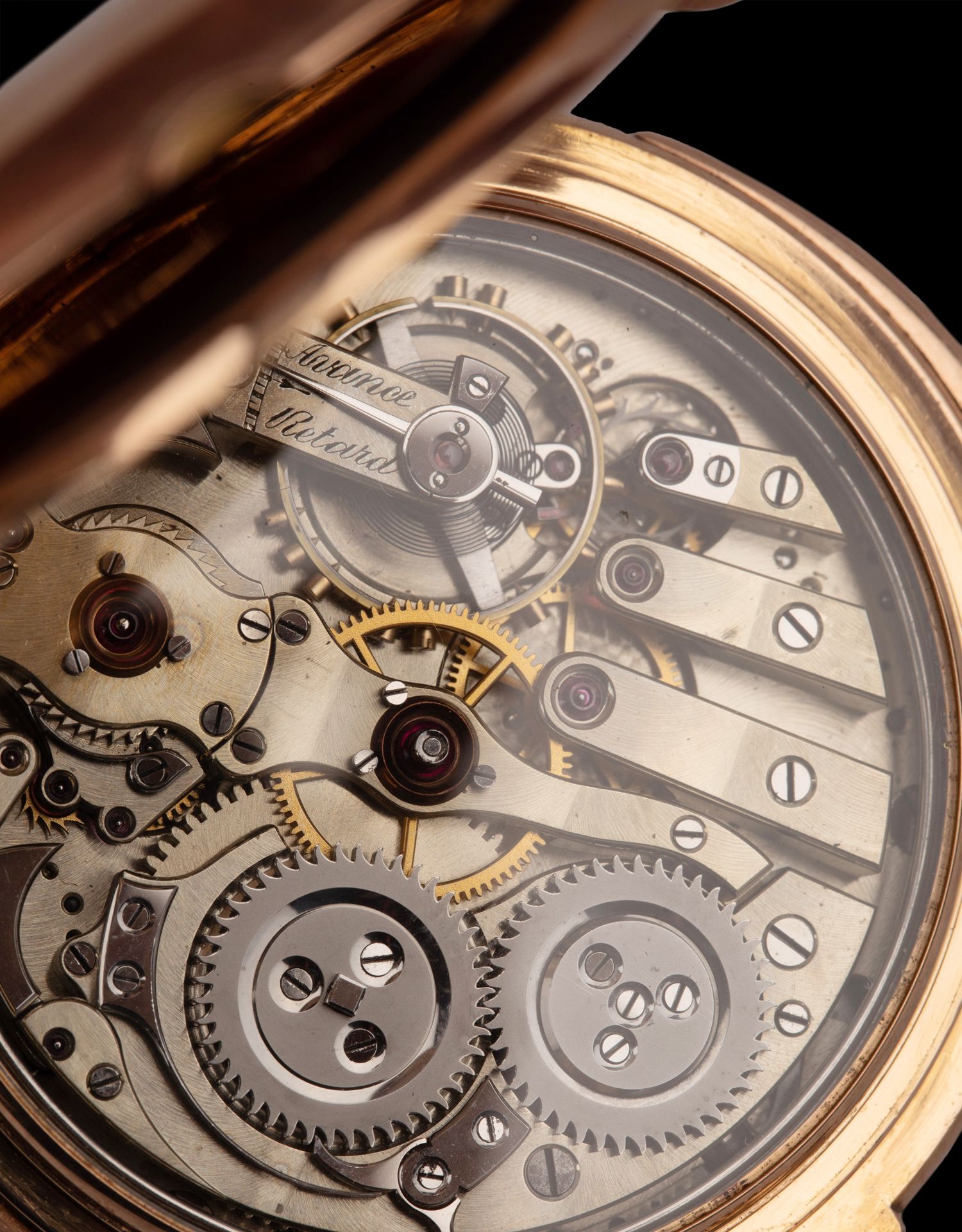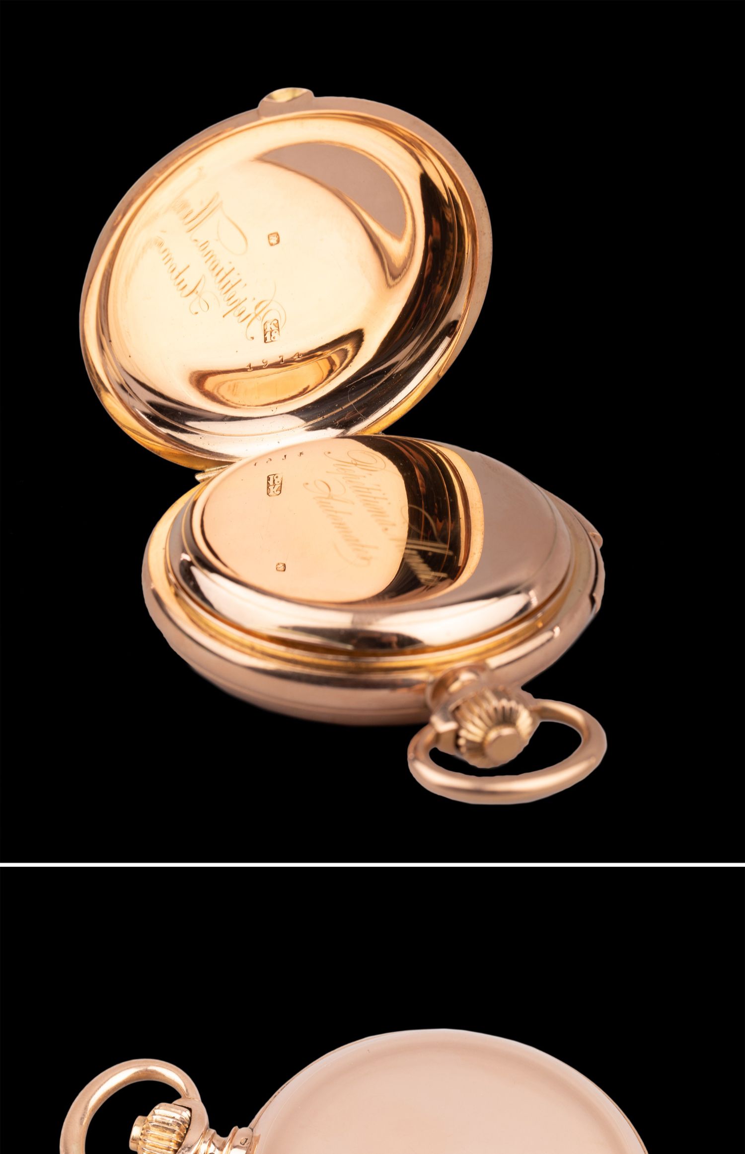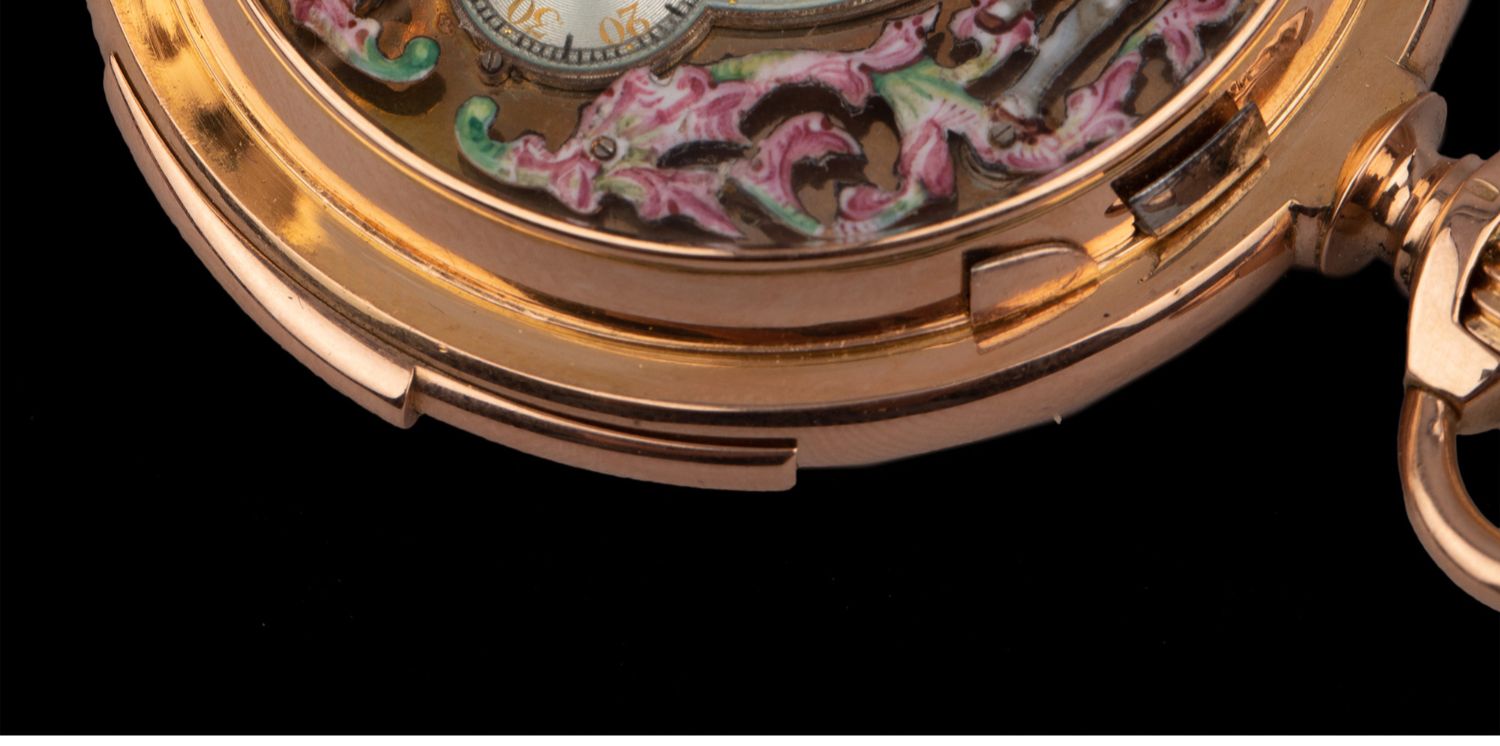 独角鹿西洋古董瑞士18K黄金白色玑镂珐琅活动人偶三问报时怀表