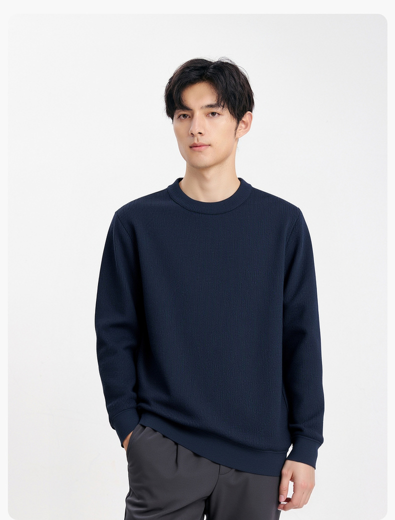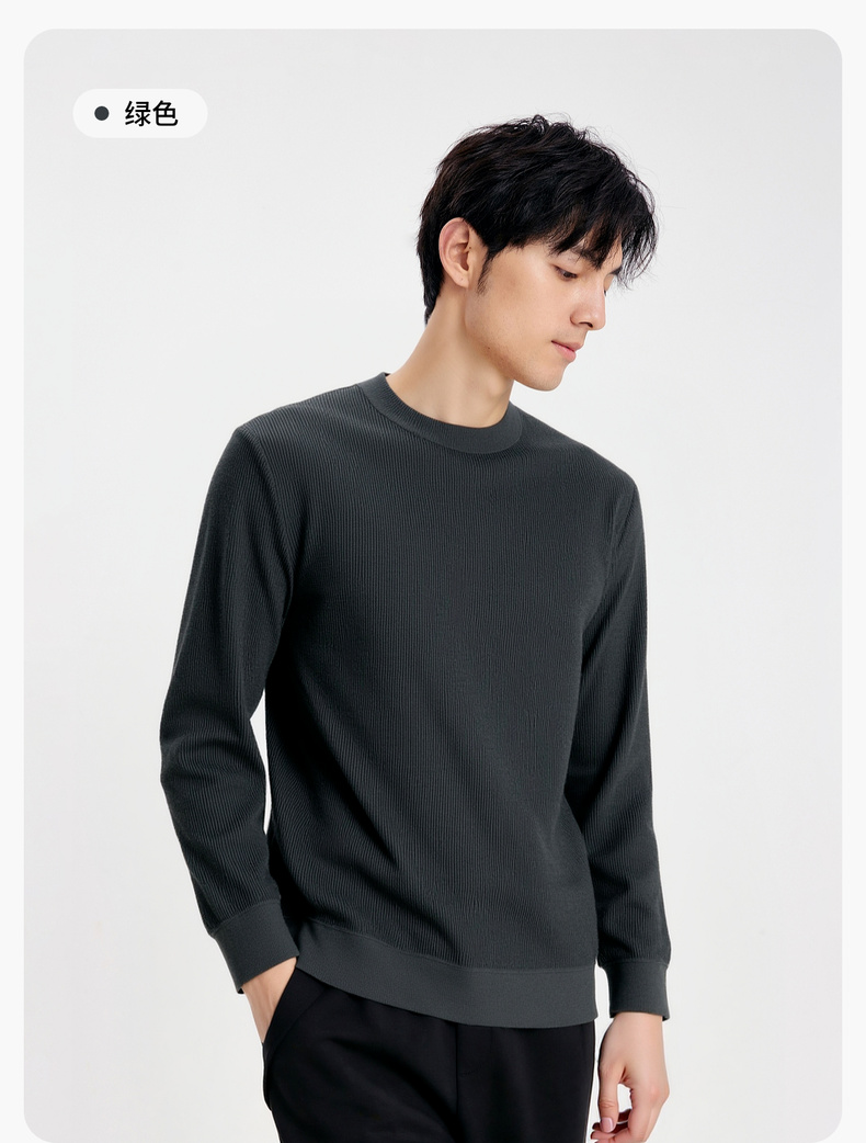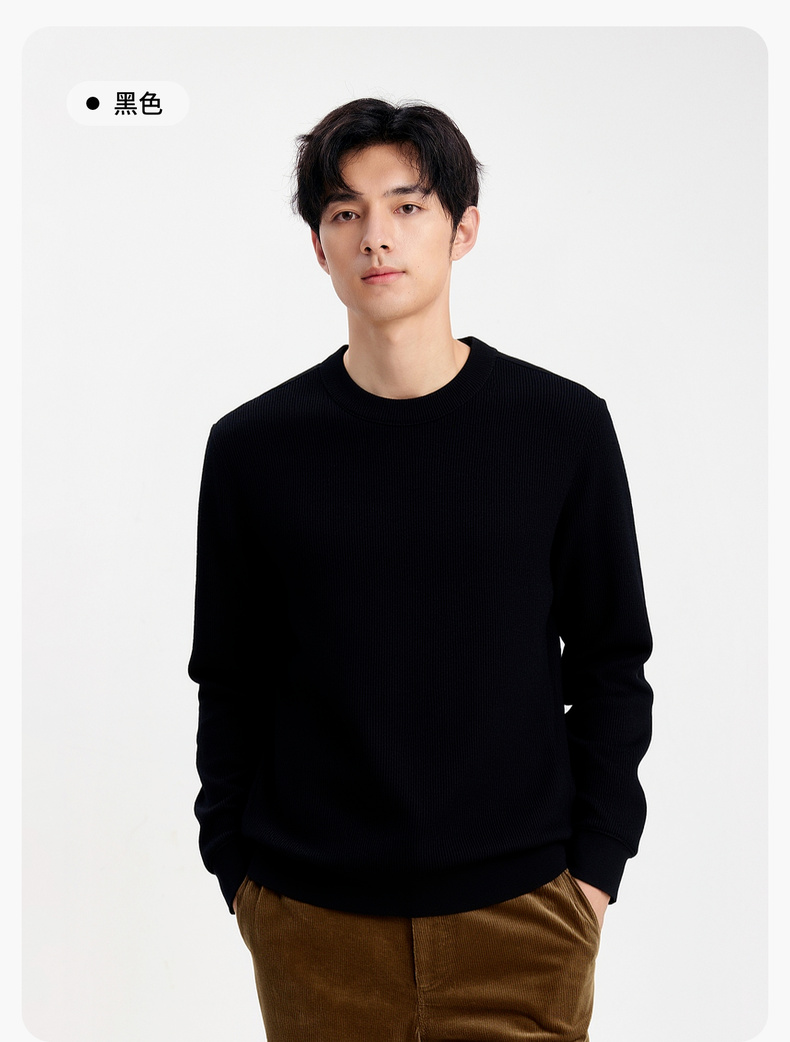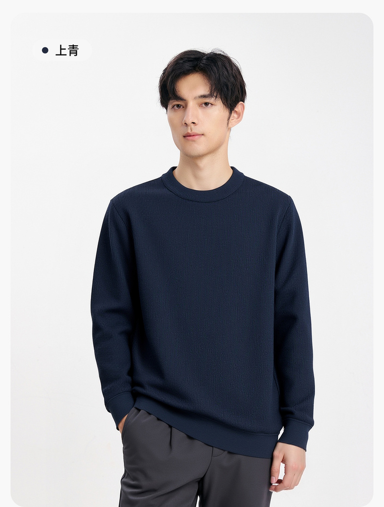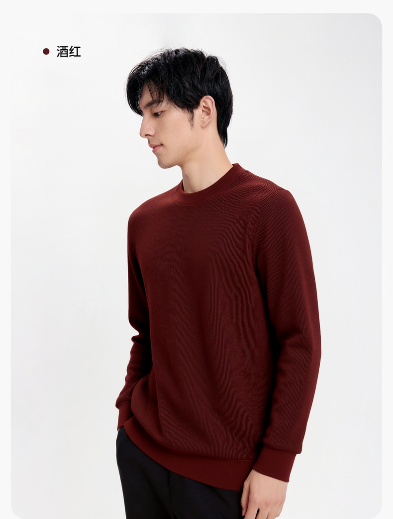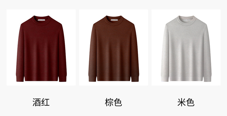 【含绵羊毛】圣得西男士2025秋季新款休闲百搭素雅绒感圆领毛衣