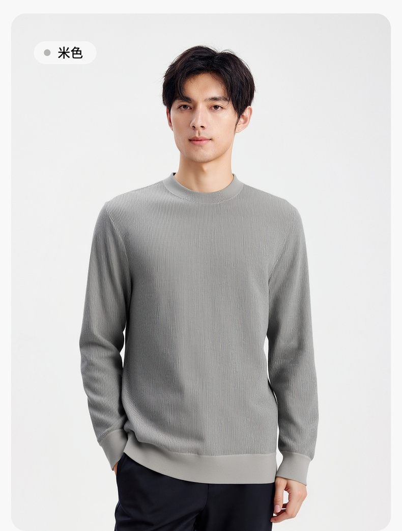 【含桑蚕丝】圣得西男士时尚百搭半高拉链领T恤2025秋季新款亲肤舒适长袖