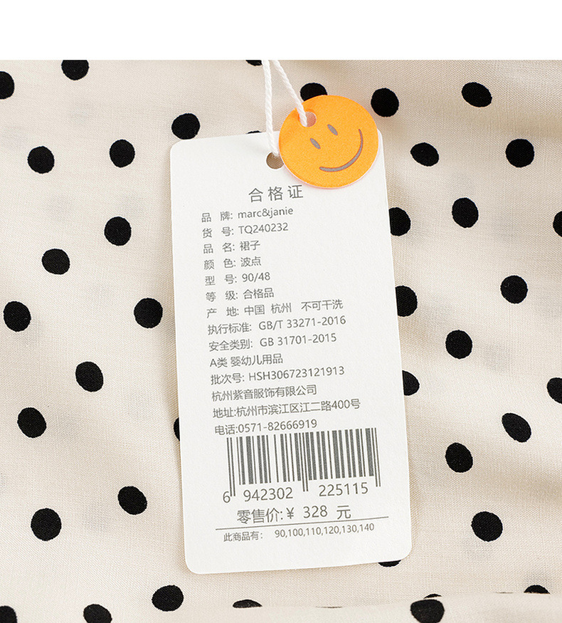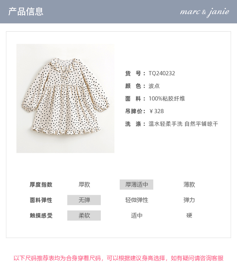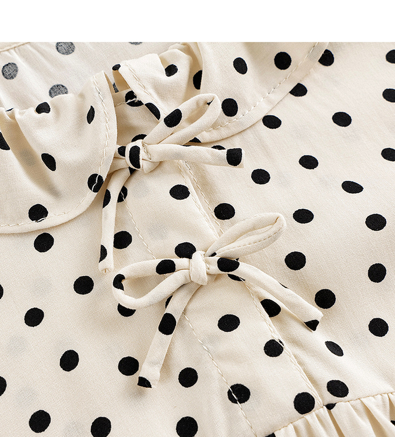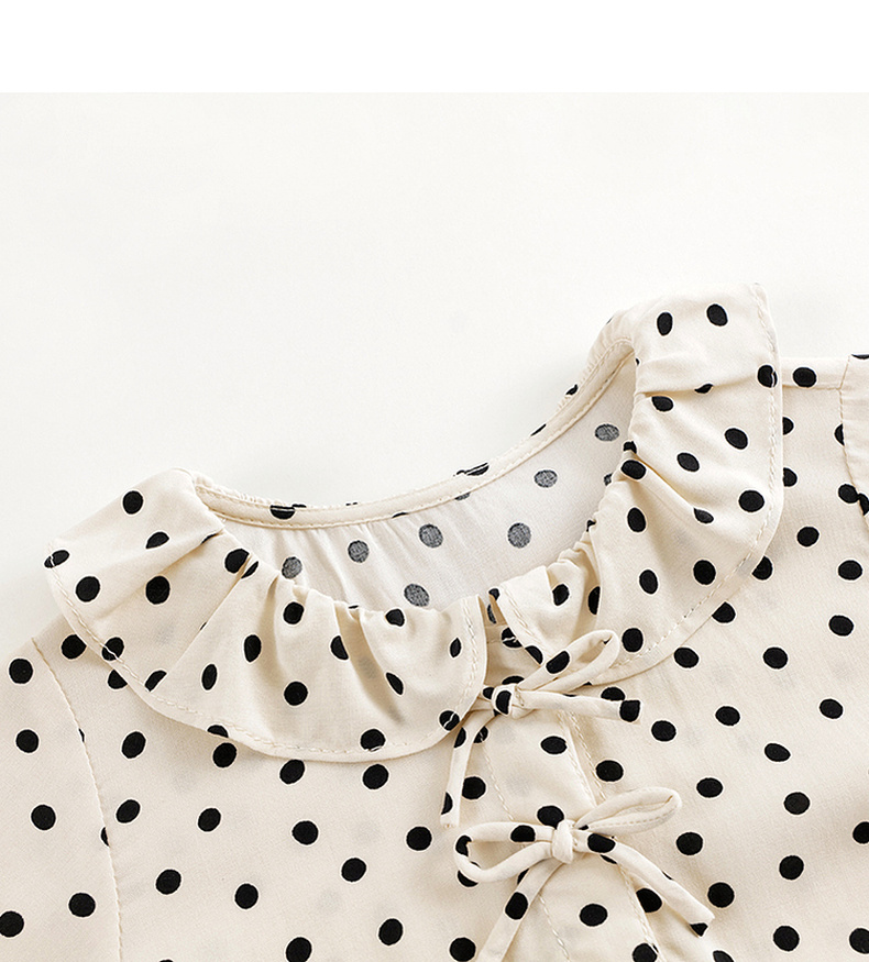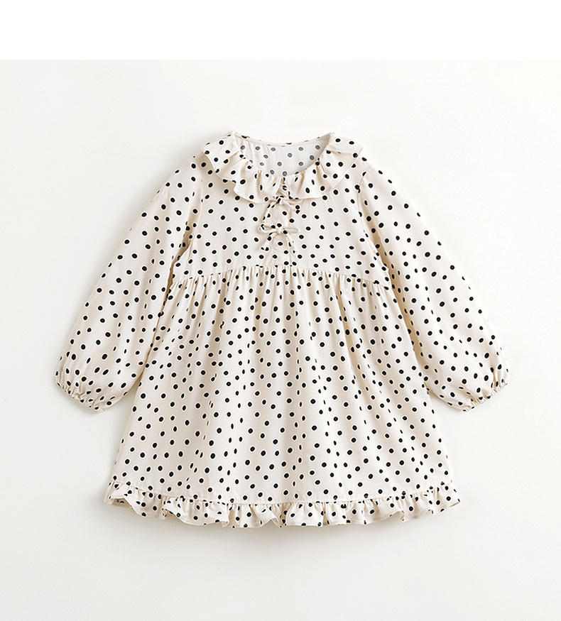 马克珍妮女童花边领蝴蝶结波点连衣裙儿童裙子2024春装新款240232