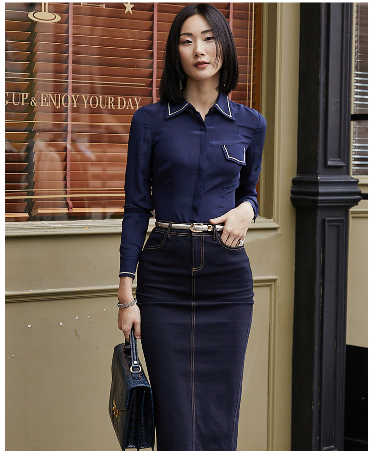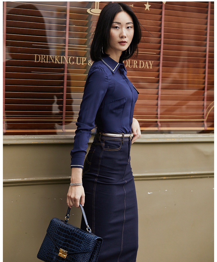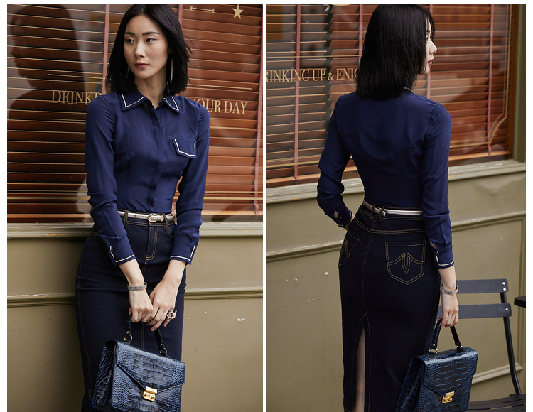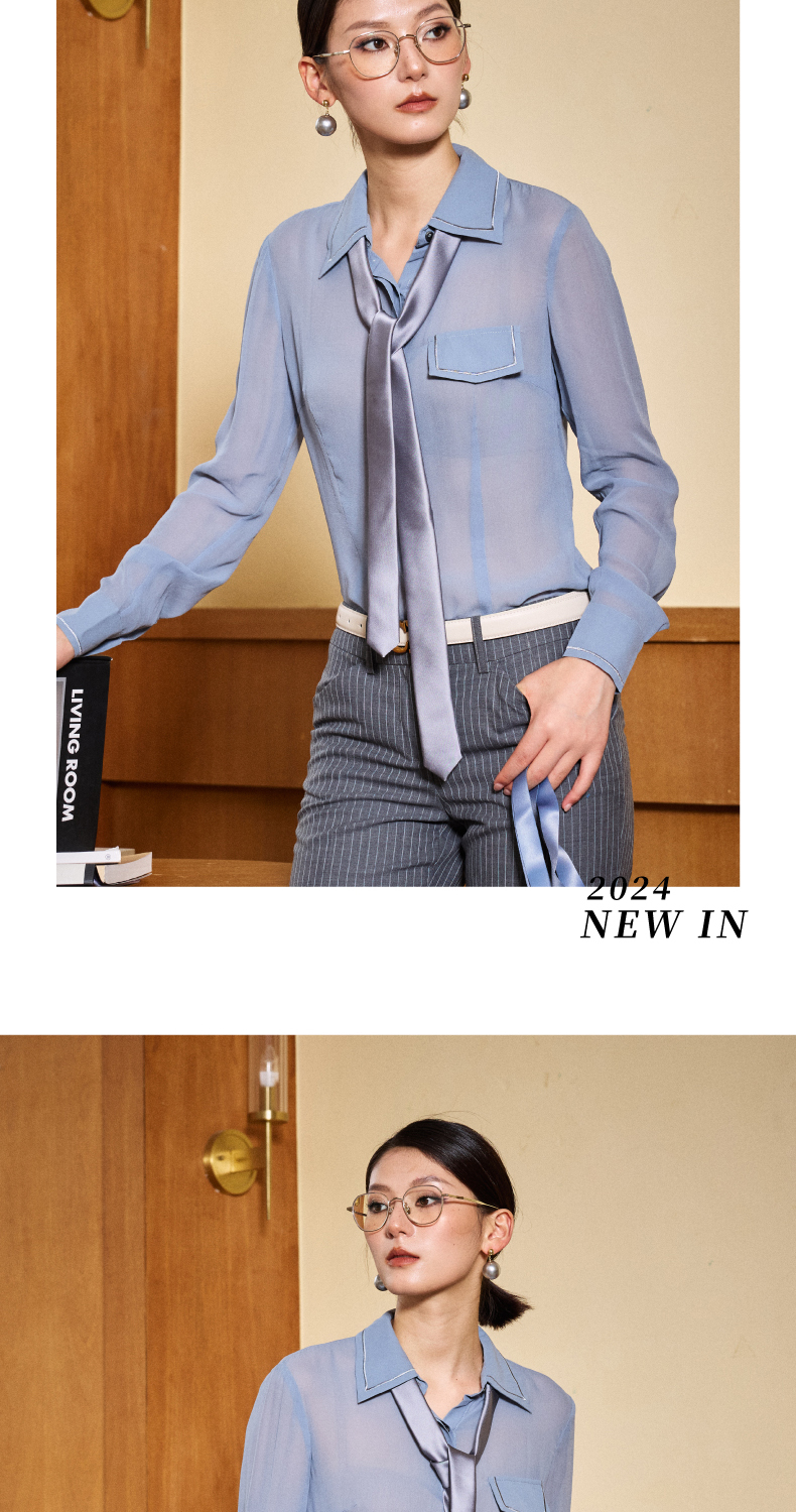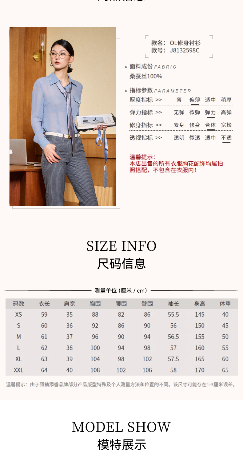 J8132598B颈袖添香真丝衬衫女士装气质OL正装上衣修身衬衣J8132598B(四季可穿)
