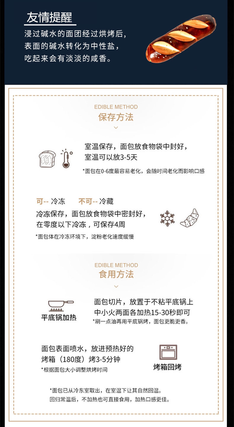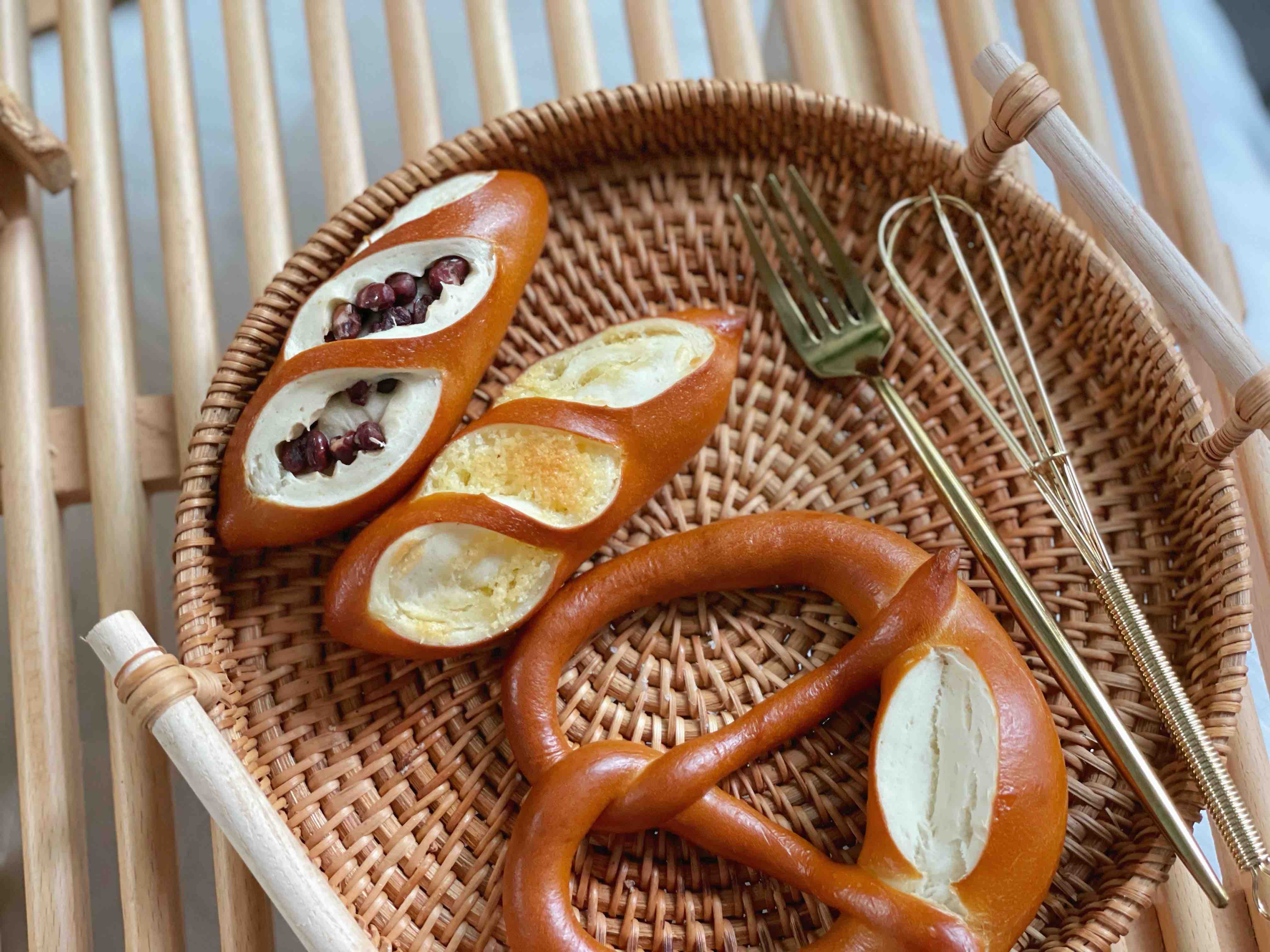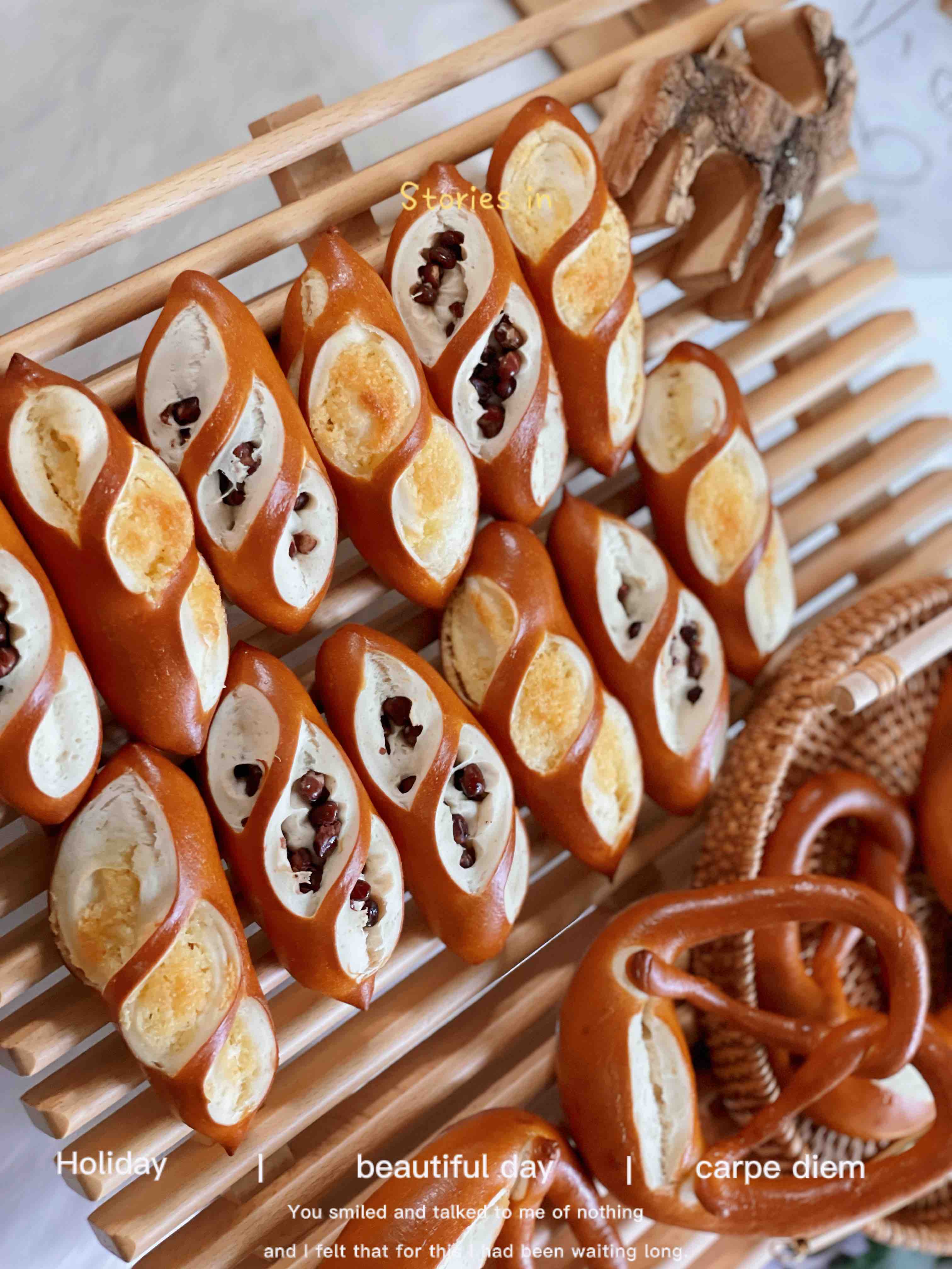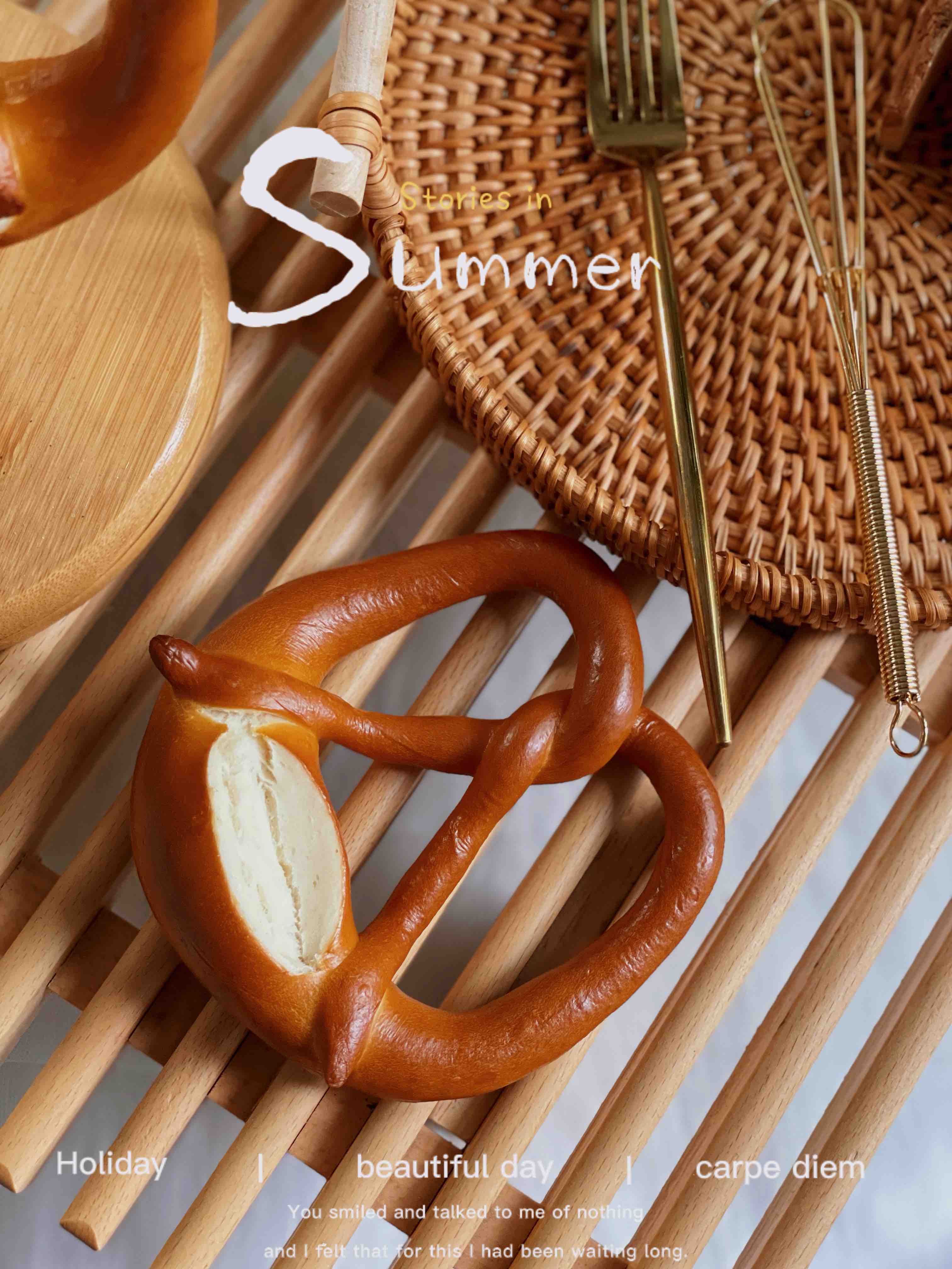 无油无糖的安心配方,烘烤前在碱水里浸泡,从而得到了不一样的风味,口感上绵密扎实有嚼劲,淡淡小麦甜香,一丝丝咸香