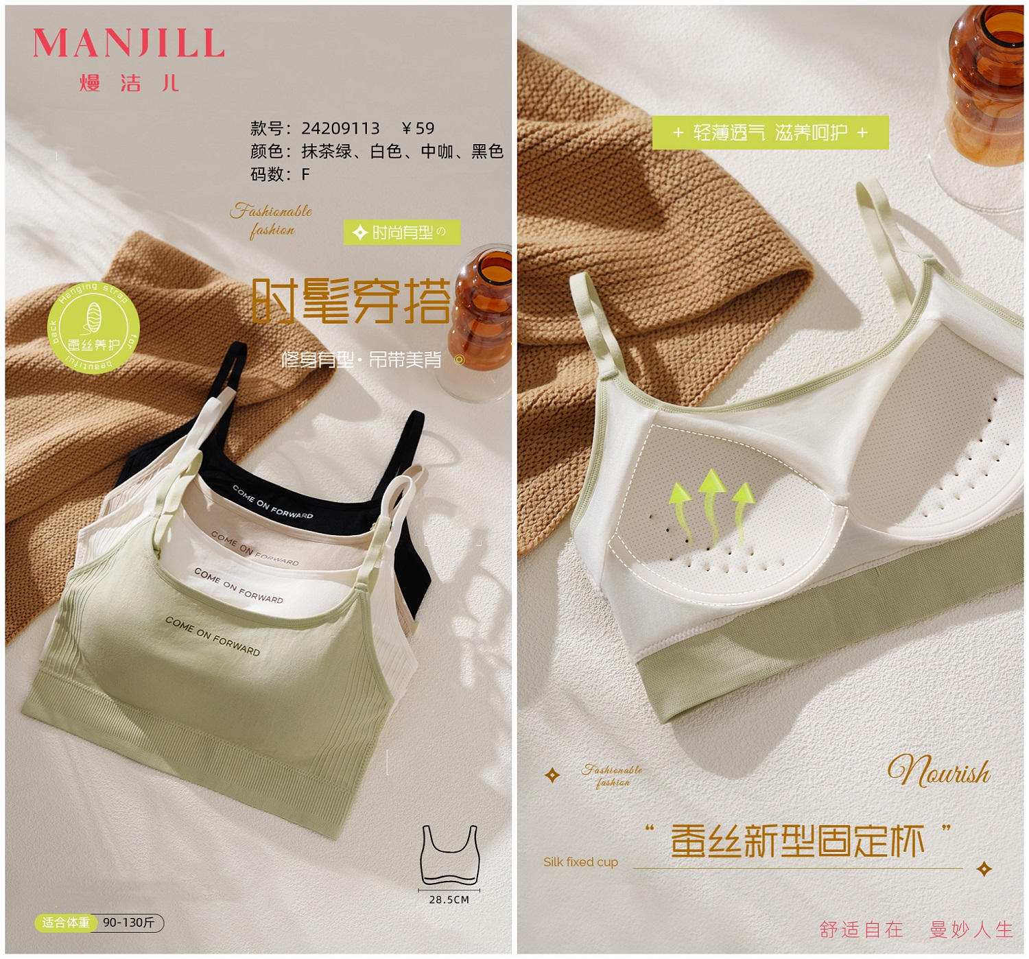 【商场同款】熳洁儿 夏季打底背心吊带固定杯细肩带大U性感美背短款24209113