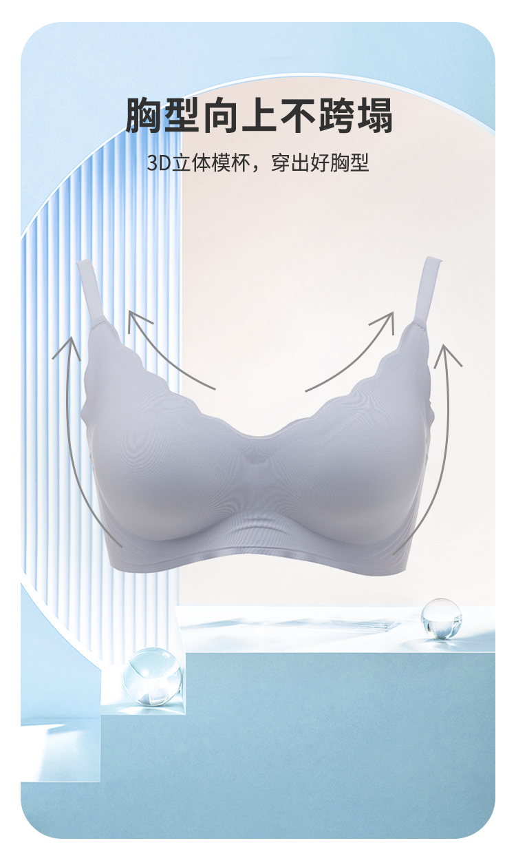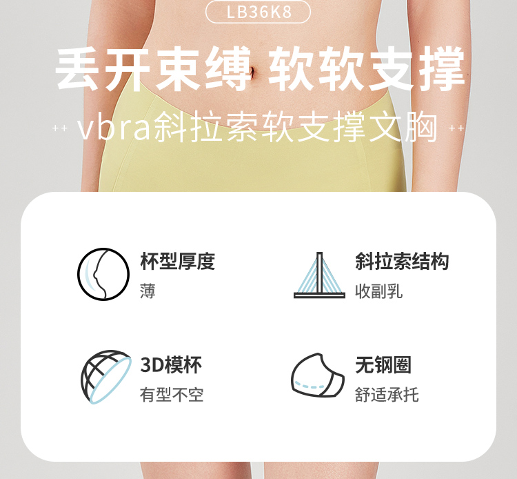 都市丽人Vbra内衣无尺码薄3/4杯泳布文胸二排无钢圈LB36K8